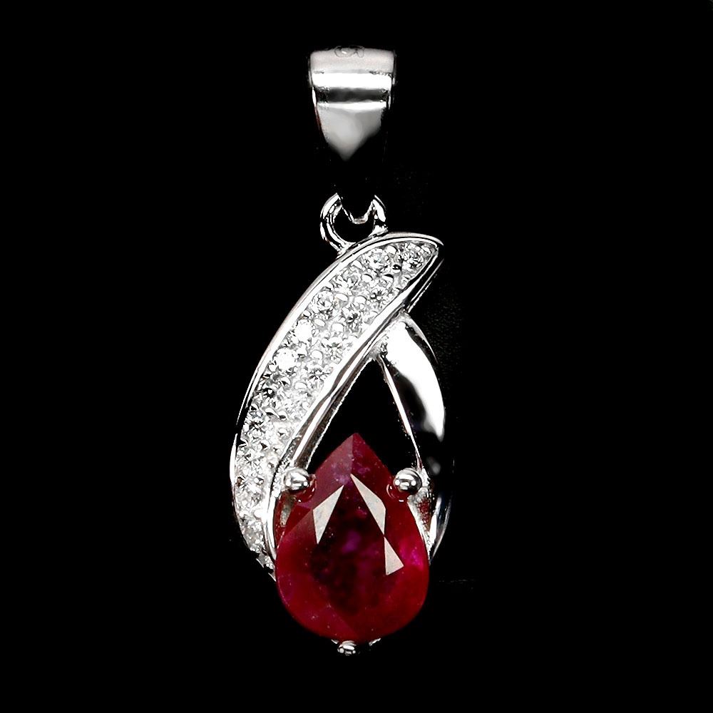 6X4 MM RUBY PENDANT IN 14K WHITE GOLD PLATED OVER 925 STERLING SILVER - APPRAISED REPLACEMENT VALUE CAD 540