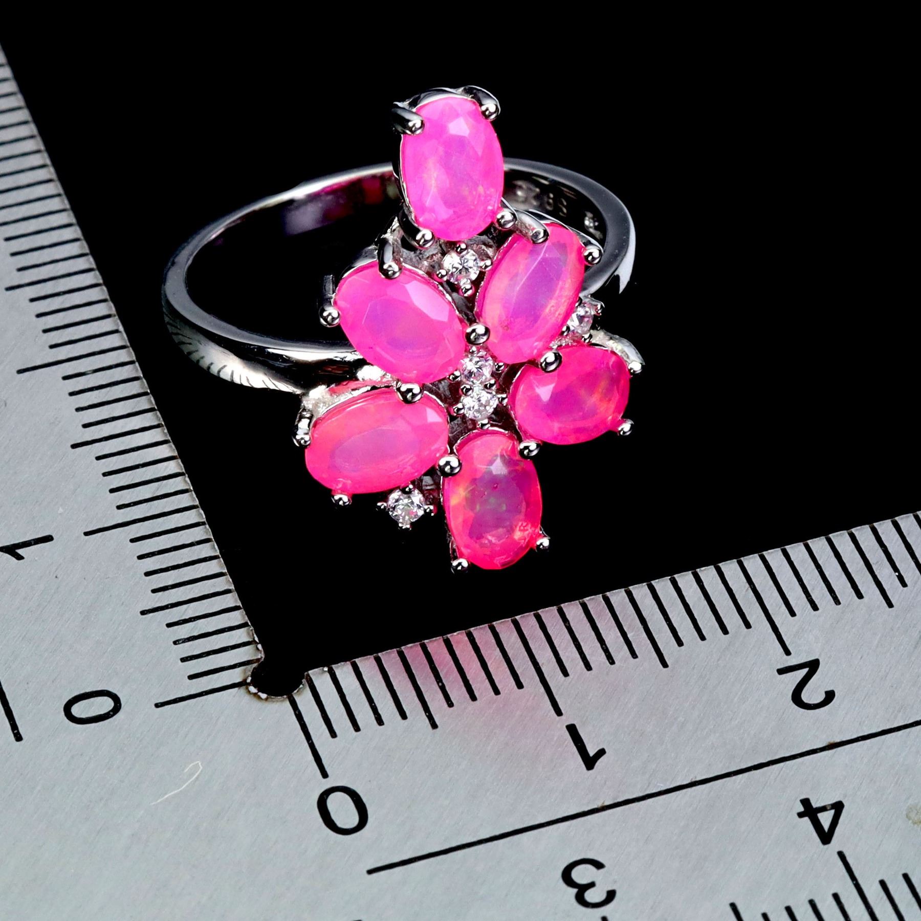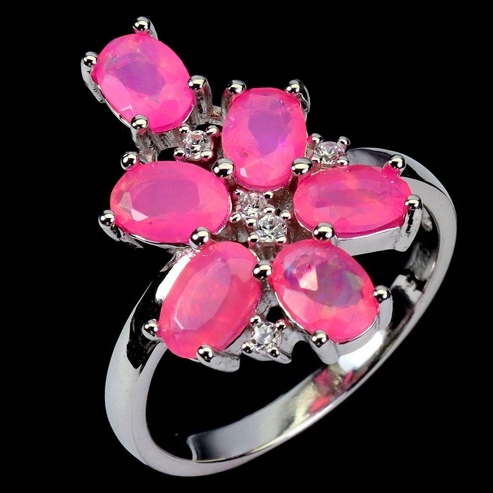 6X4 mm OVAL CUT PINK OPAL RING IN 14K WHITE GOLD PLATED OVER 925 STERLING SILVER - SIZE 8 - APPRAISED REPLACEMENT VALUE CAD 360