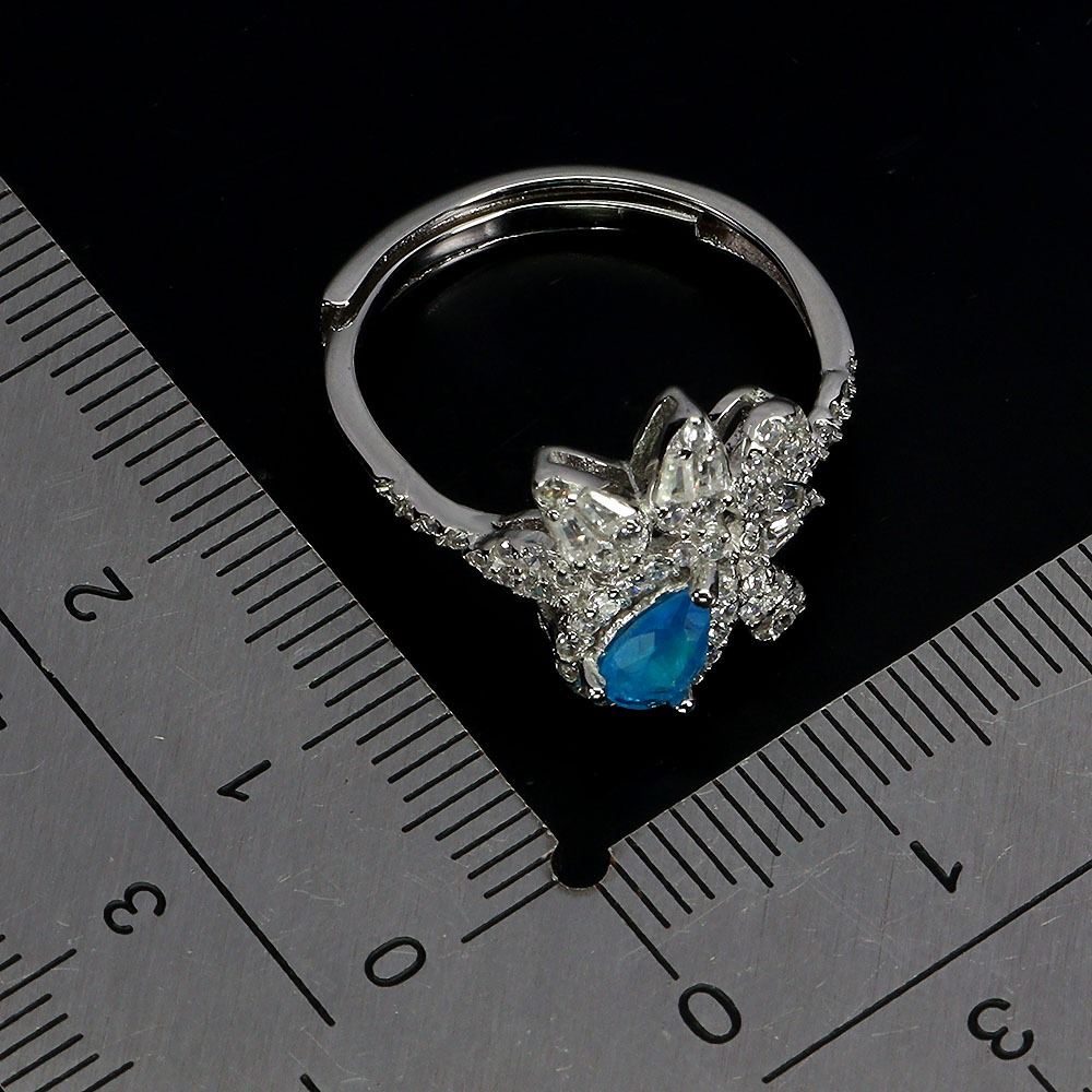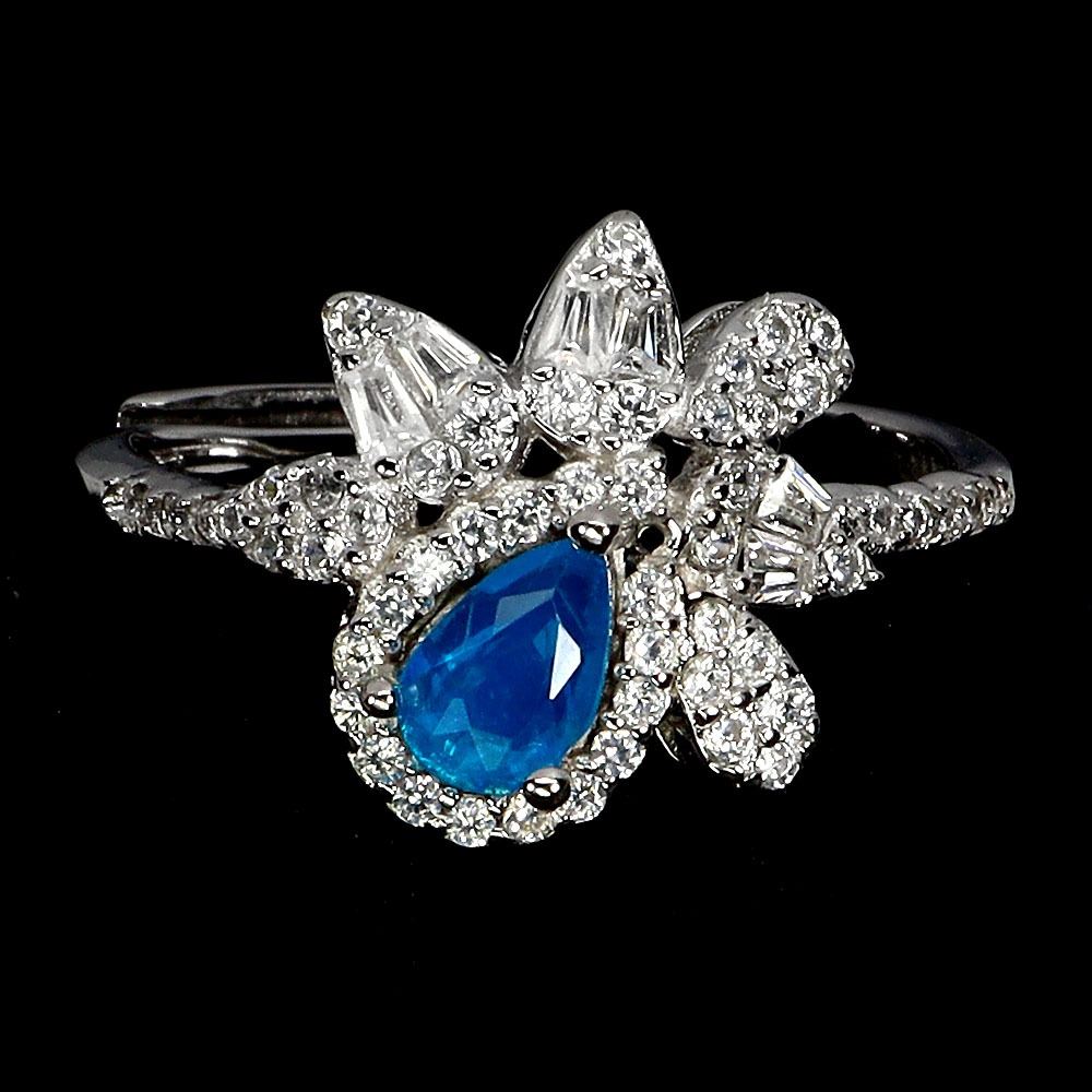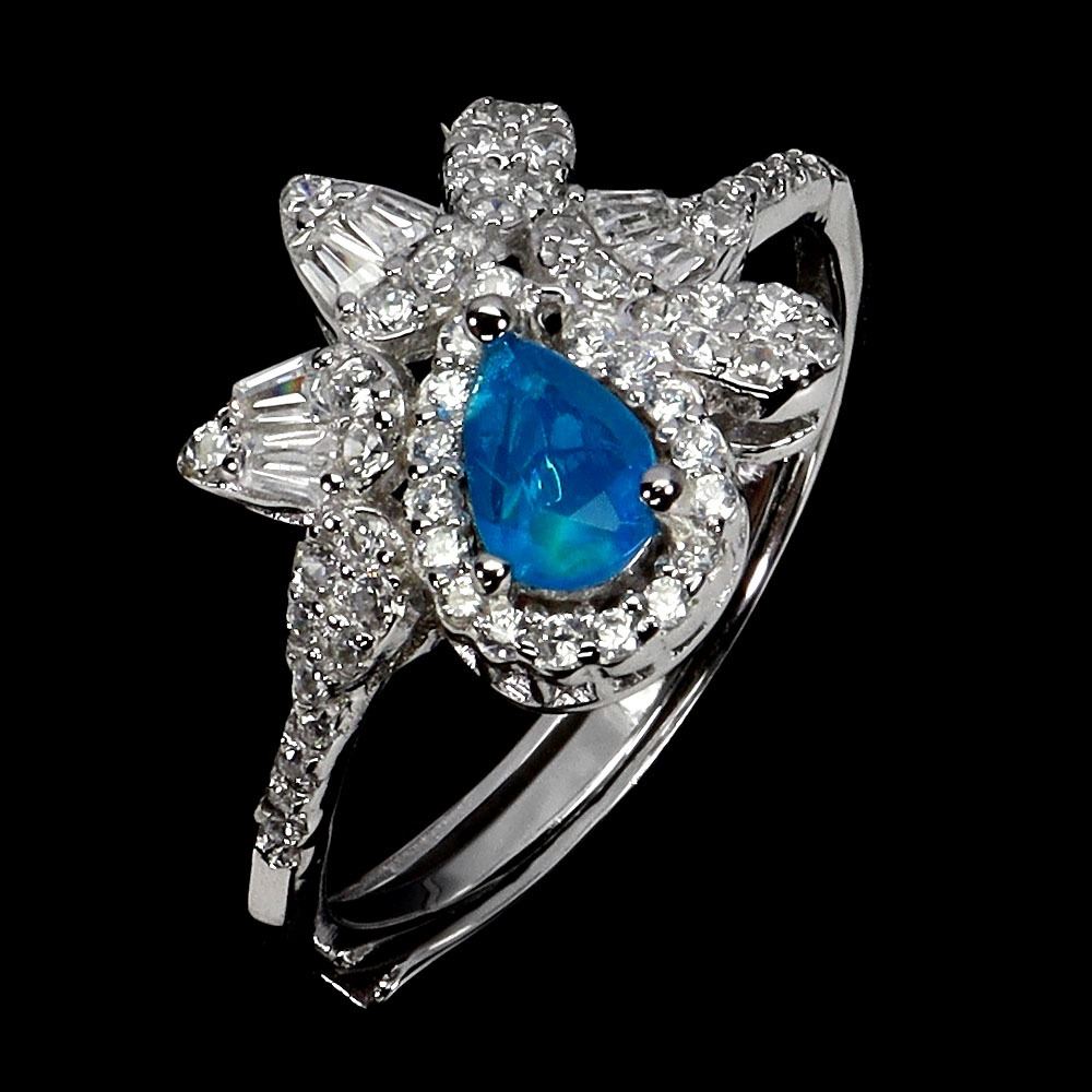 6X4 mm PEAR CUT BLUE OPAL RING IN 14K WHITE GOLD PLATED OVER 925 STERLING SILVER - SIZE 7 - APPRAISED REPLACEMENT VALUE CAD 690