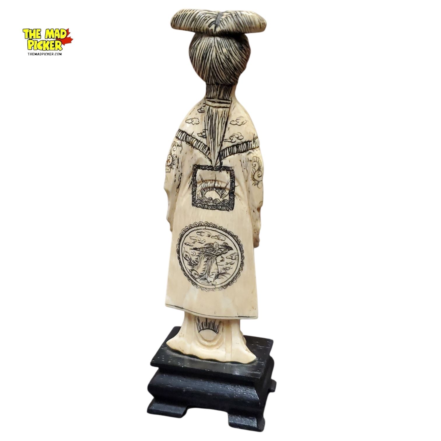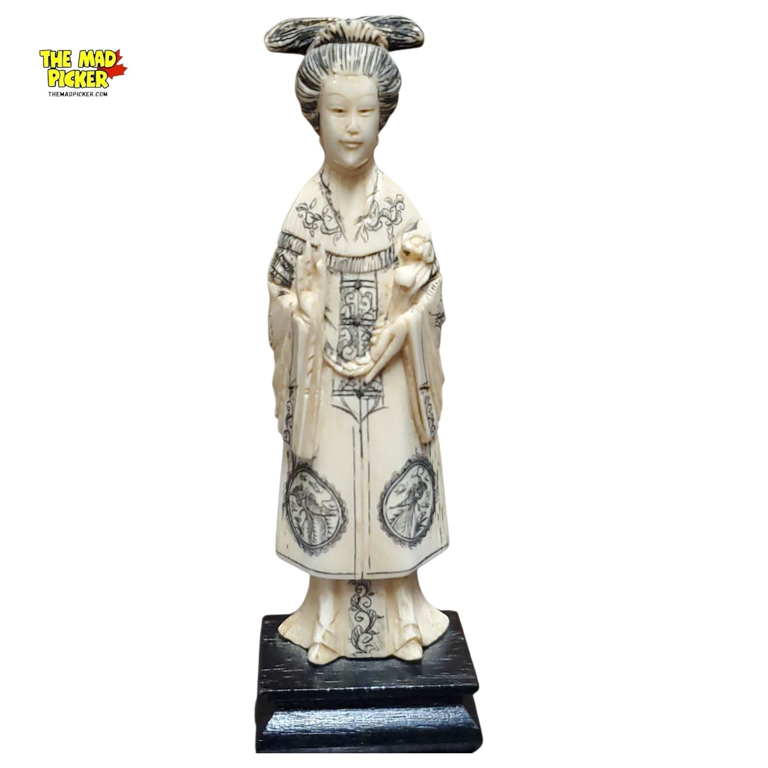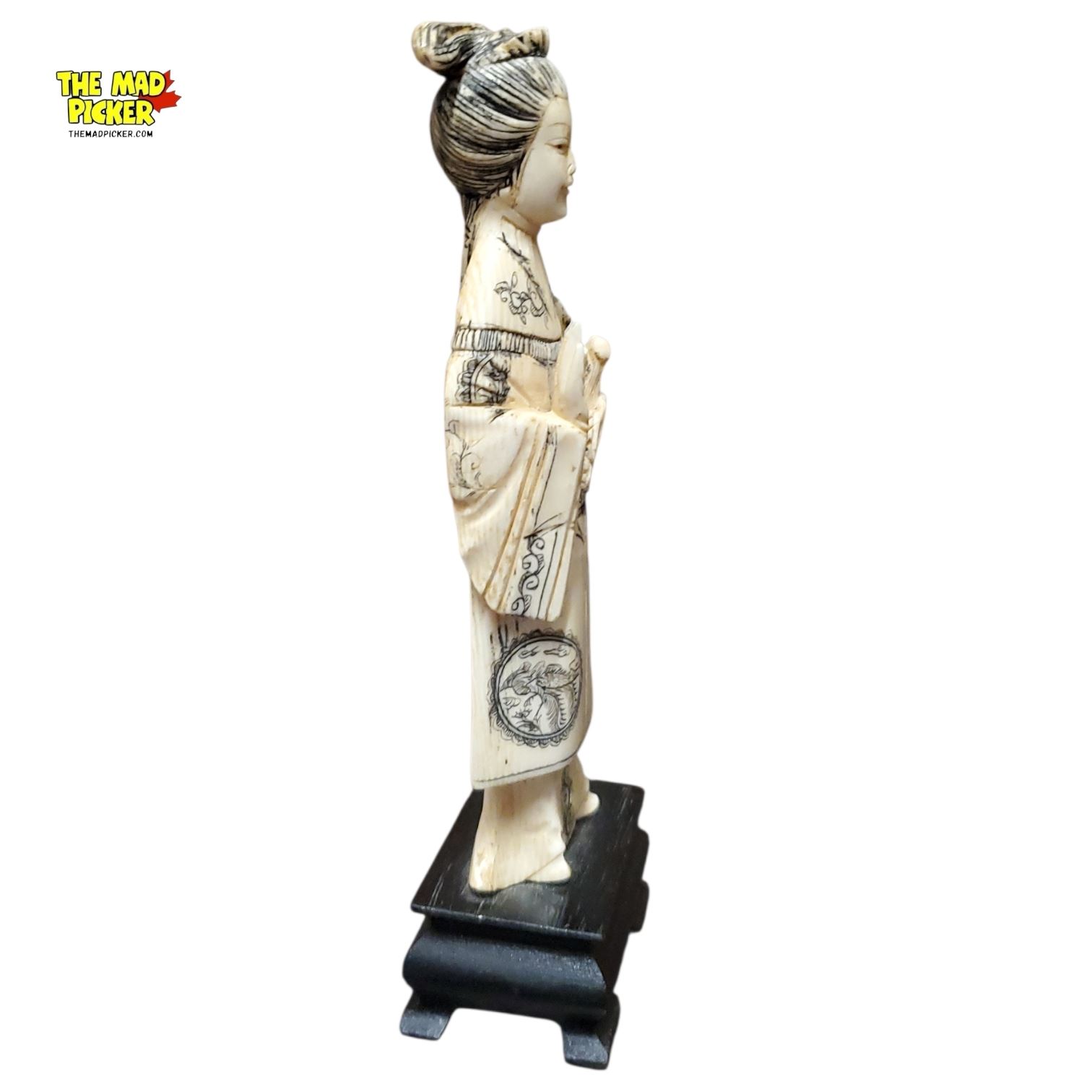 6in Japanese Meiji/taisho Carved Okimono of Woman in Kimono on Wooden Base