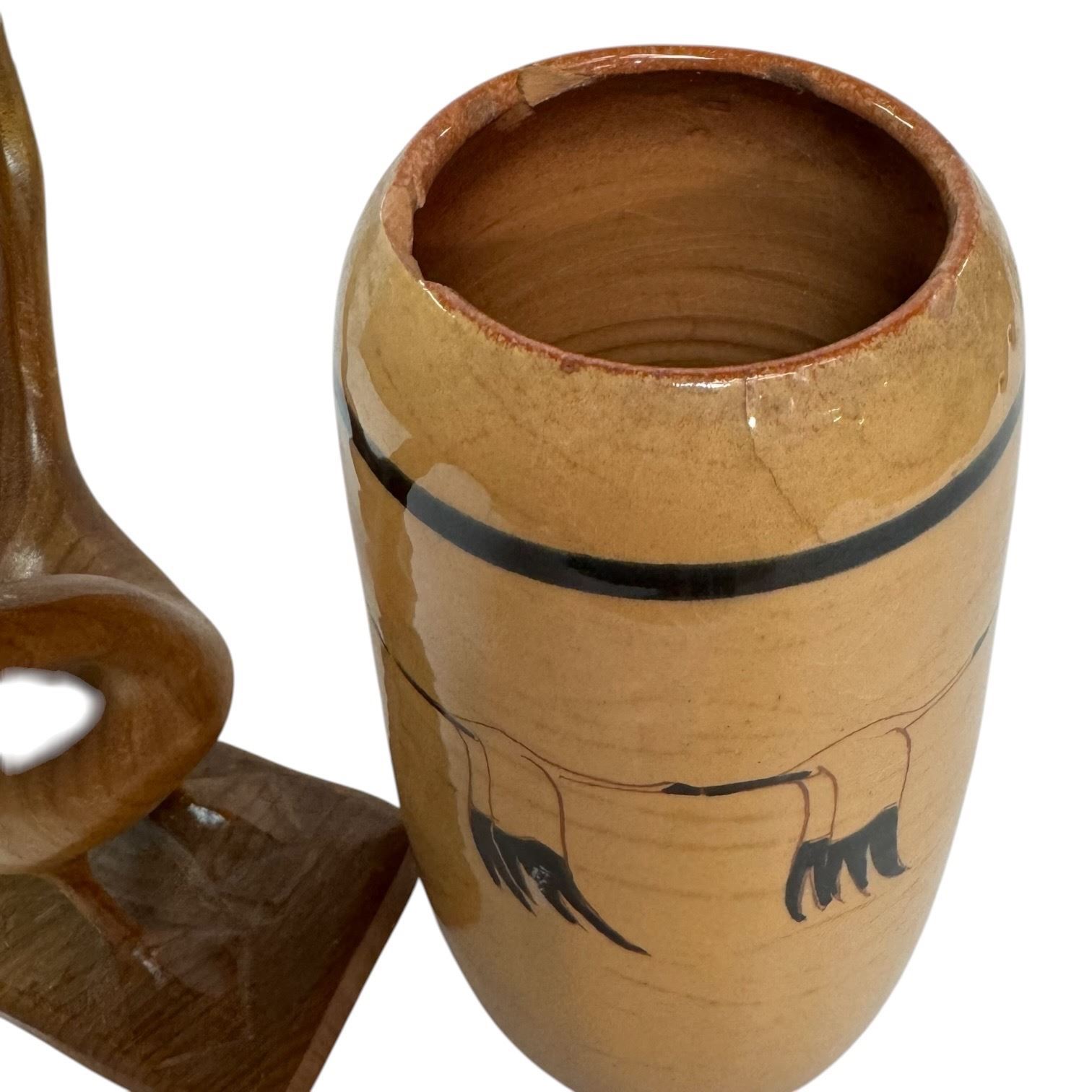 7.5" Athabasca Pottery Vase & 8" Carved Canada Goose (Vase has a chipped rim)