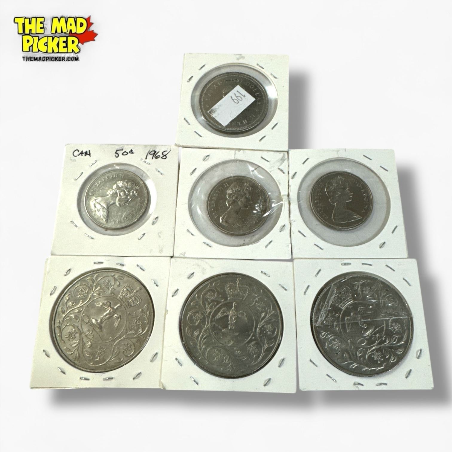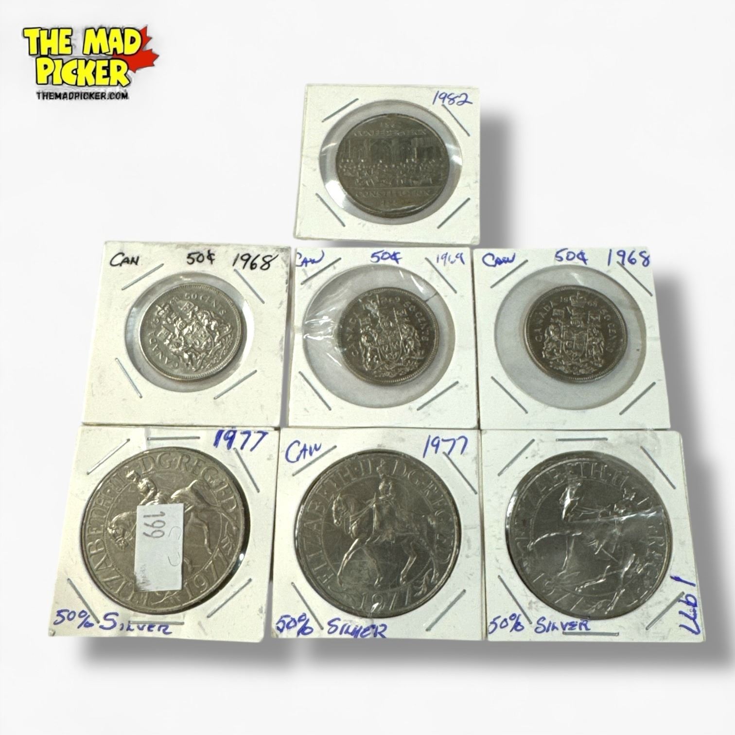 7 Canadian Coins - 2 x 1968 50¢, 1 x 1969 50¢, 3 x 1977 Queen Elizabeth II & 1 x 1982 $1 Coin