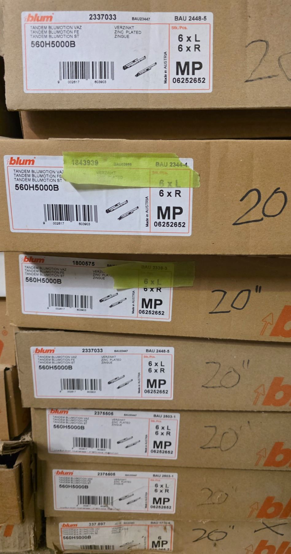 7 Pc - Blum "Blu-Motion" soft close undermount drawer slides - 20" - Approx. x35 Pair - Wholesale Value: $1,050