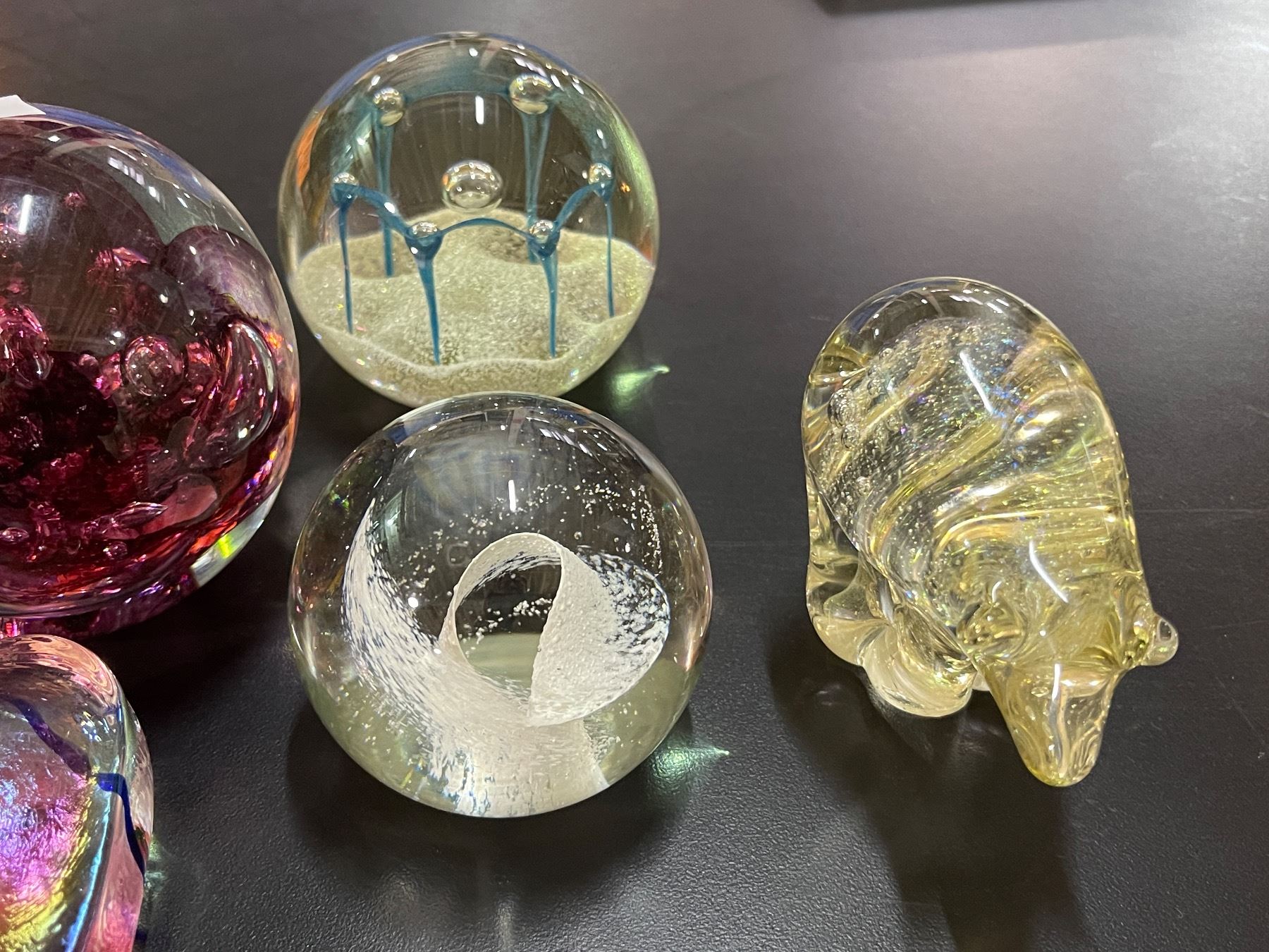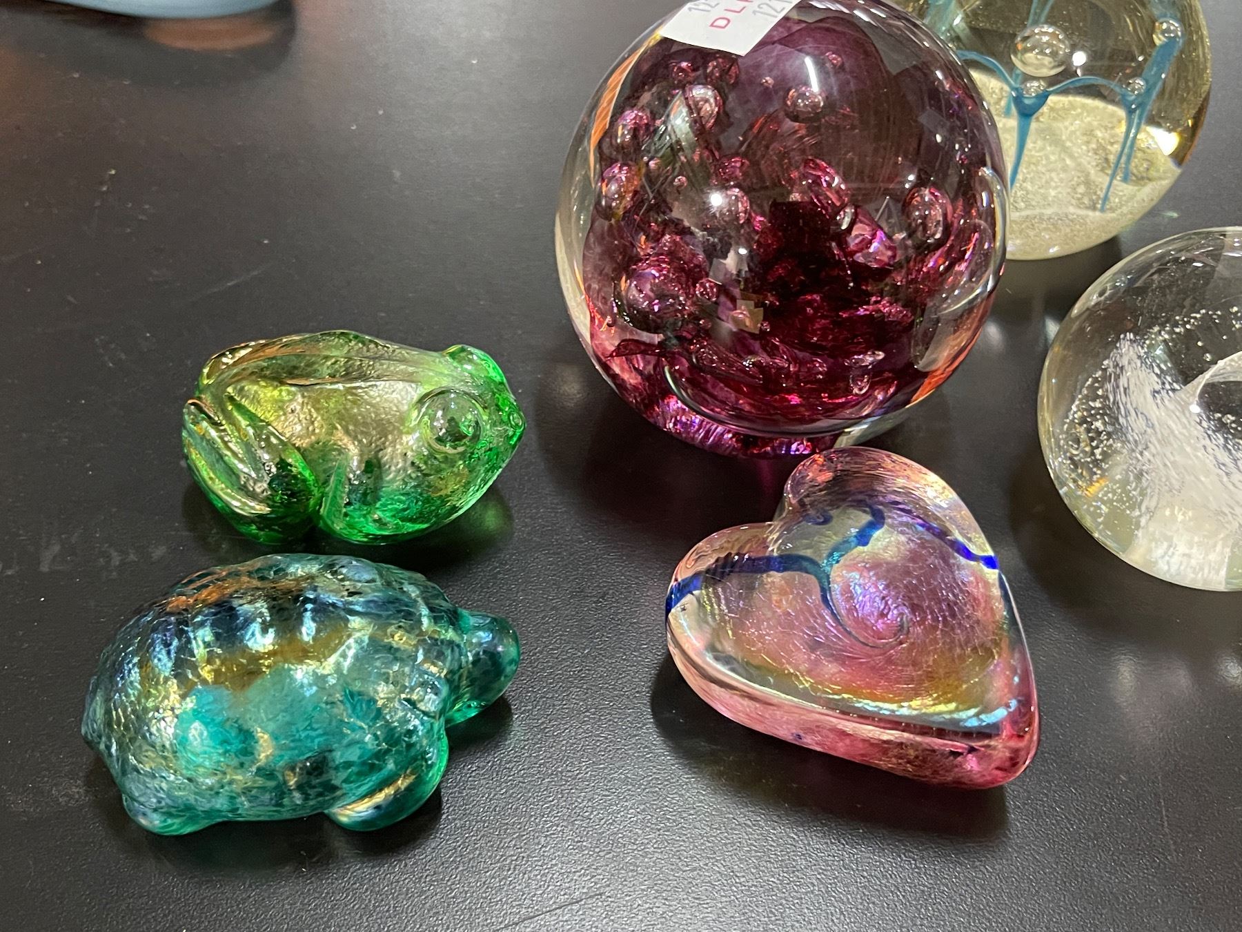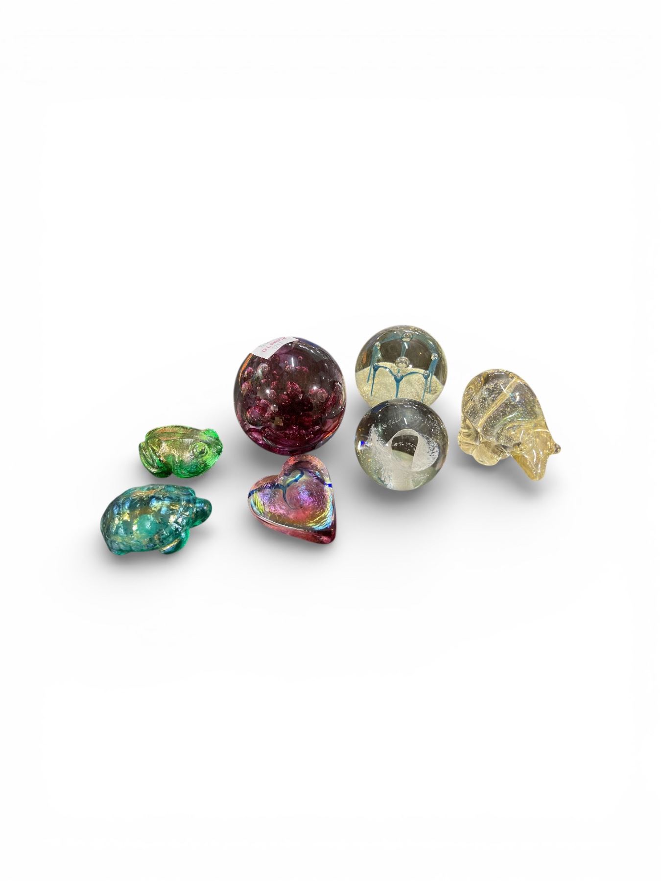 7 Pcs. Lot of Art Glass Paperweights and Figurines - Turtle, Frog, Bear, Heart and 3 Paperweights