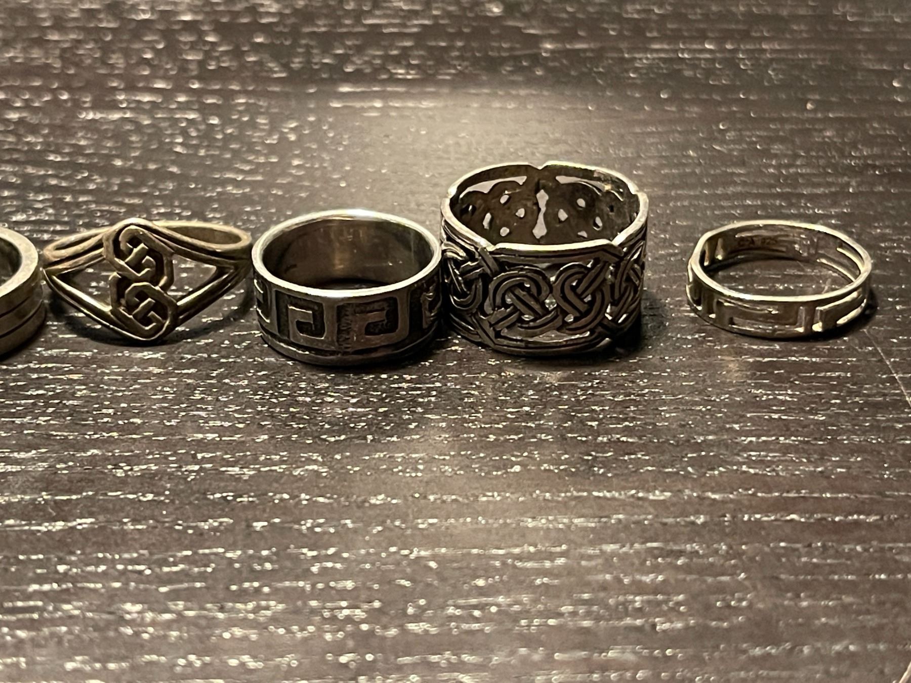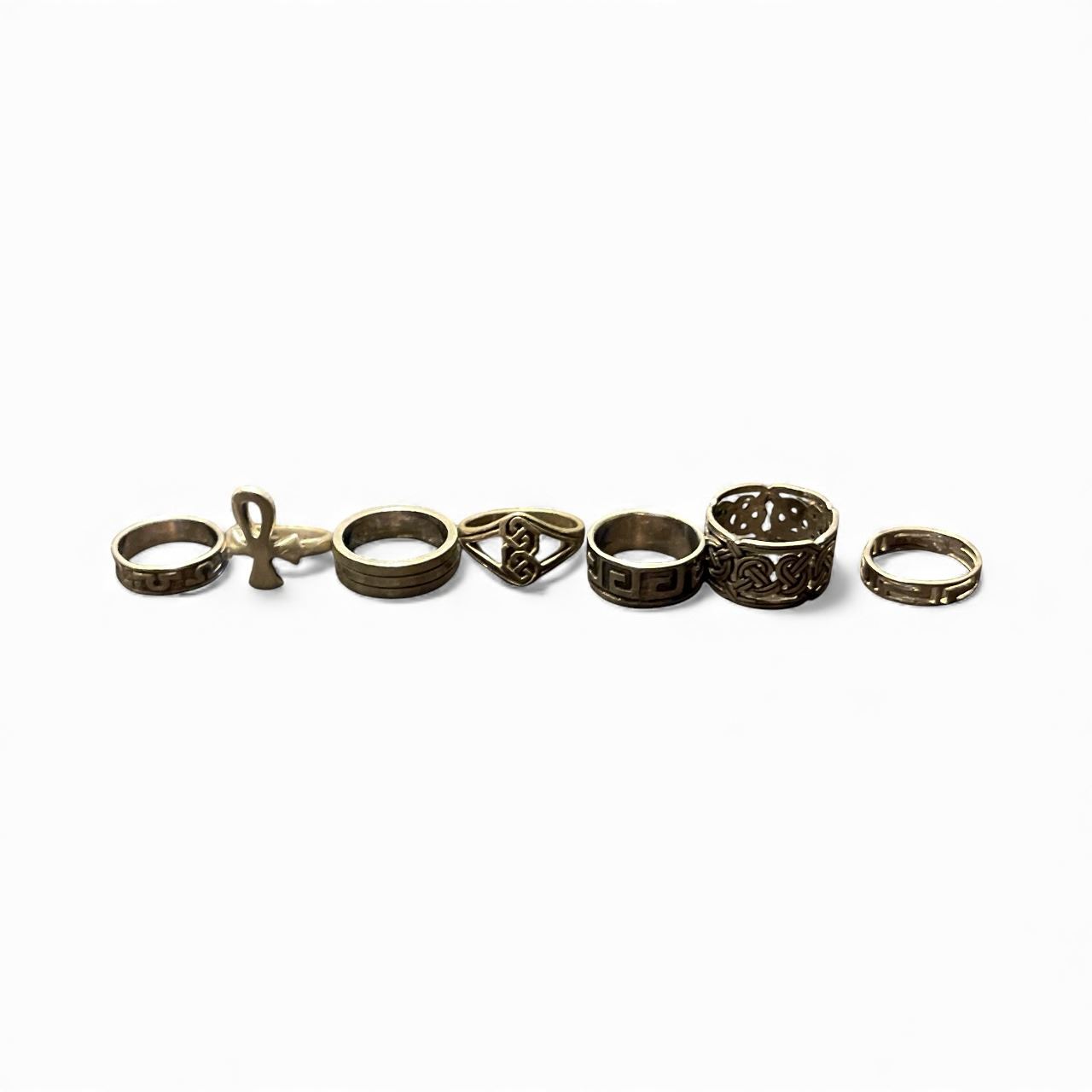 7 Sterling Silver Rings - No gemstones - Total weight: 28.5 grams