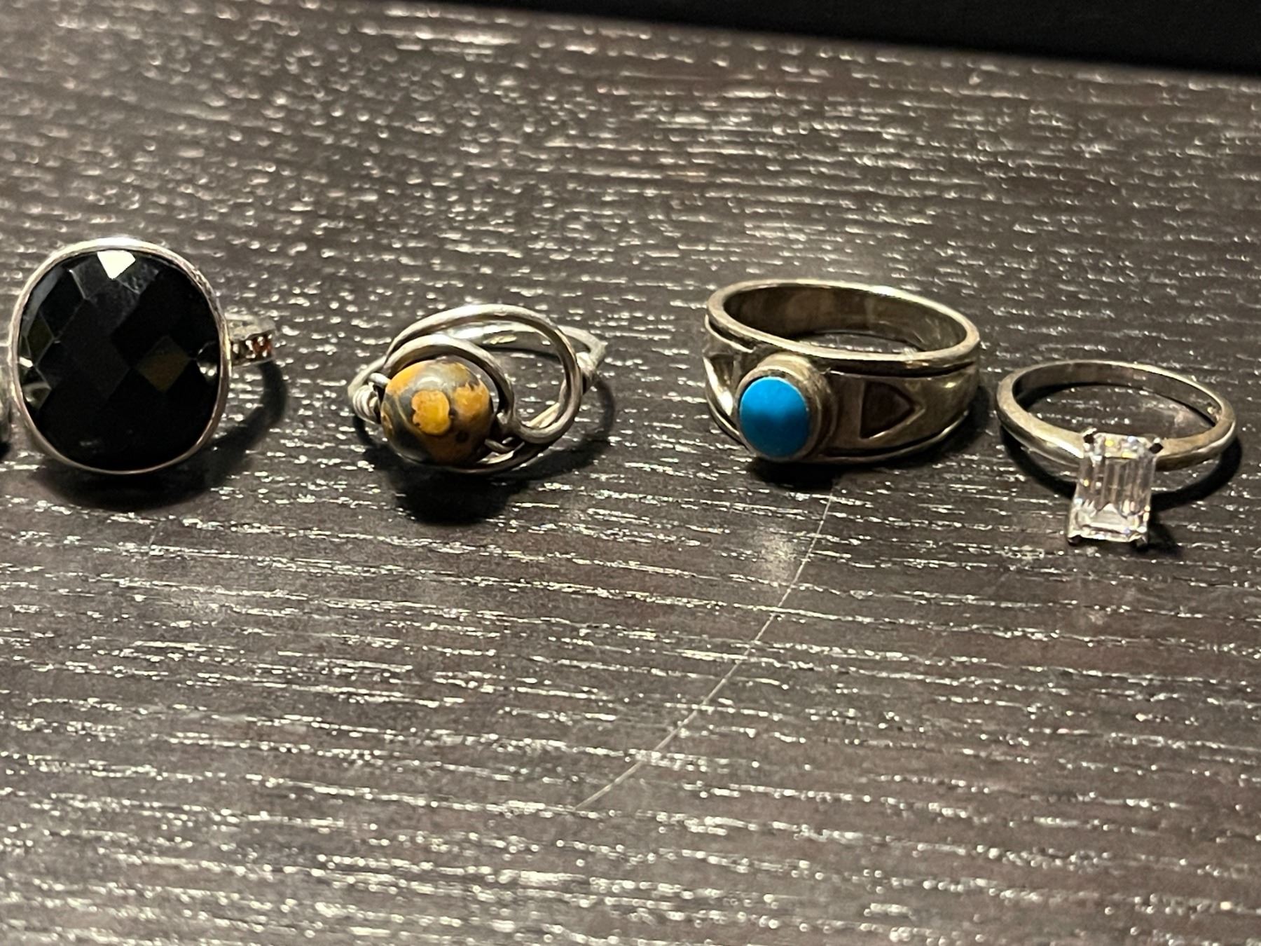 7 Sterling Silver Rings with Stones - Variety of styles and sizes - Total weight including stones: 25 grams