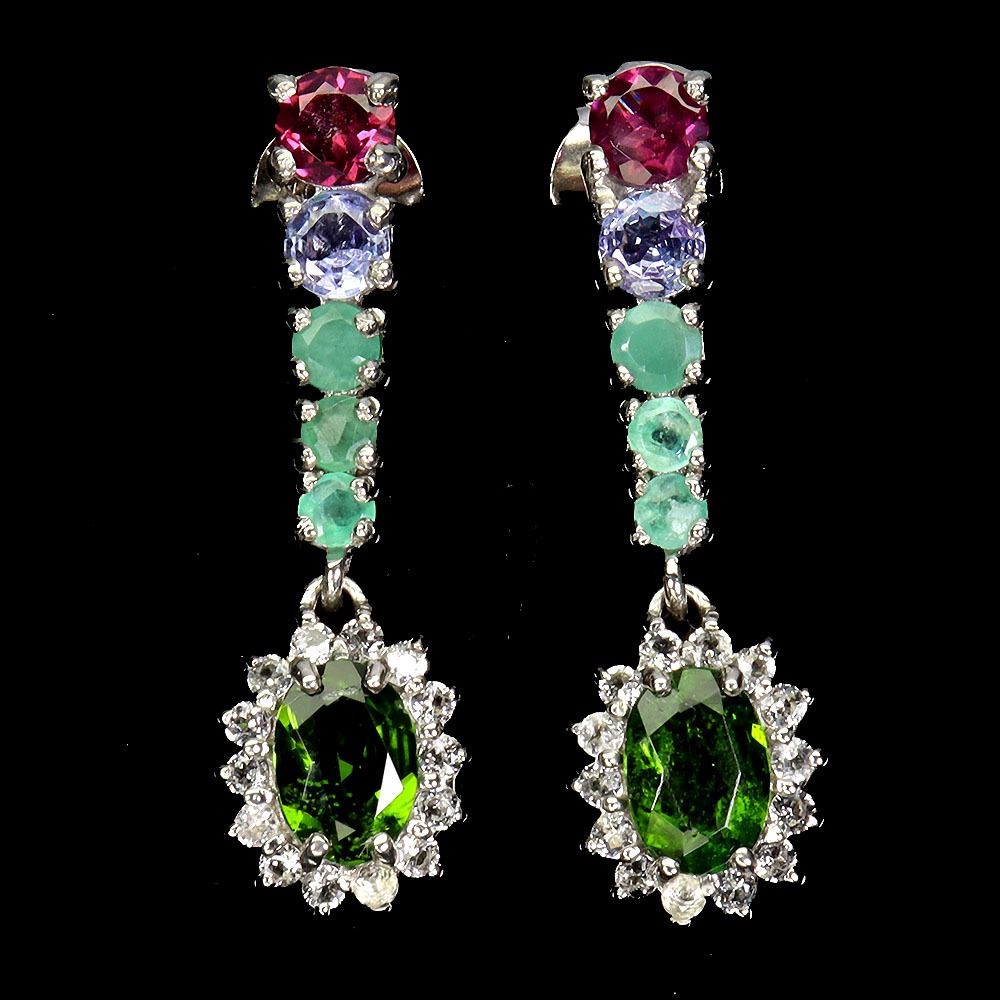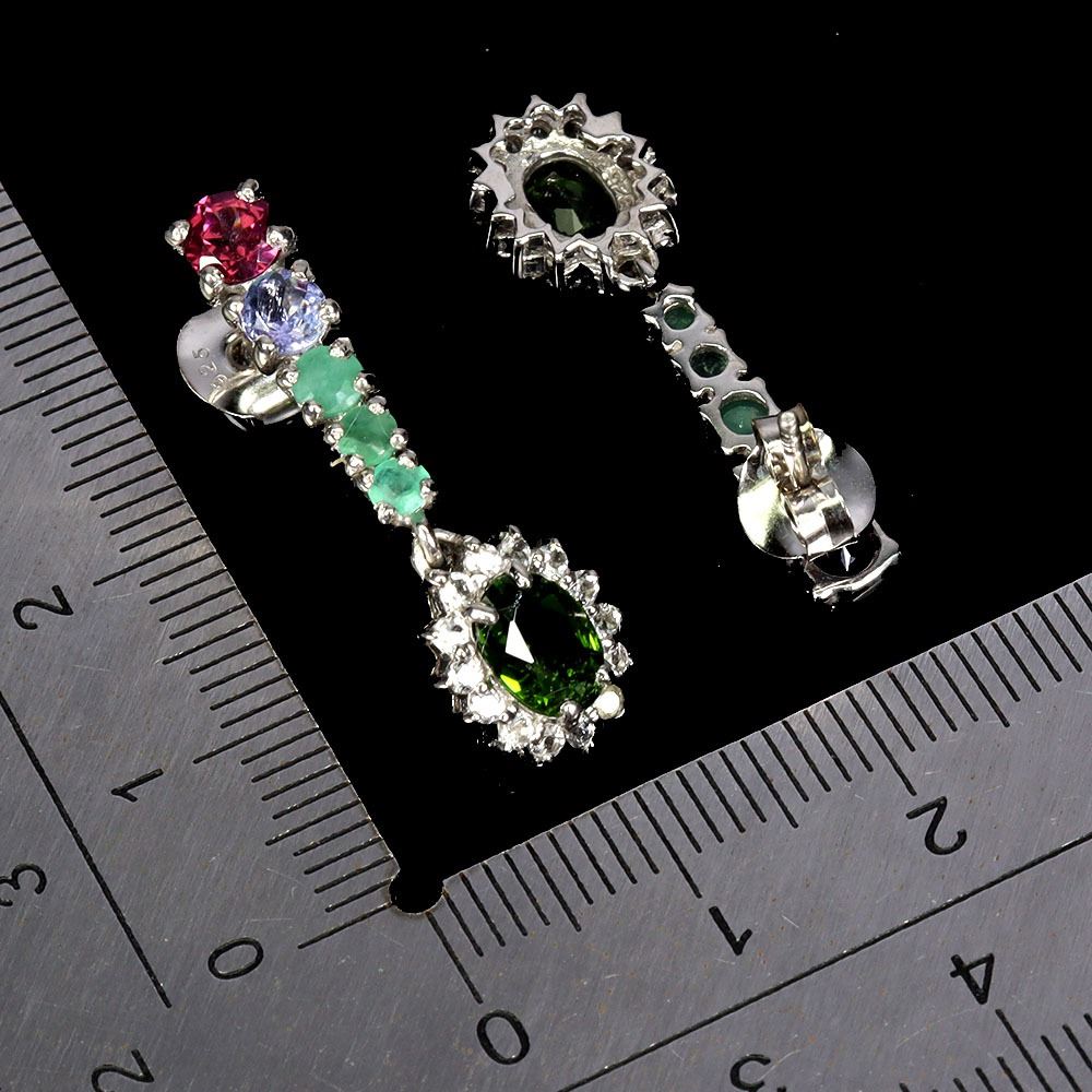 7X5 mm CHROME DIOPSIDE, EMERALD, RHODOLITE GARNET, TANZANITE AND WHITE TOPAZ IN 14K WHITE GOLD PLATED OVER 925 STERLING SILVER - APPRAISED REPLACEMENT VALUE CAD 940