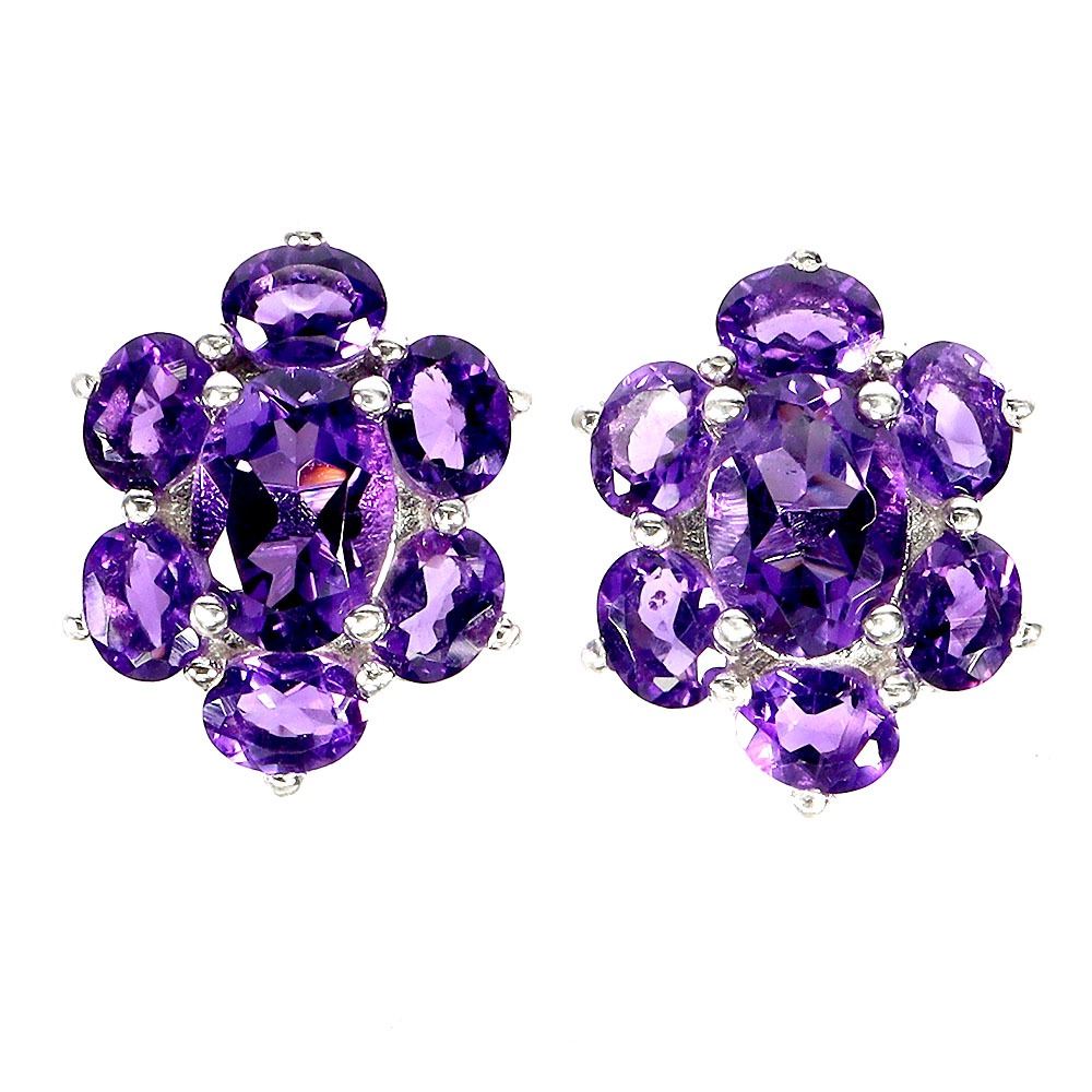 7X5 mm OVAL AMETHYST EARRINGS IN 14K WHITE PLATED GOLD OVER 925 STERLING SILVER - APPRAISED REPLACEMENT VALUE CAD 710