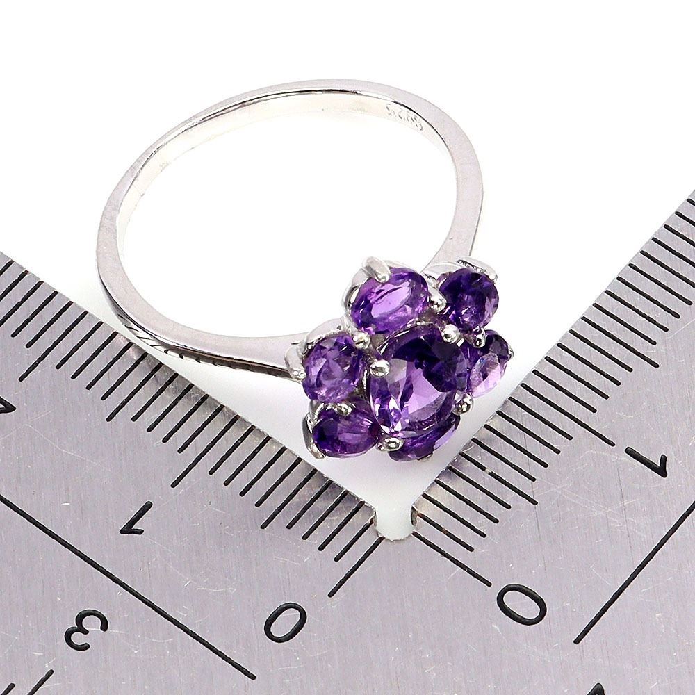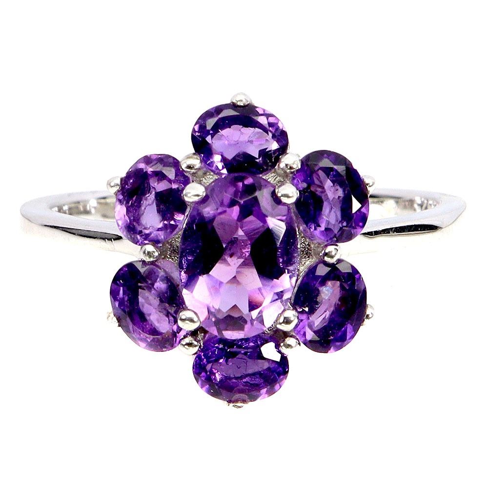 7X5 mm OVAL AMETHYST FLOWER SHAPPED RING IN 14K WHITE GOLD PLATED OVER 925 STERLING SILVER - SIZE 7 - APPRAISED REPLACEMENT VALUE CAD 360