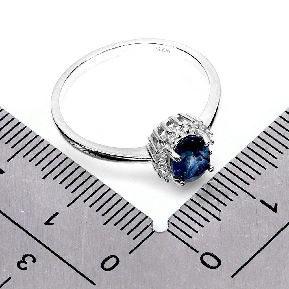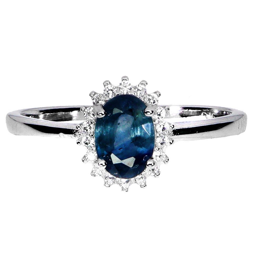 7X5 mm OVAL BLUE SAPPHIRE AND CZ RING IN 14K WHITE GOLD PLATED OVER 925 STERLING SILVER - SIZE 6 - APPRAISED REPLACEMENT VALUE CAD 355