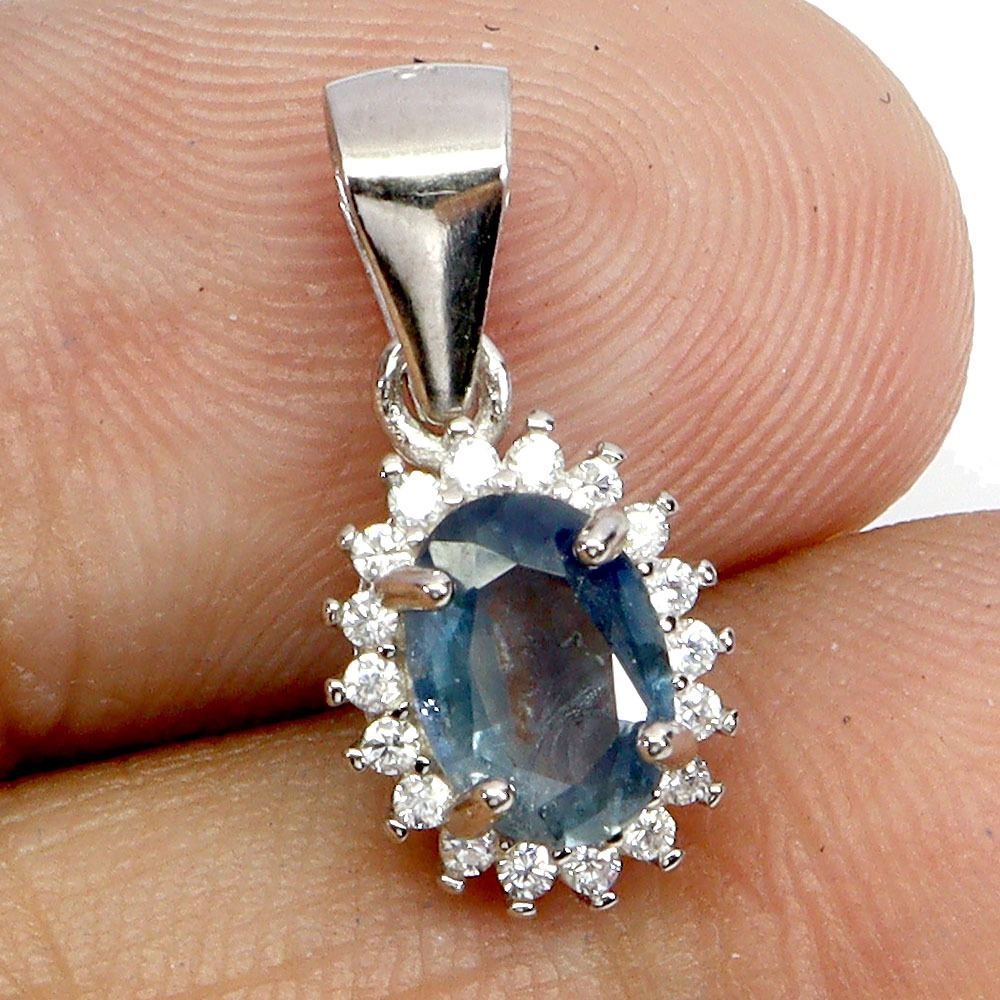 7X5 mm OVAL BLUE SAPPHIRE PENDANT IN 14K WHITE PLATED GOLD OVER 925 STERLING SILVER - APPRAISED REPLACEMENT VALUE CAD 340