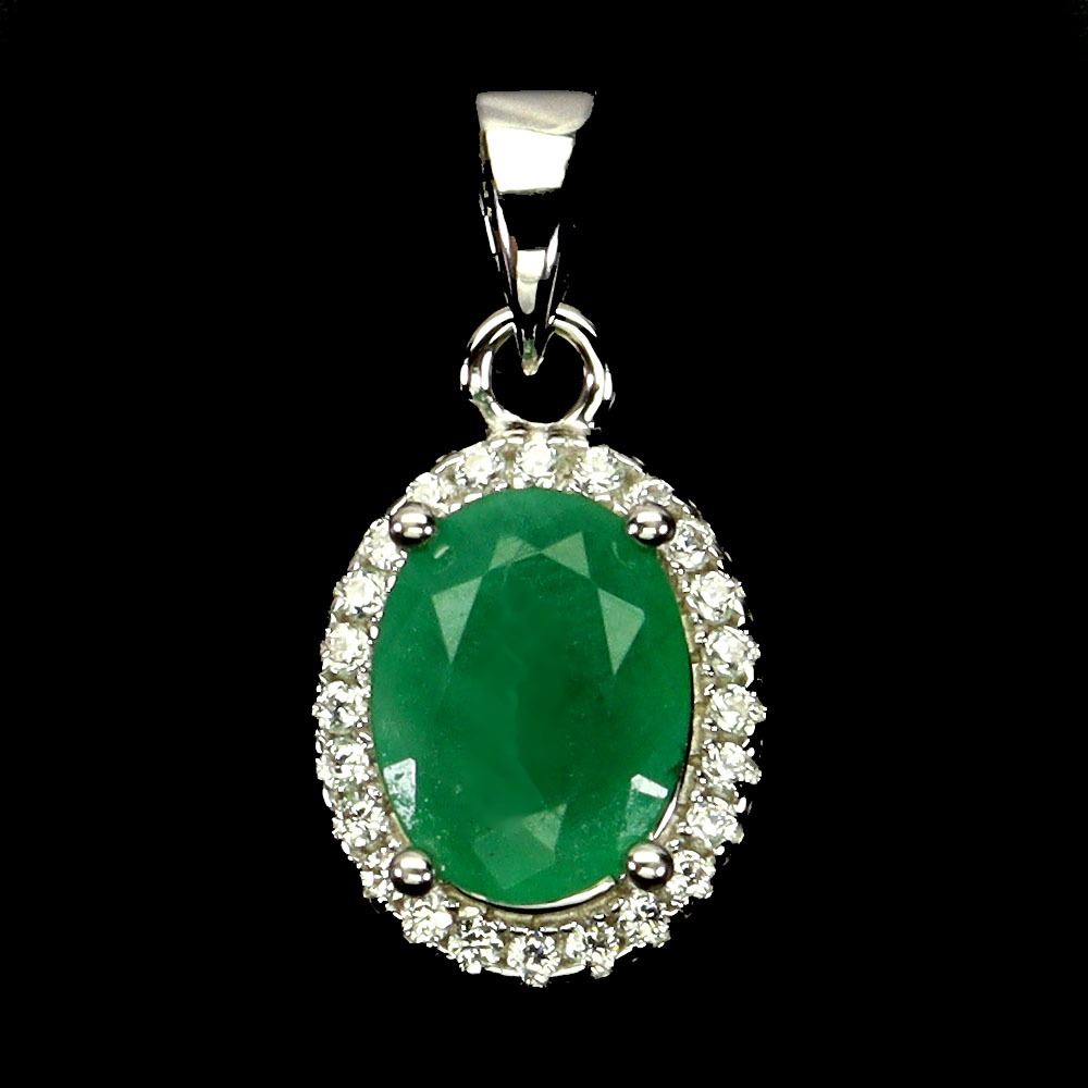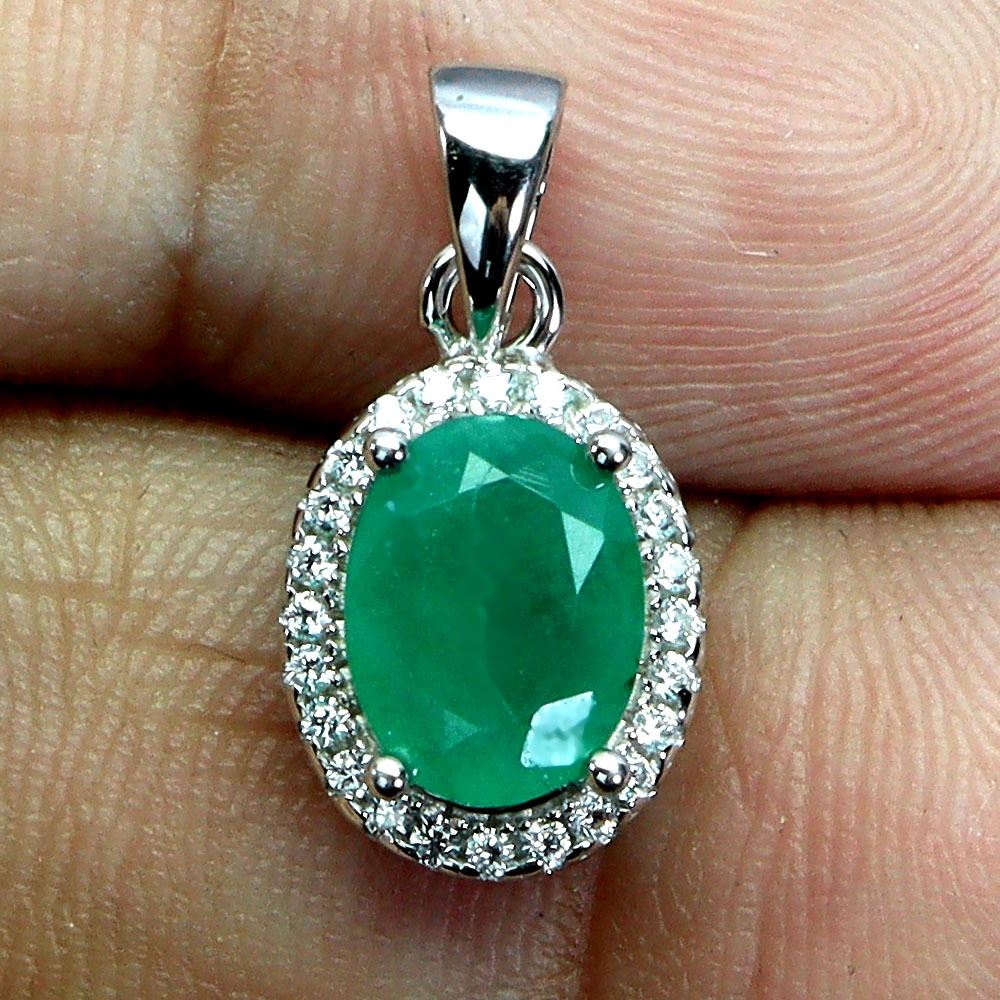 7X5 mm OVAL CUT EMERALD PENDANT IN 14K WHITE PLATED GOLD OVER 925 STERLING SILVER - APPRAISED REPLACEMENT VALUE CAD 425