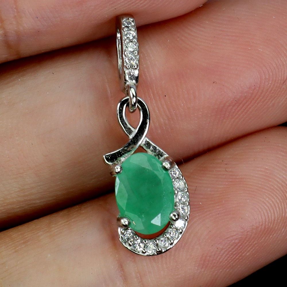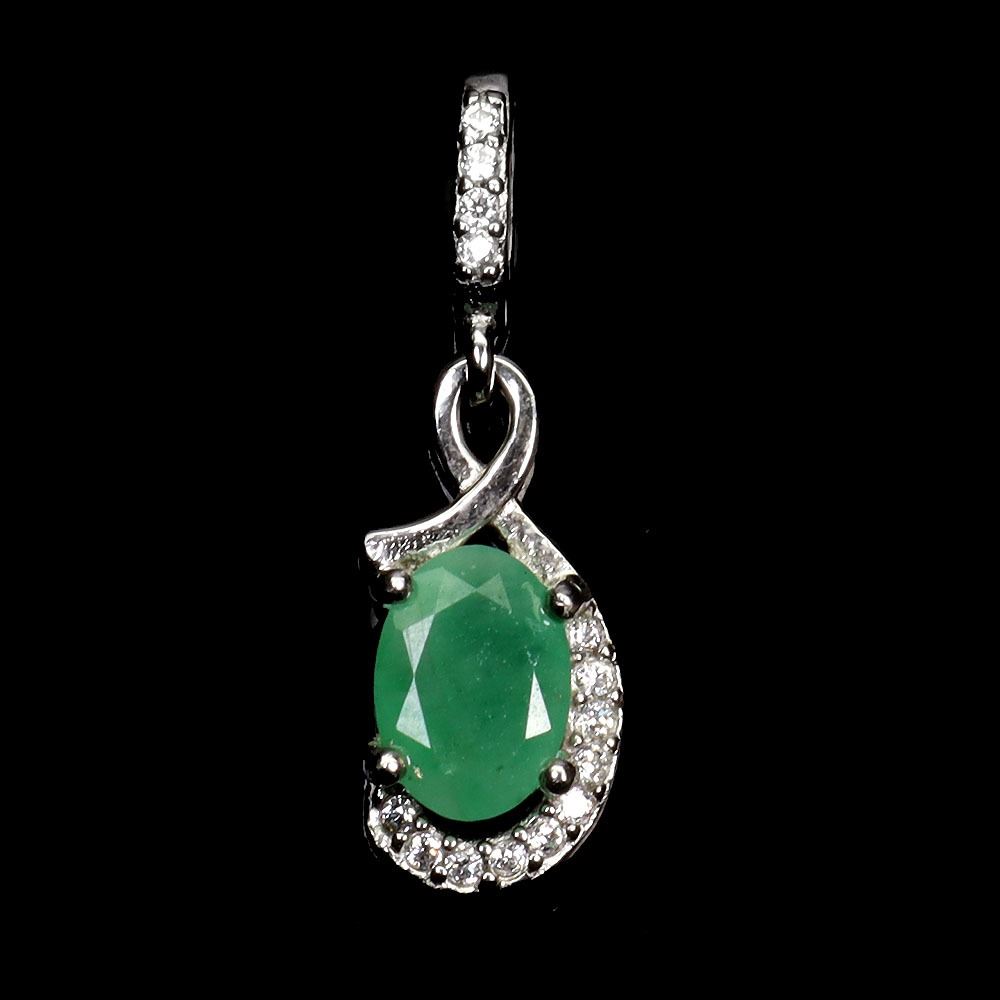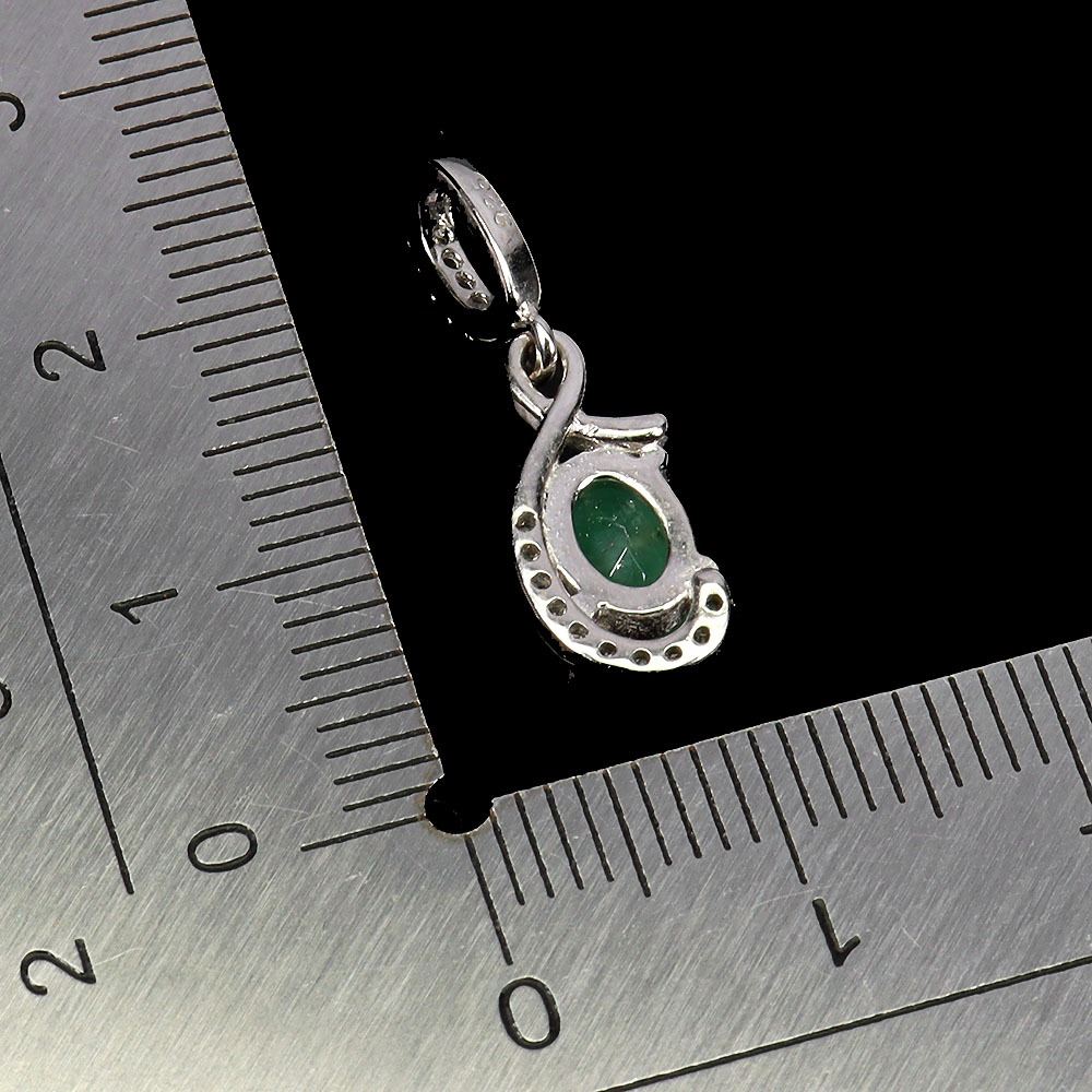7X5 mm OVAL EMERALD PENDANT IN 14K WHITE GOLD PLATED OVER 925 STERLING SILVER - APPRAISED REPLACEMENT VALUE CAD 560