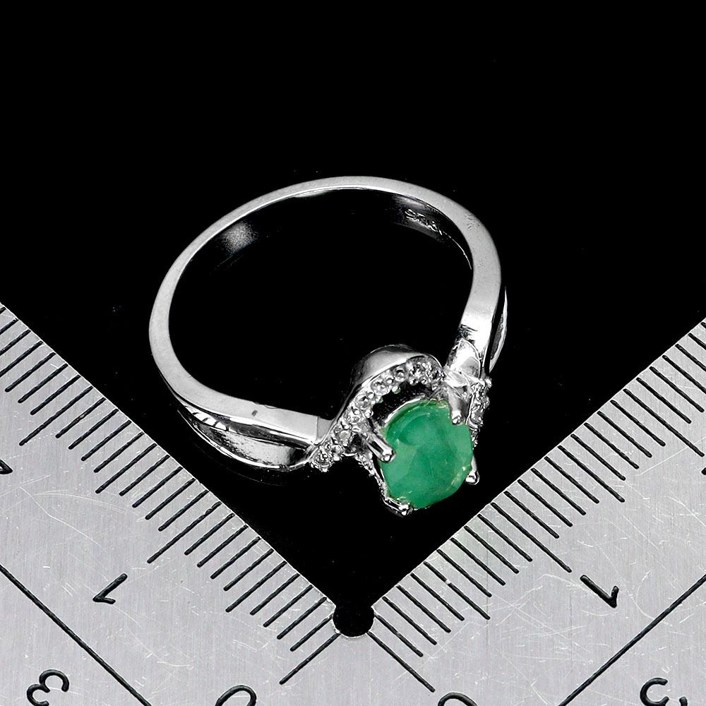 7X5 mm OVAL EMERALD RING IN 14K WHITE GOLD PLATED OVER 925 STERLING SILVER - SIZE 7 - APPRAISED REPLACEMENT VALUE CAD 570