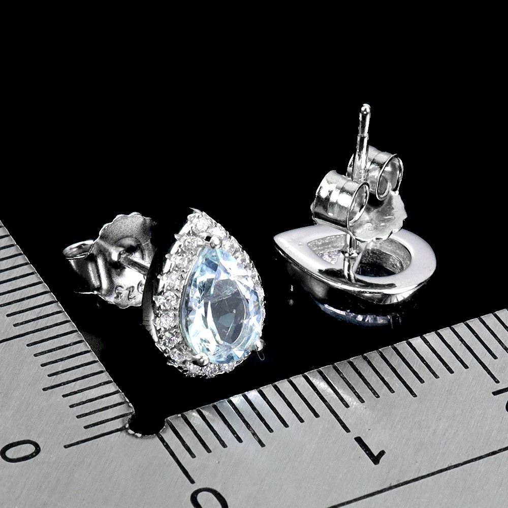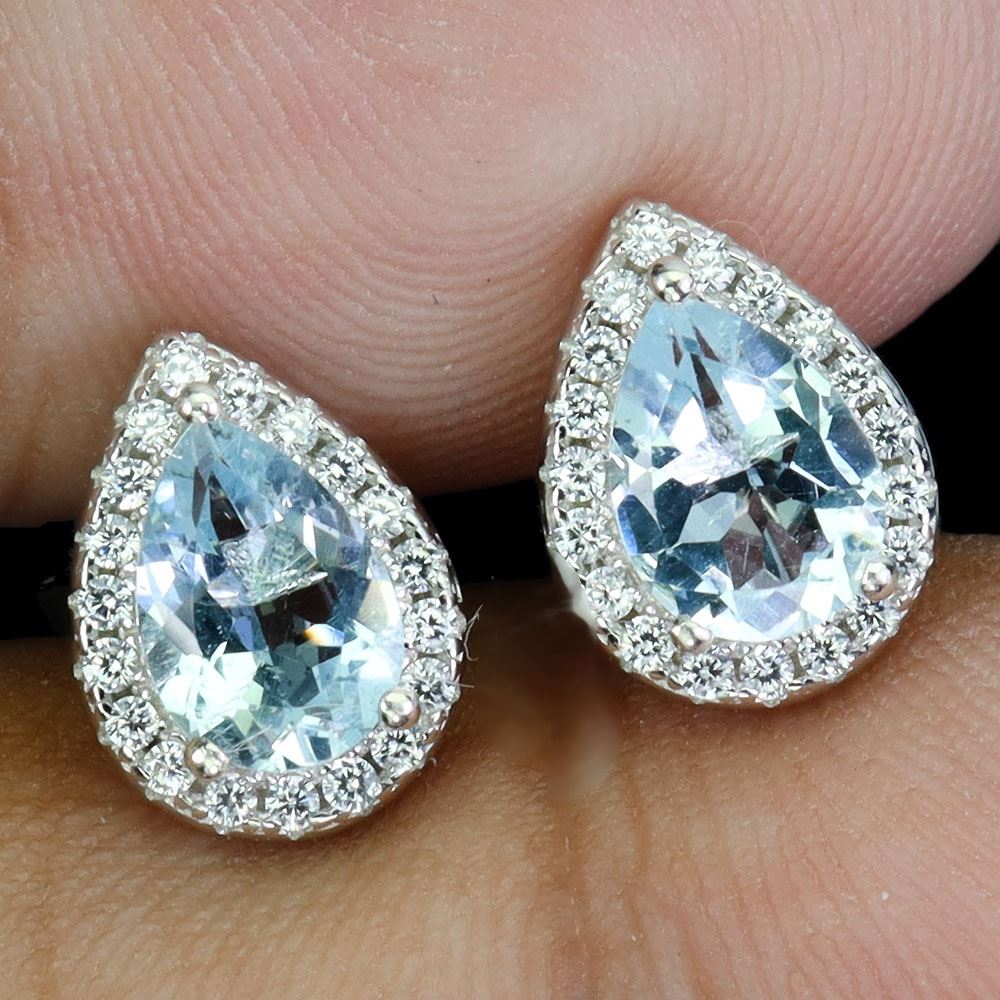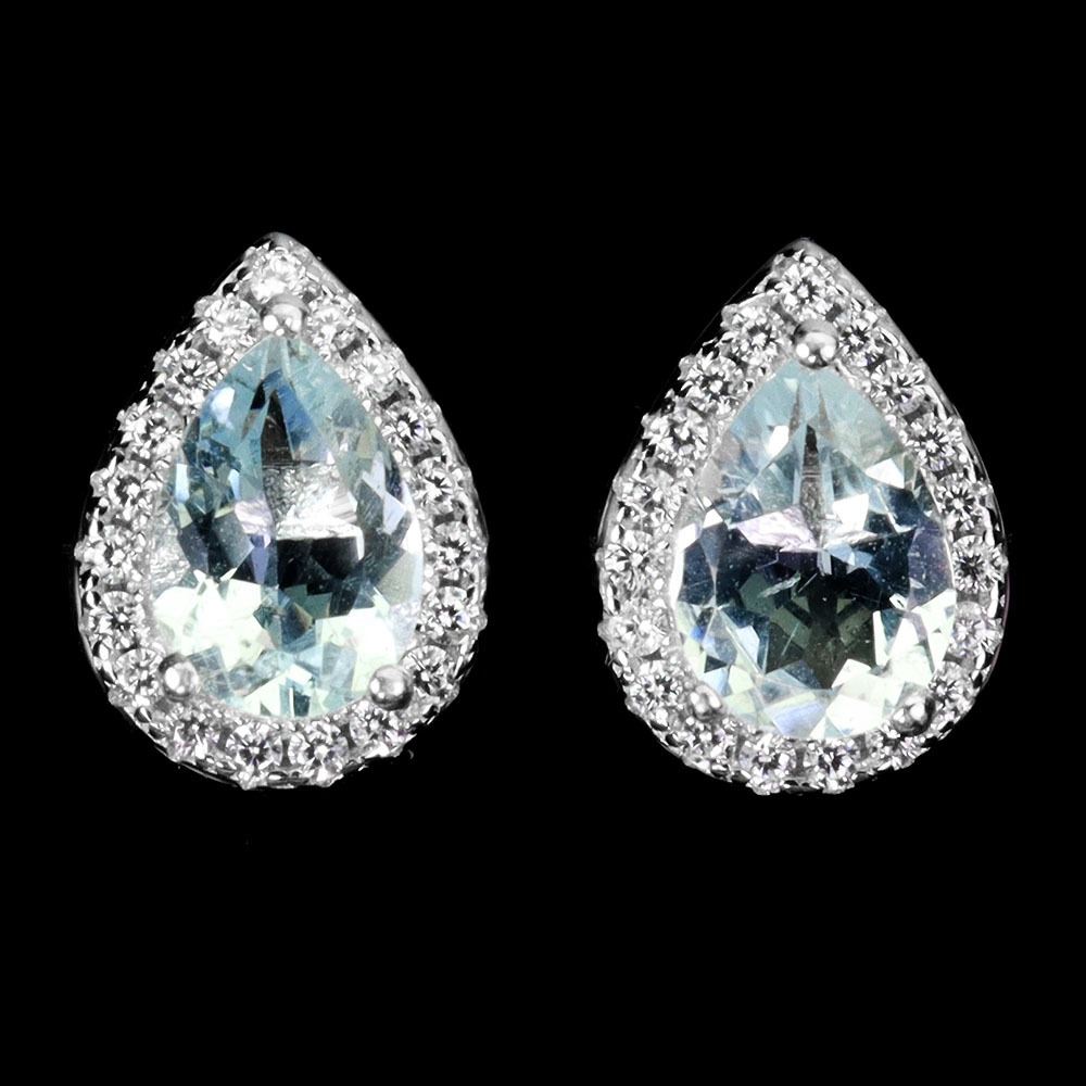 7X5 mm PEAR AQUAMARINE EARRINGS IN 14K WHITE GOLD PLATED OVER 925 STERLING SILVER - APPRAISED REPLACEMENT VALUE CAD 850