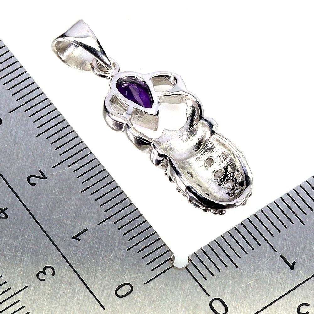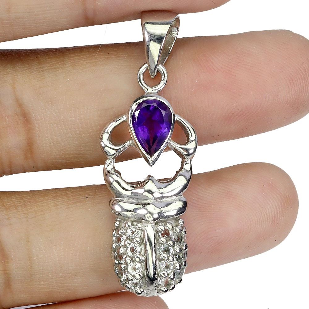 7X5 mm PEAR CUT AMETHYST AND WHITE TOPAZ PENDANT IN 14K WHITE GOLD PLATED OVER 925 STERLING SILVER - APPRAISED REPLACEMENT VALUE CAD 390