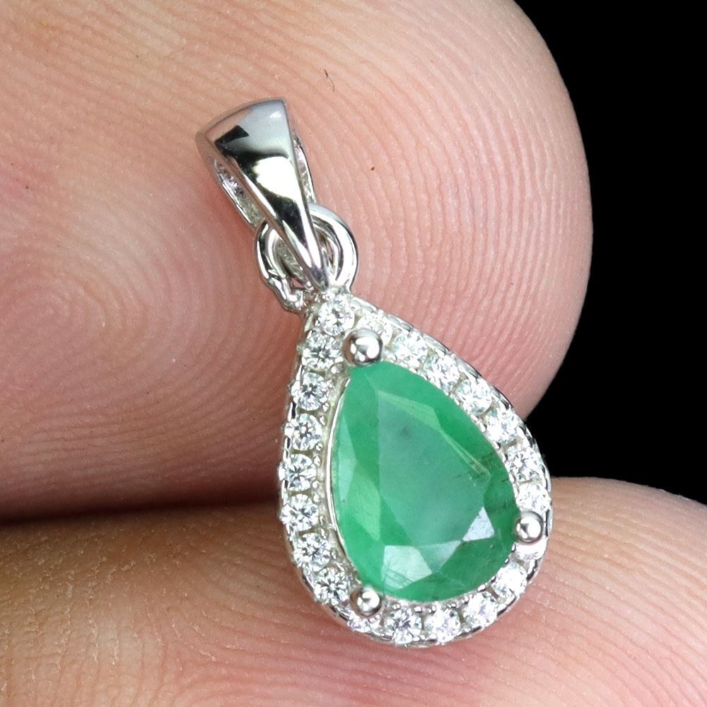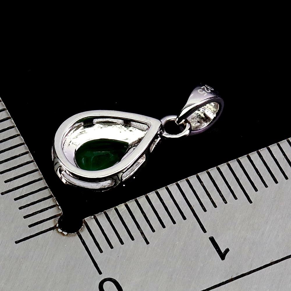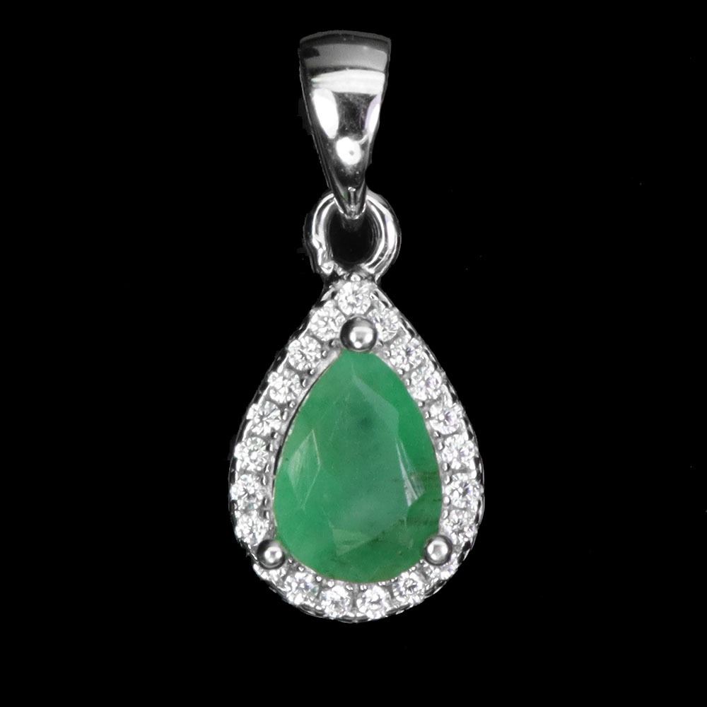 7X5 mm PEAR CUT EMERALD AND CZ PENDANT IN 14K WHITE PLATED GOLD OVER 925 STERLING SILVER - APPRAISED REPLACEMENT VALUE CAD 430