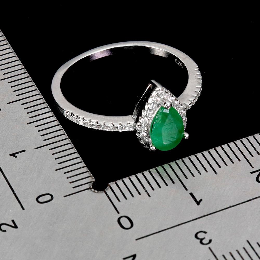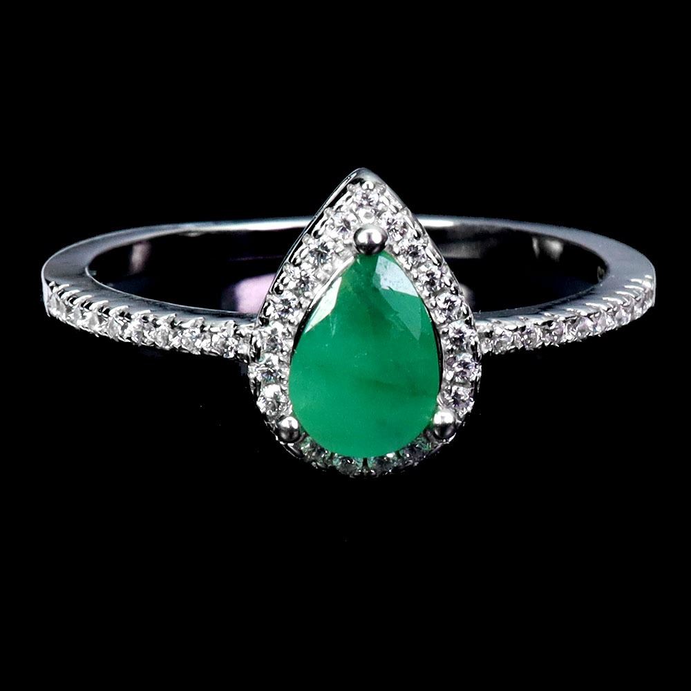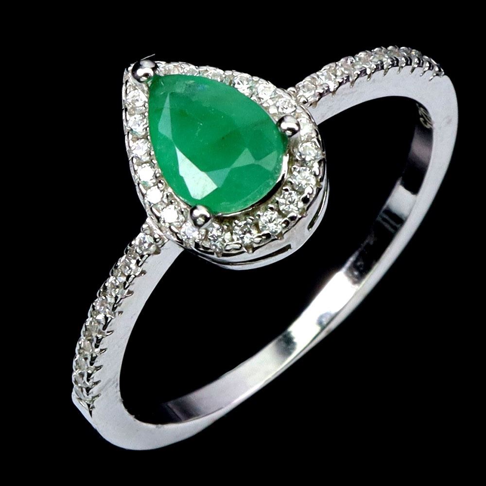 7X5 mm PEAR EMERALD AND CZ RING IN 14K WHITE GOLD PLATED OVER 925 STERLING SILVER - SIZE 7 - APPRAISED REPLACEMENT VALUE CAD 570