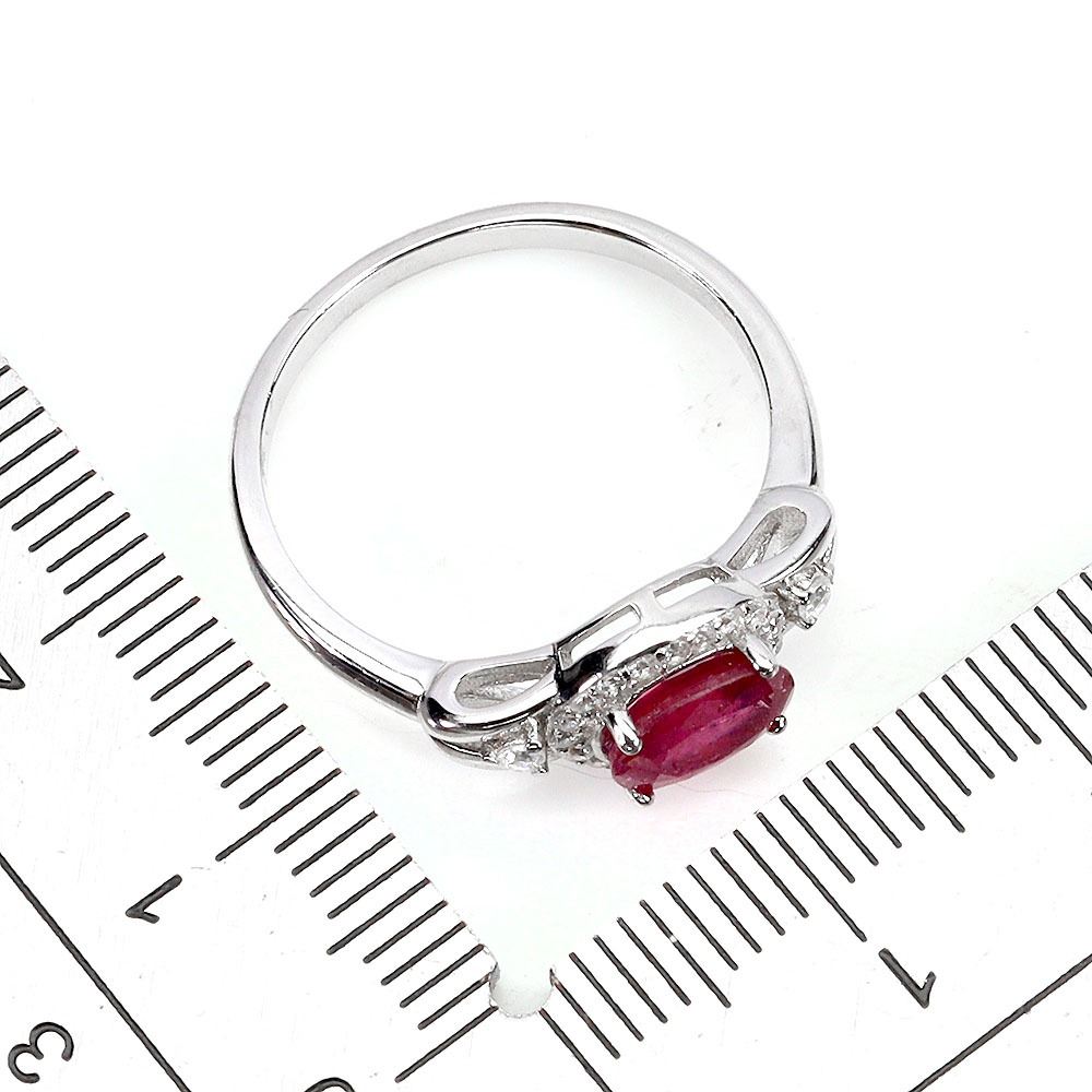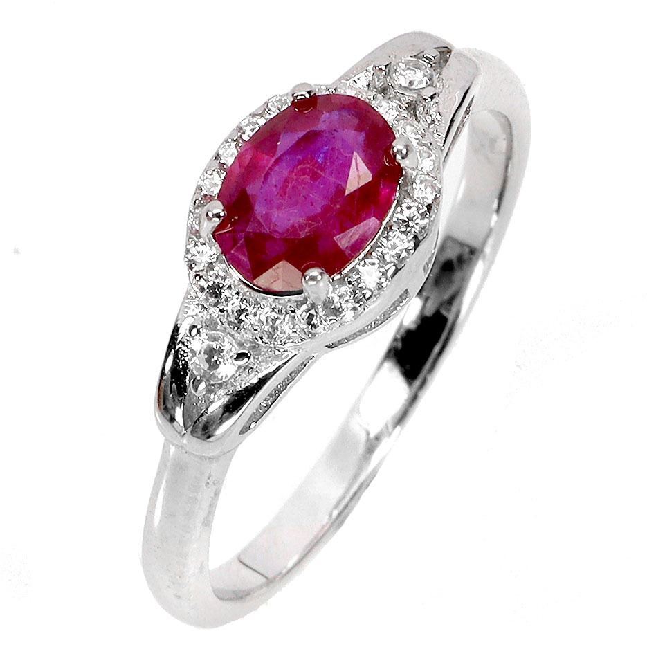 7X5 mm RUBY AND CZ RING IN 14K WHITE GOLD PLATED OVER 925 STERLING SILVER - SIZE 7 - APPRAISED REPLACEMENT VALUE CAD 340