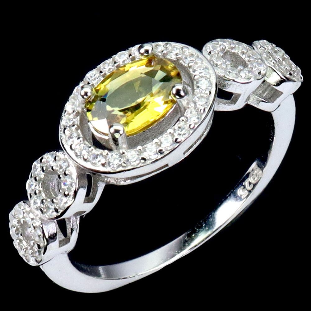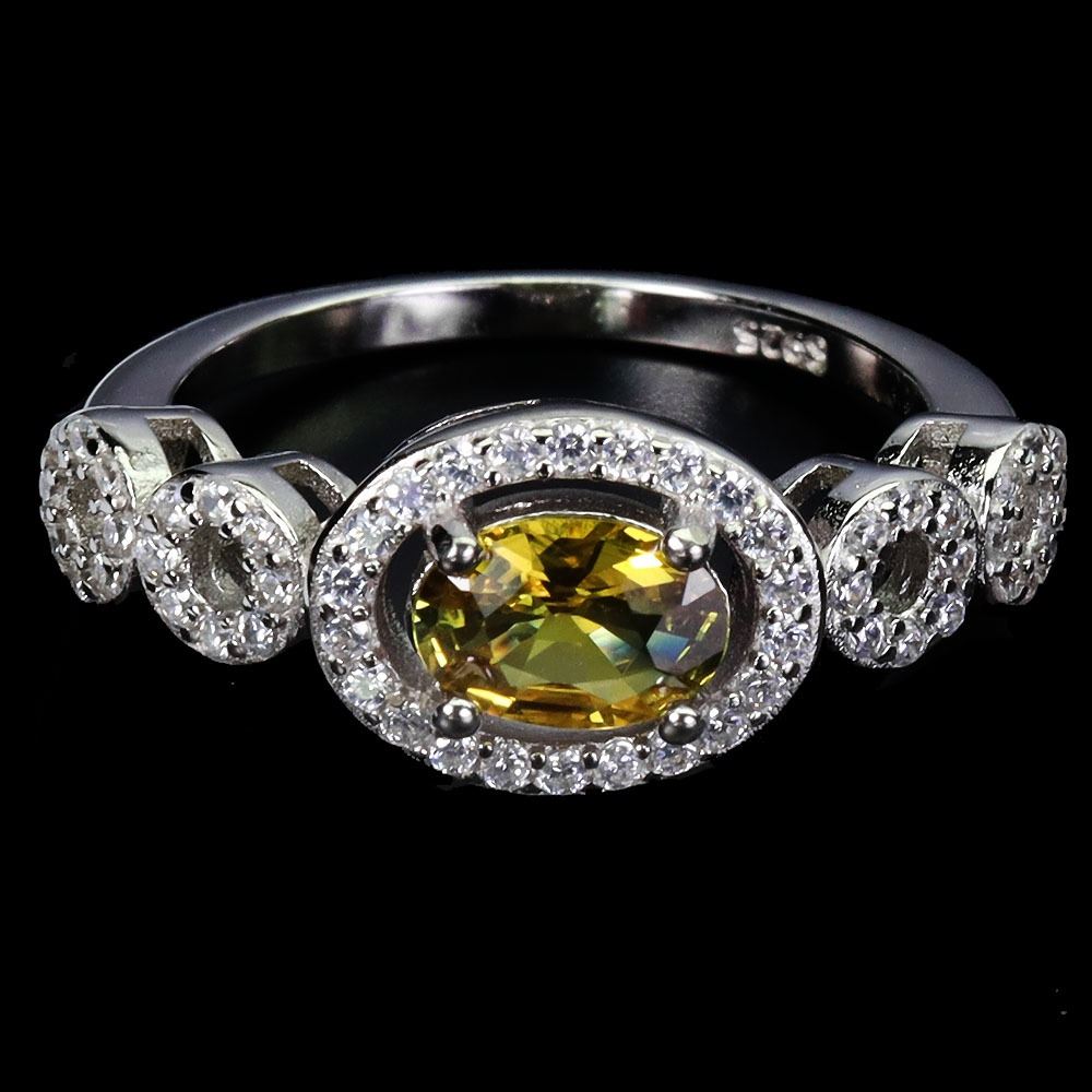 7X5 mm YELLOW SAPPHIRE RING IN 14K WHITE GOLD PLATED OVER 925 STERLING SILVER - APPRAISED REPLACEMENT VALUE CAD 670