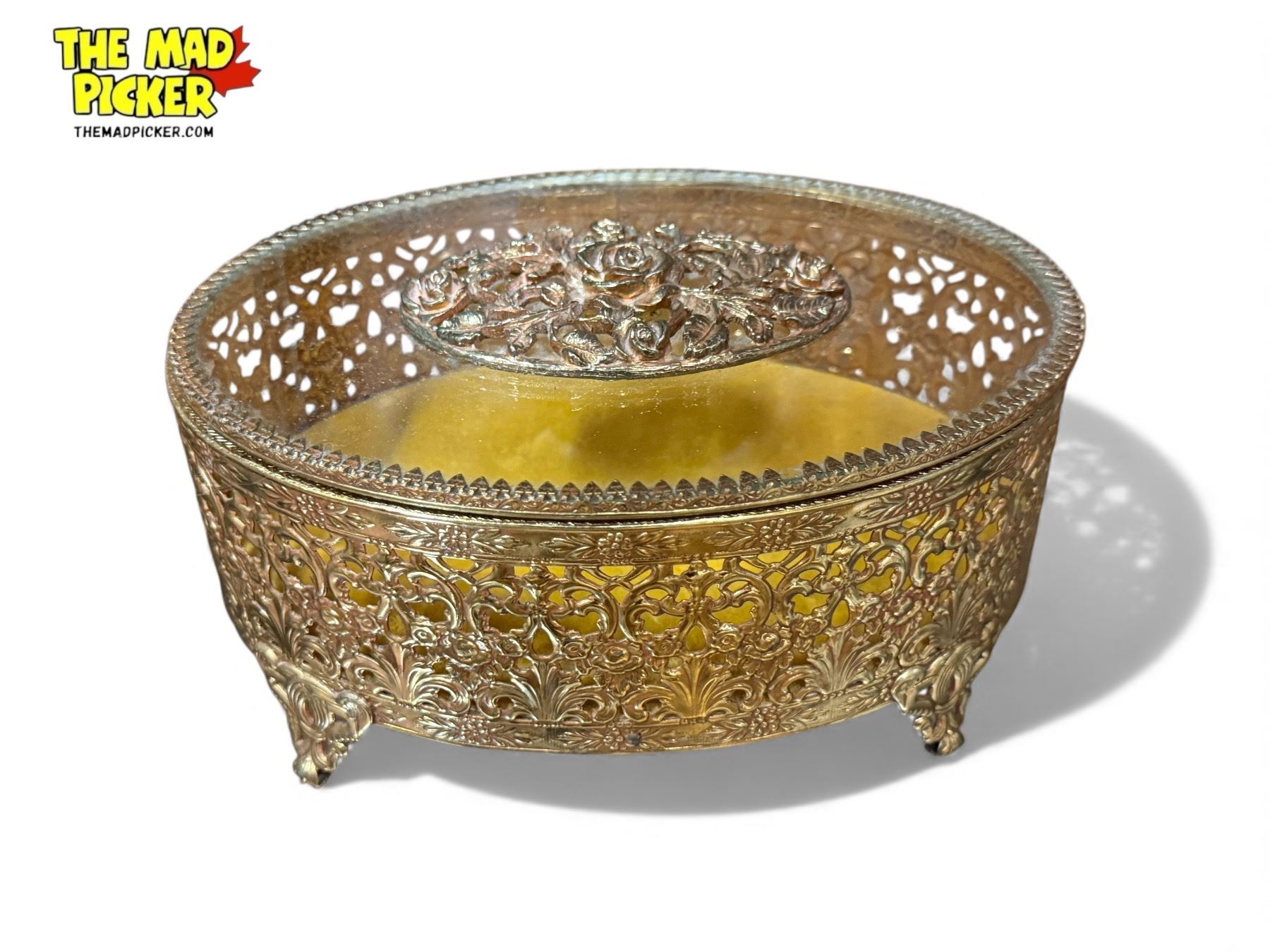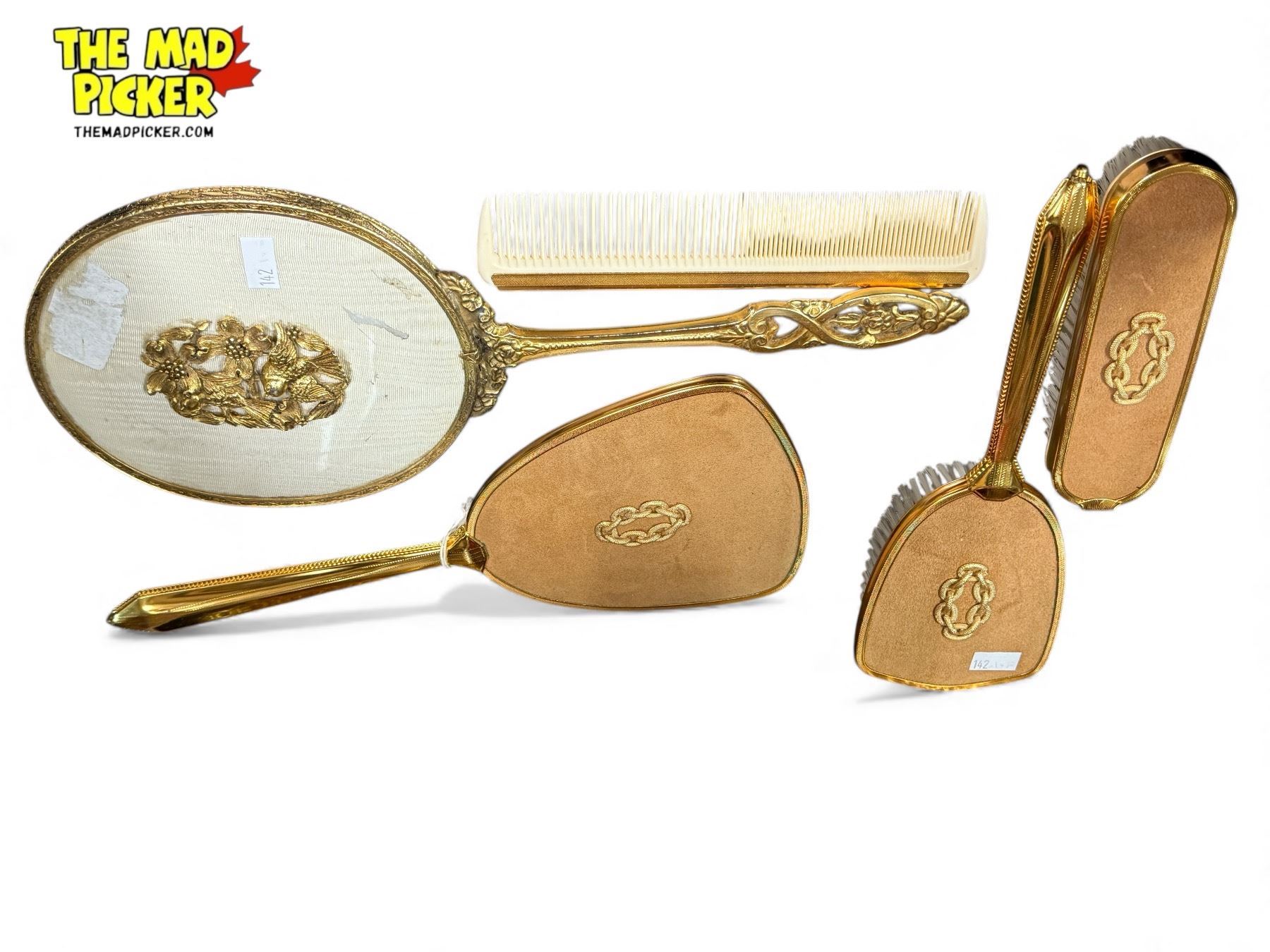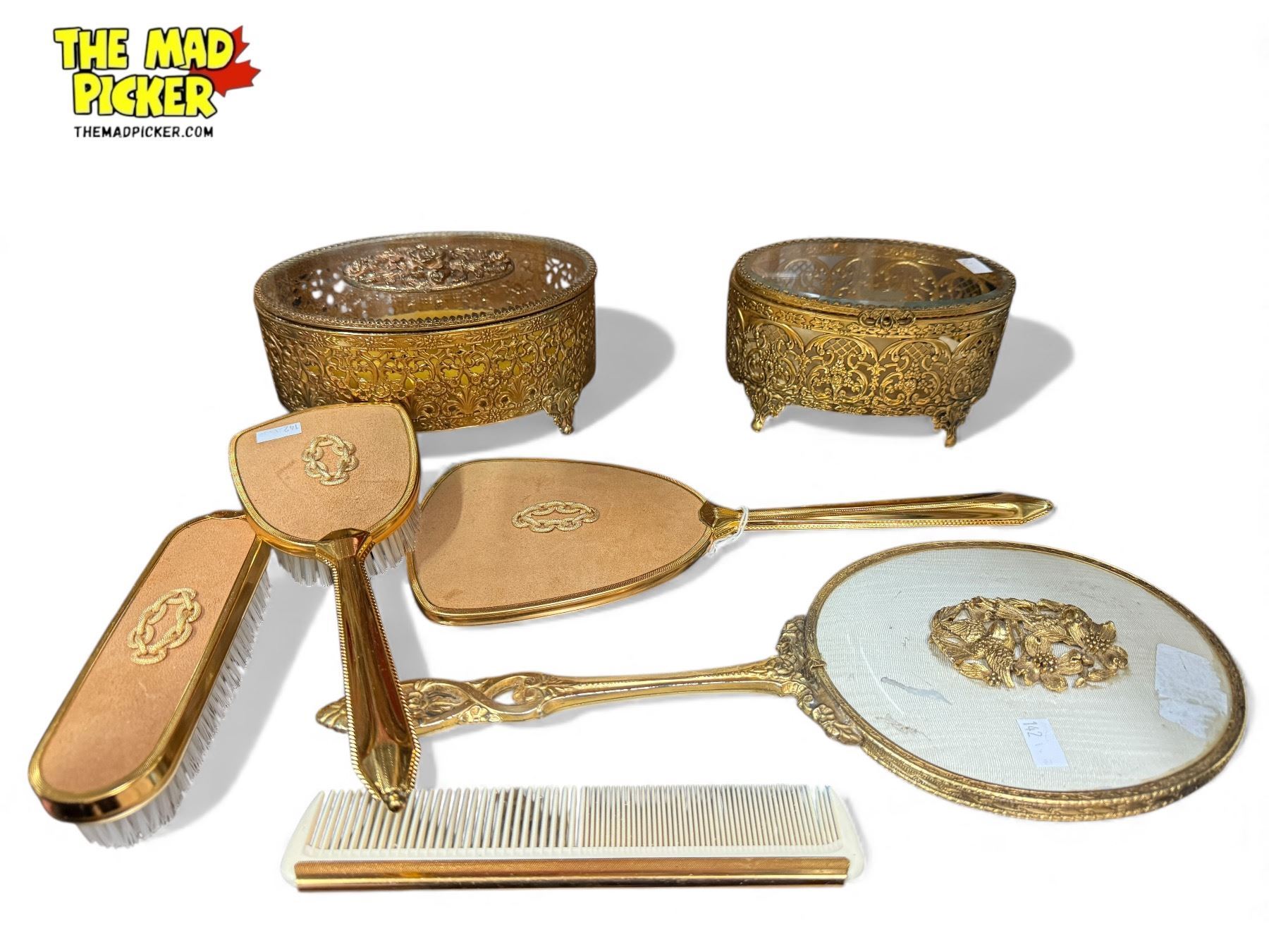 7x Pieces Of Vanity Accessories: Mirrors, Brushes, & Glasses Lidded Boxes