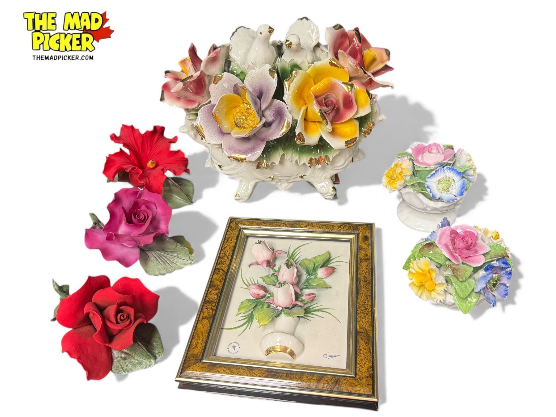 7x Vintage Porcelain Flowers: Capodimonte, Cotswold, & More