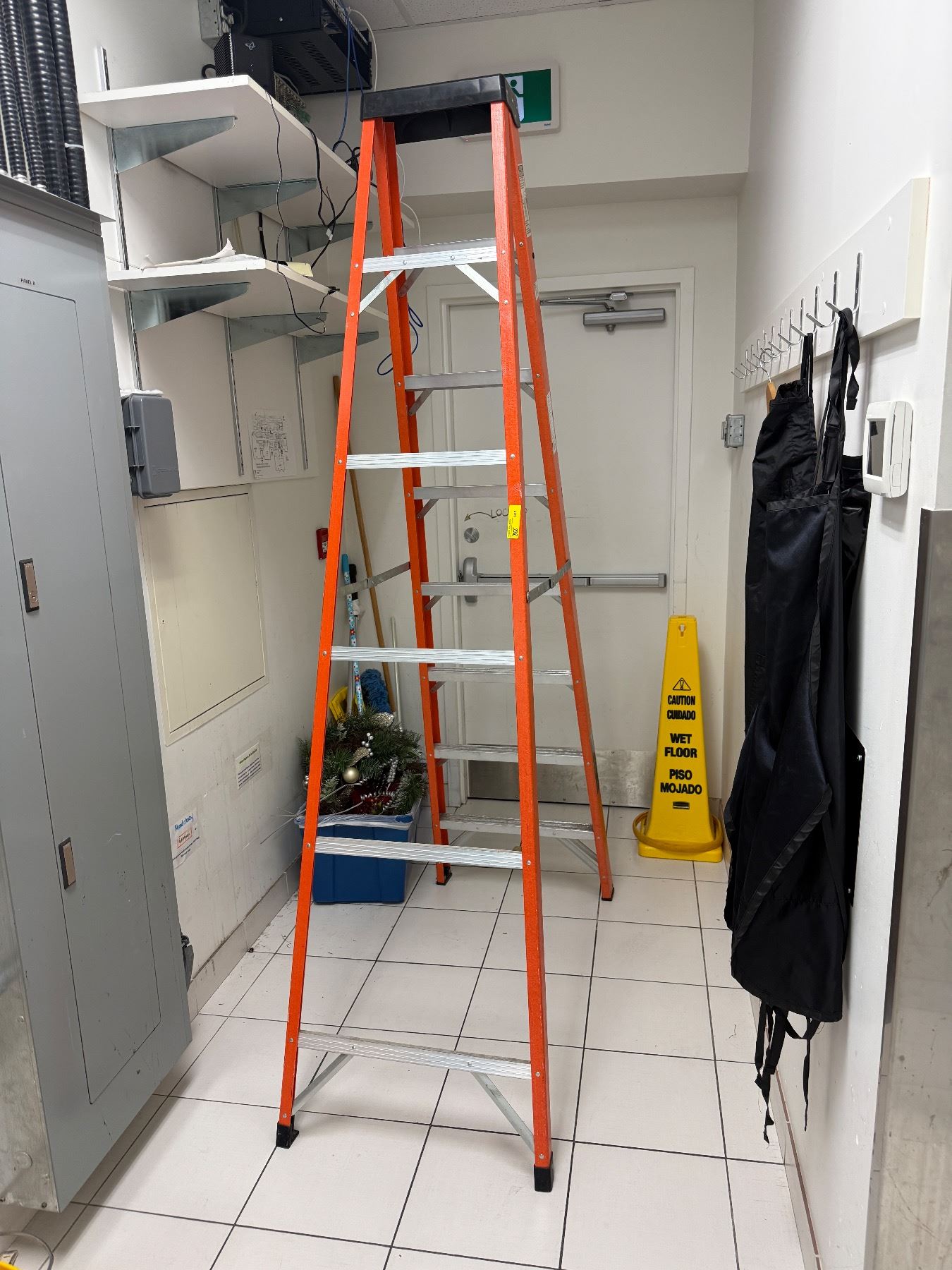 8-Foot Fiberglass Stepladder - Heavy-Duty Orange Non-Conductive Type 1/1A