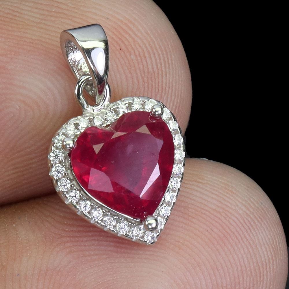 8 MM HEART CUT RUBY PENDANT IN 14K WHITE PLATED GOLD OVER 925 STERLING SILVER - APPRAISED REPLACEMENT VALUE CAD 600