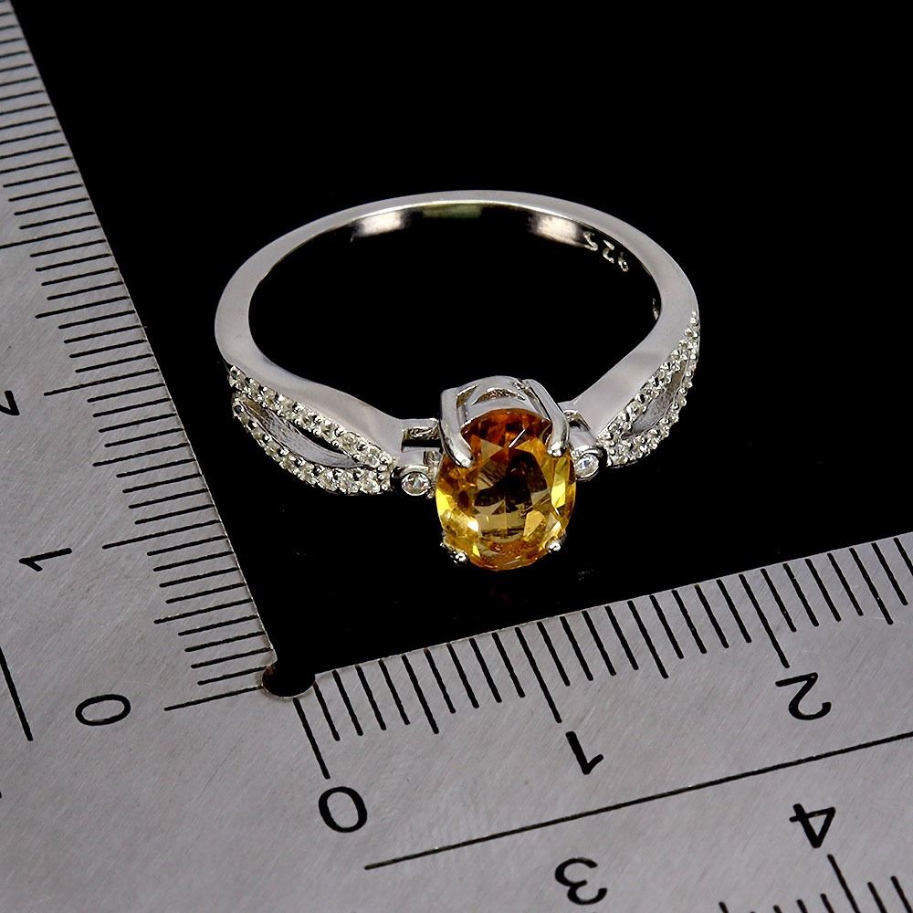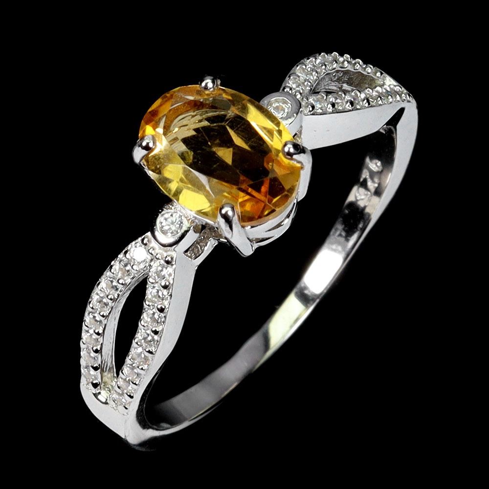 8X6 mm OVAL CUR CITRINE RING IN 14K WHITE PLATED GOLD OVER 925 STERLING SILVER - SIZE 7 - APPRAISED REPLACEMENT VALUE CAD 410