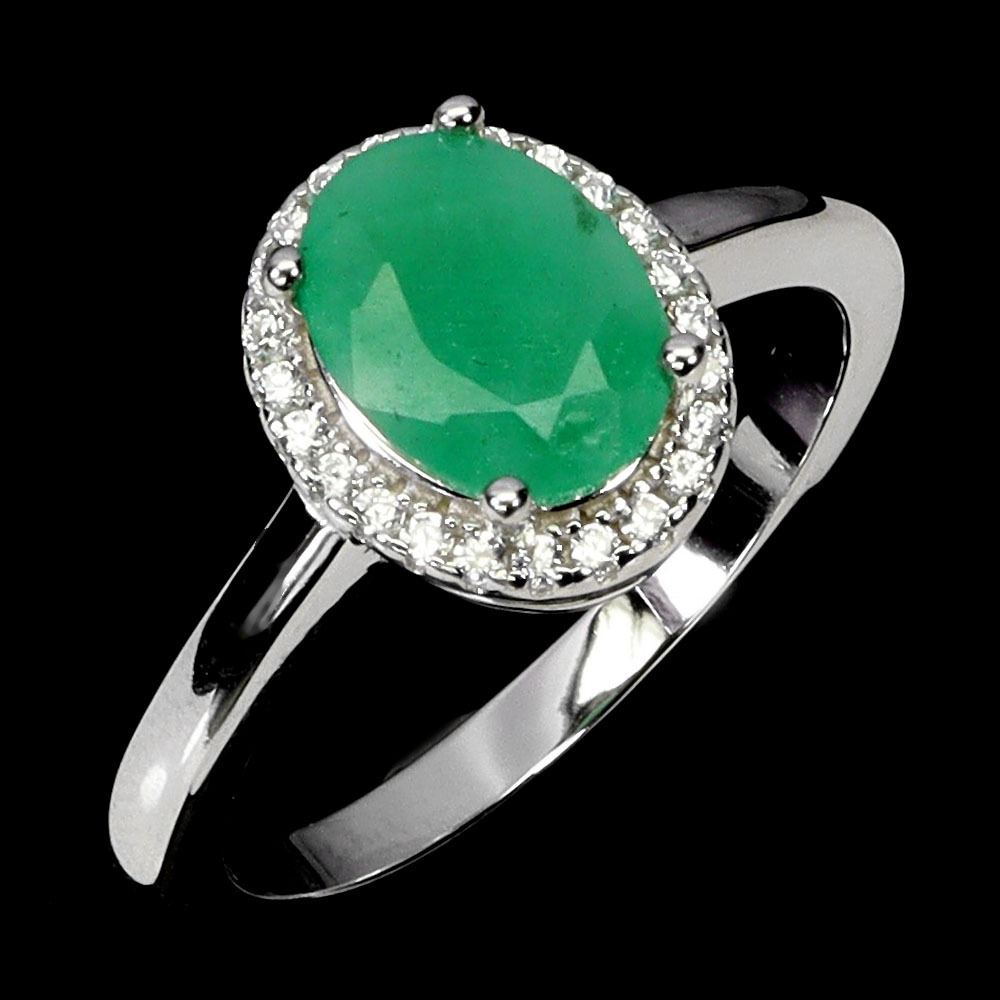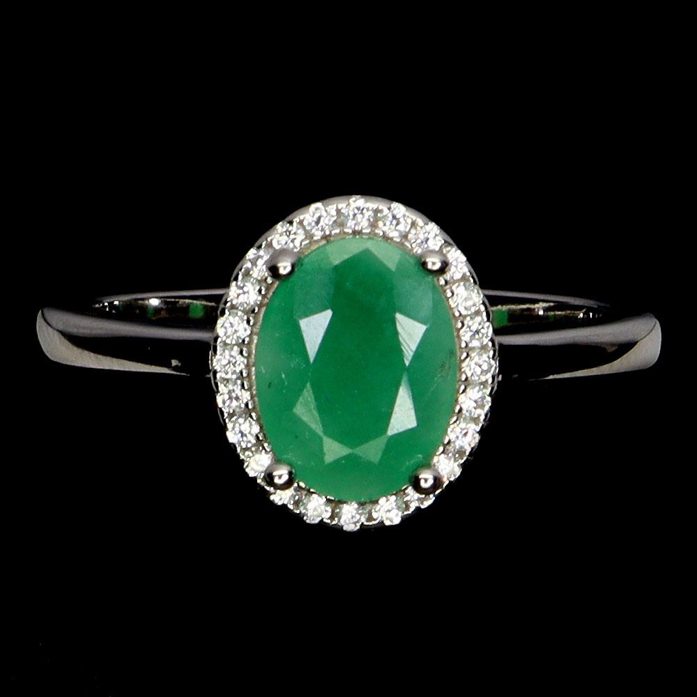 8X6 mm OVAL CUT EMERALD RING IN 14K WHITE PLATED GOLD OVER 925 STERLING SILVER - SIZE 6 - APPRAISED REPLACEMENT VALUE CAD 490