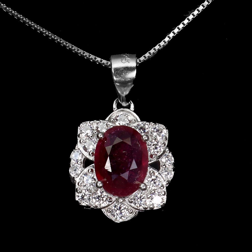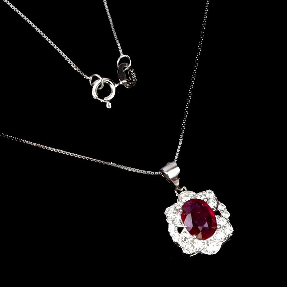8X6 mm OVAL CUT RUBY NECKLACE IN 14K WHITE PLATED GOLD OVER 925 STERLING SILVER - 18 INCHES LONG - APPRAISED REPLACEMENT VALUE CAD 420