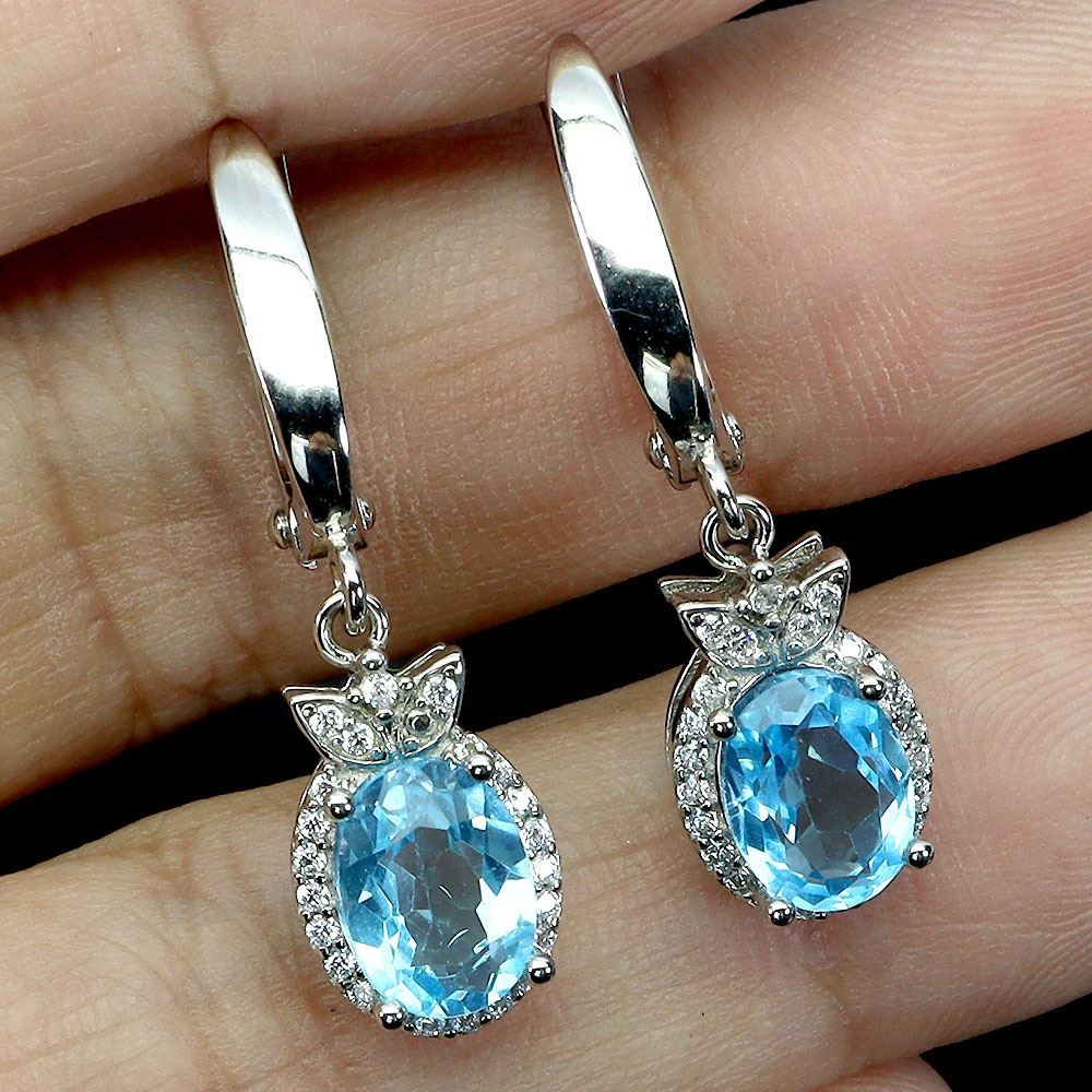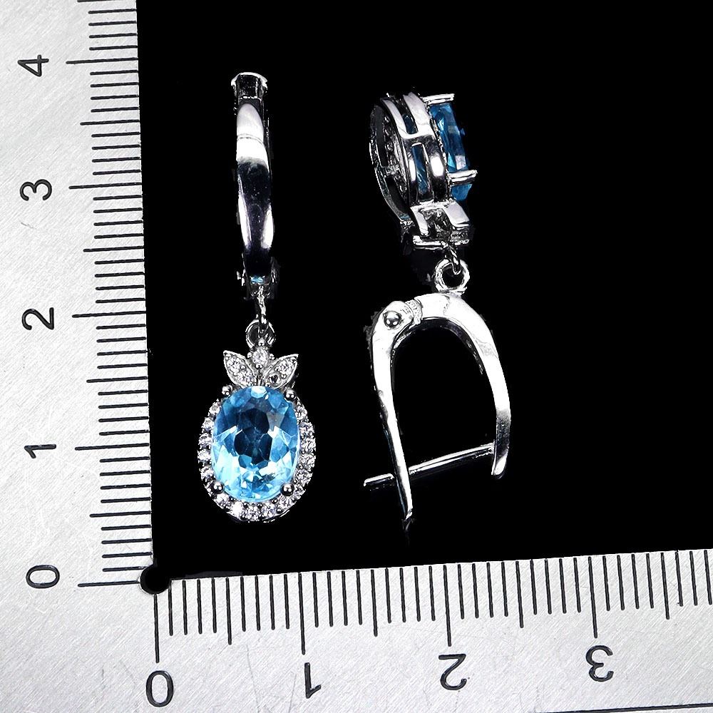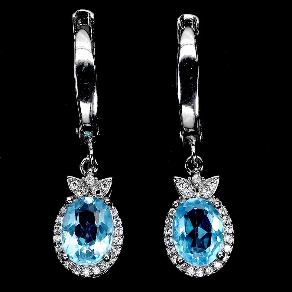 8X6 mm SWISS BLUE TOPAZ AND CZ EARRINGS IN 14K WHITE PLATED GOLD OVER 925 STERLING SILVER - APPRAISED REPLACEMENT VALUE CAD 860