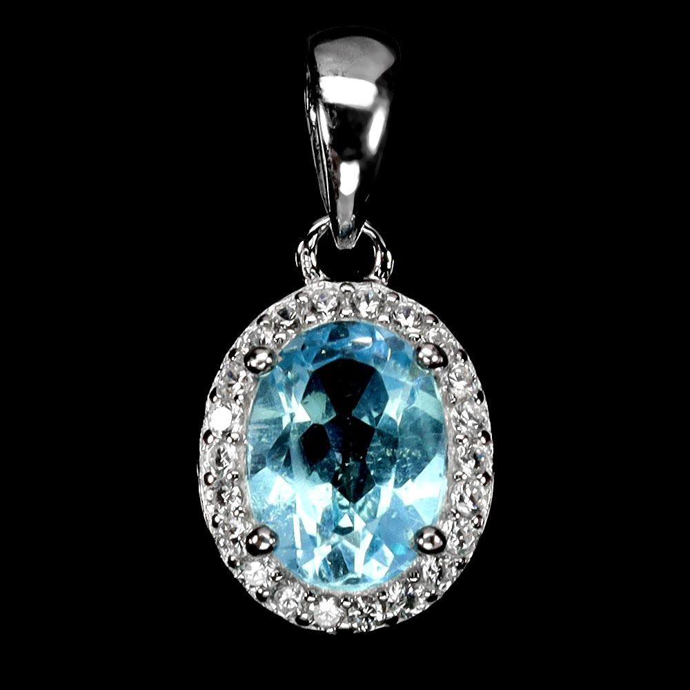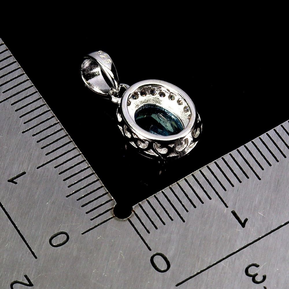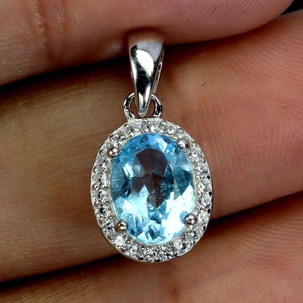 8X6 mm SWISS BLUE TOPAZ AND CZ PENDANT IN 14K WHITE GOLD PLATED OVER 925 STERLING SILVER - APPRAISED REPLACEMENT VALUE CAD 340