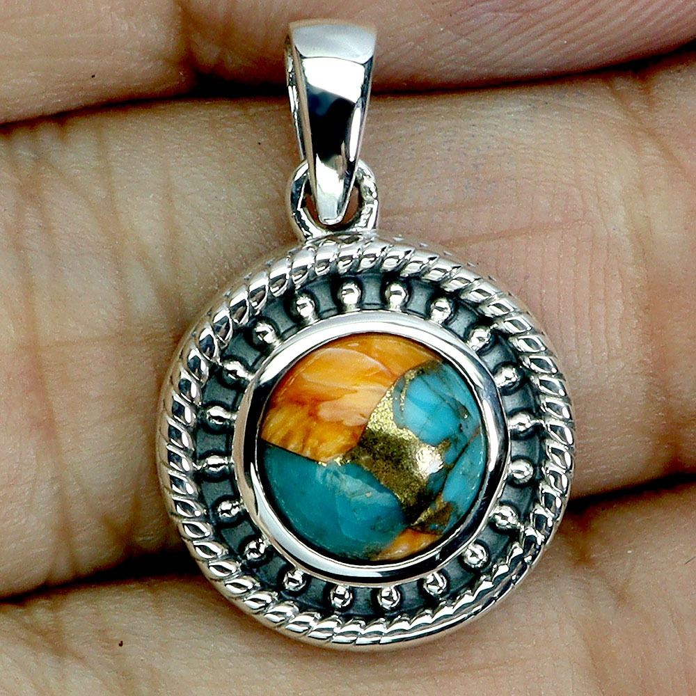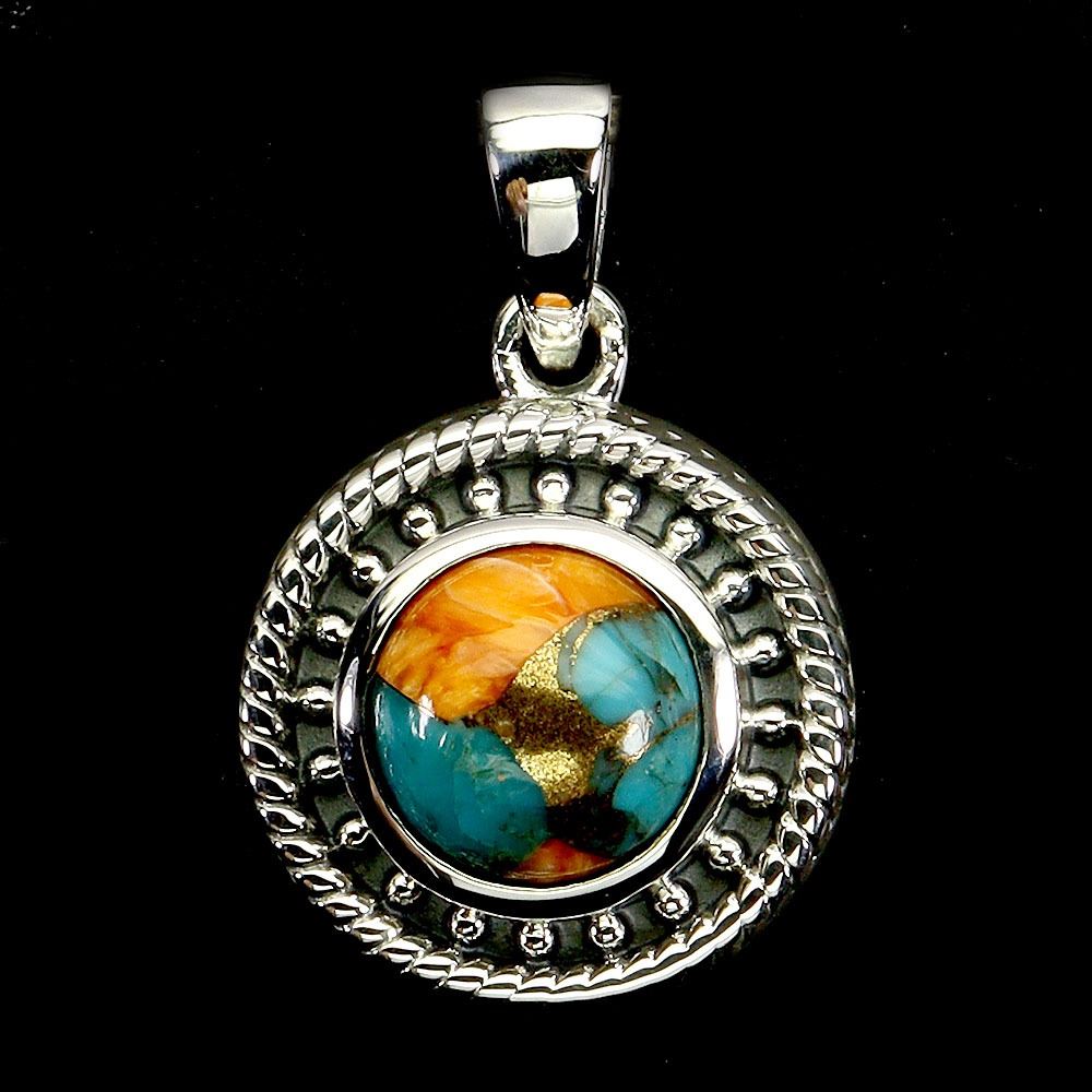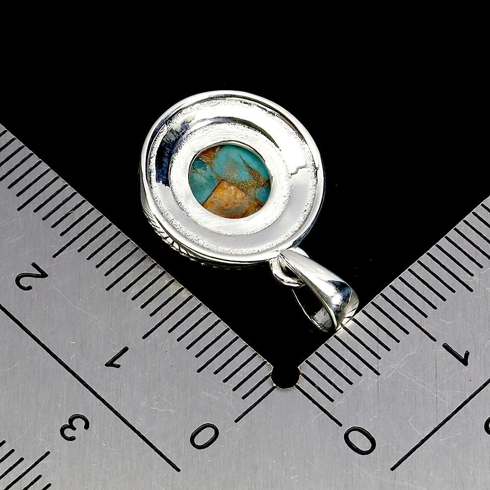 8mm ROUND KINGMAN TURQUOISE PENDANT IN 14K WHITE GOLD PLATED OVER 925 STERLING SILVER - APPRAISED REPLACEMENT VALUE CAD 445