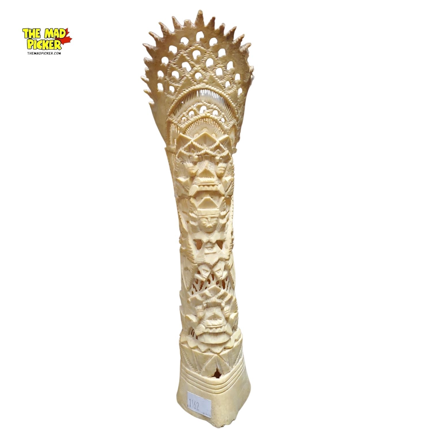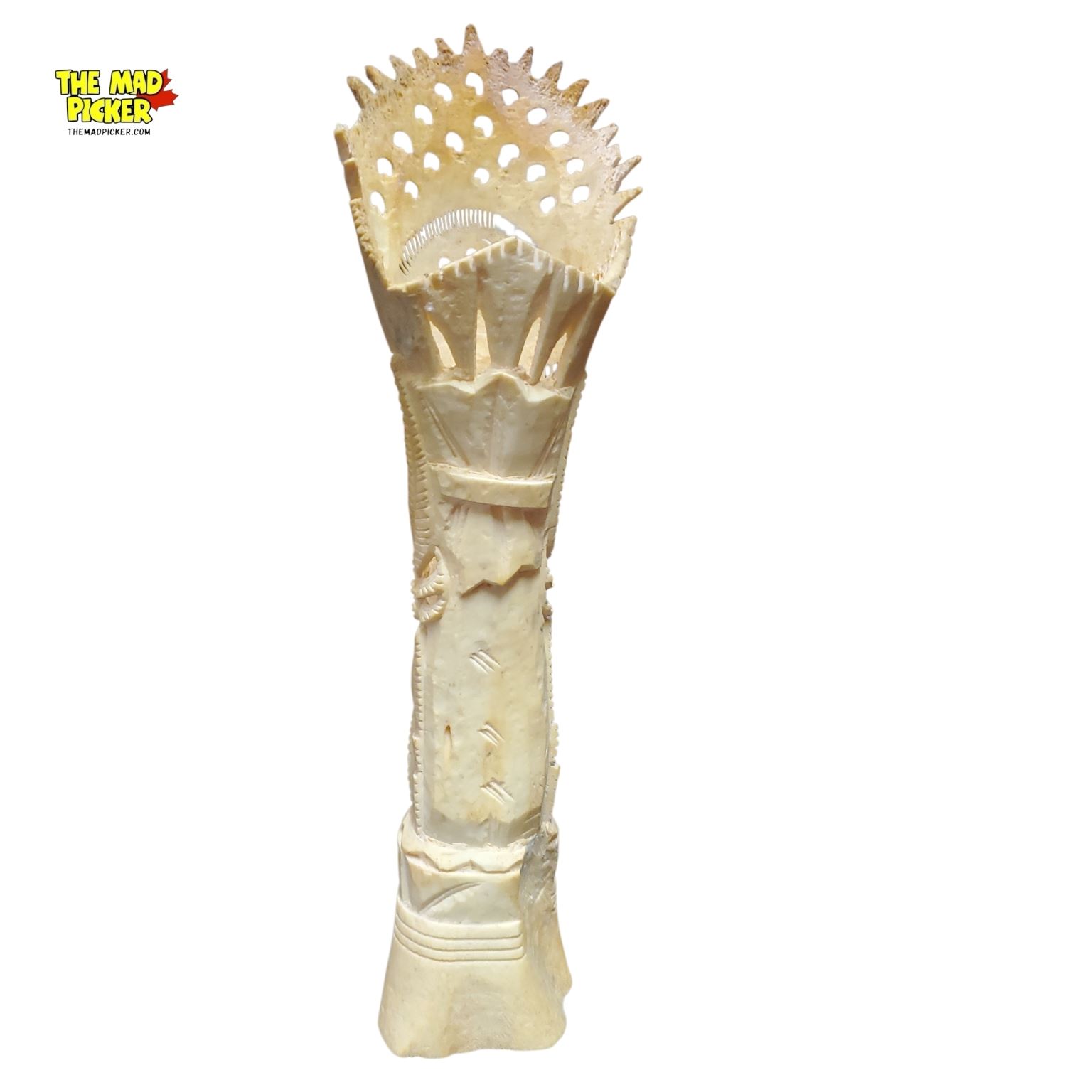 9.5in Tall Hand-Carved Balinese Bone Totem Statue Open-Work Design
