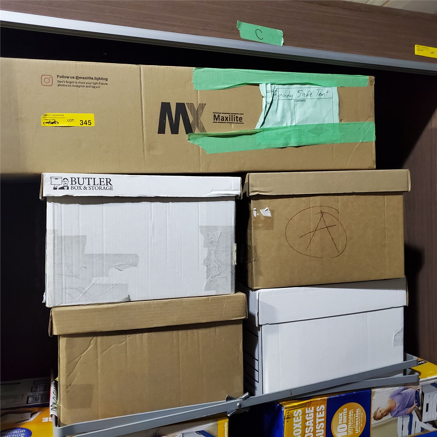 9 Boxes of Misc Movie Set Items Includes Storage Boxes and Supplies, and More