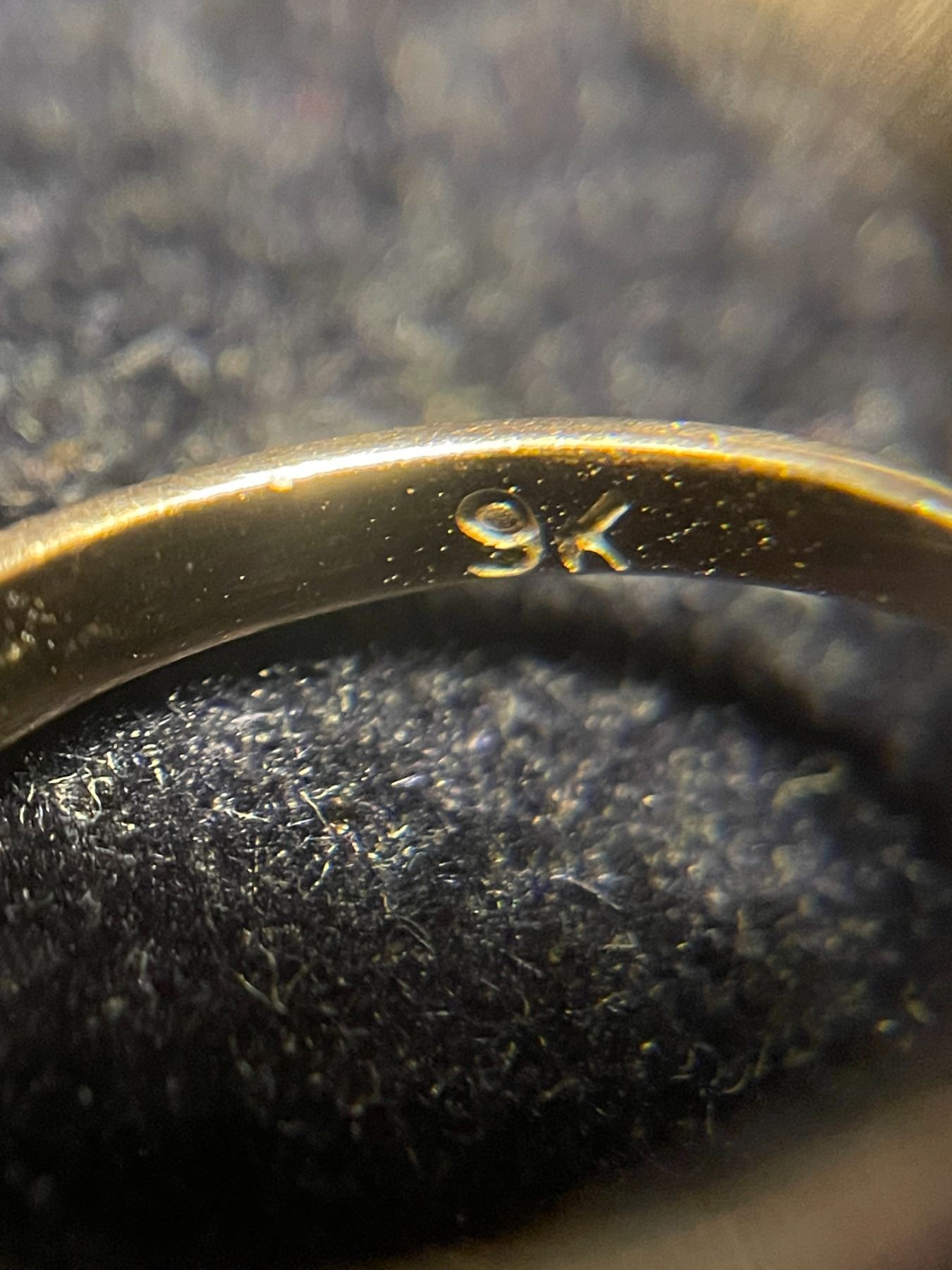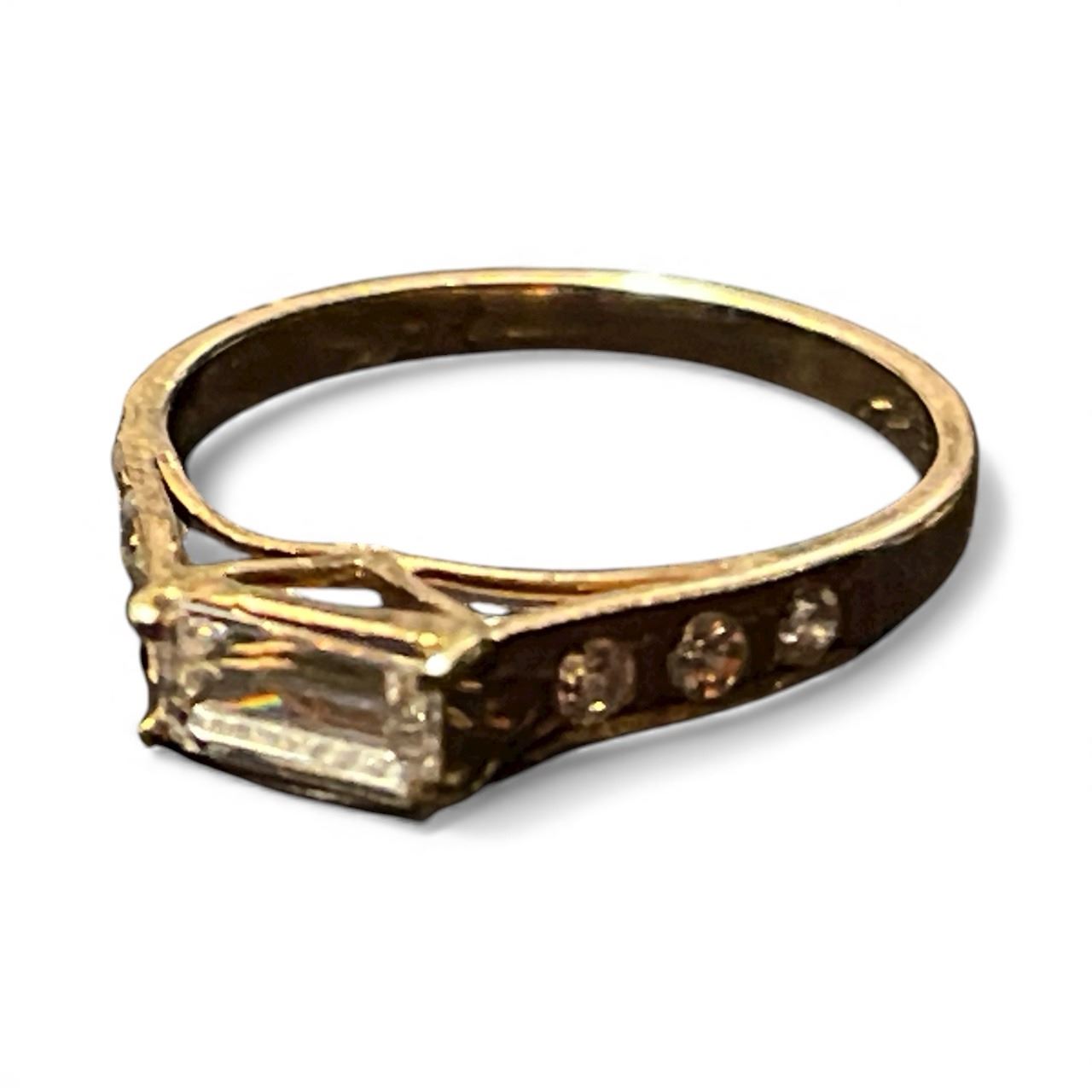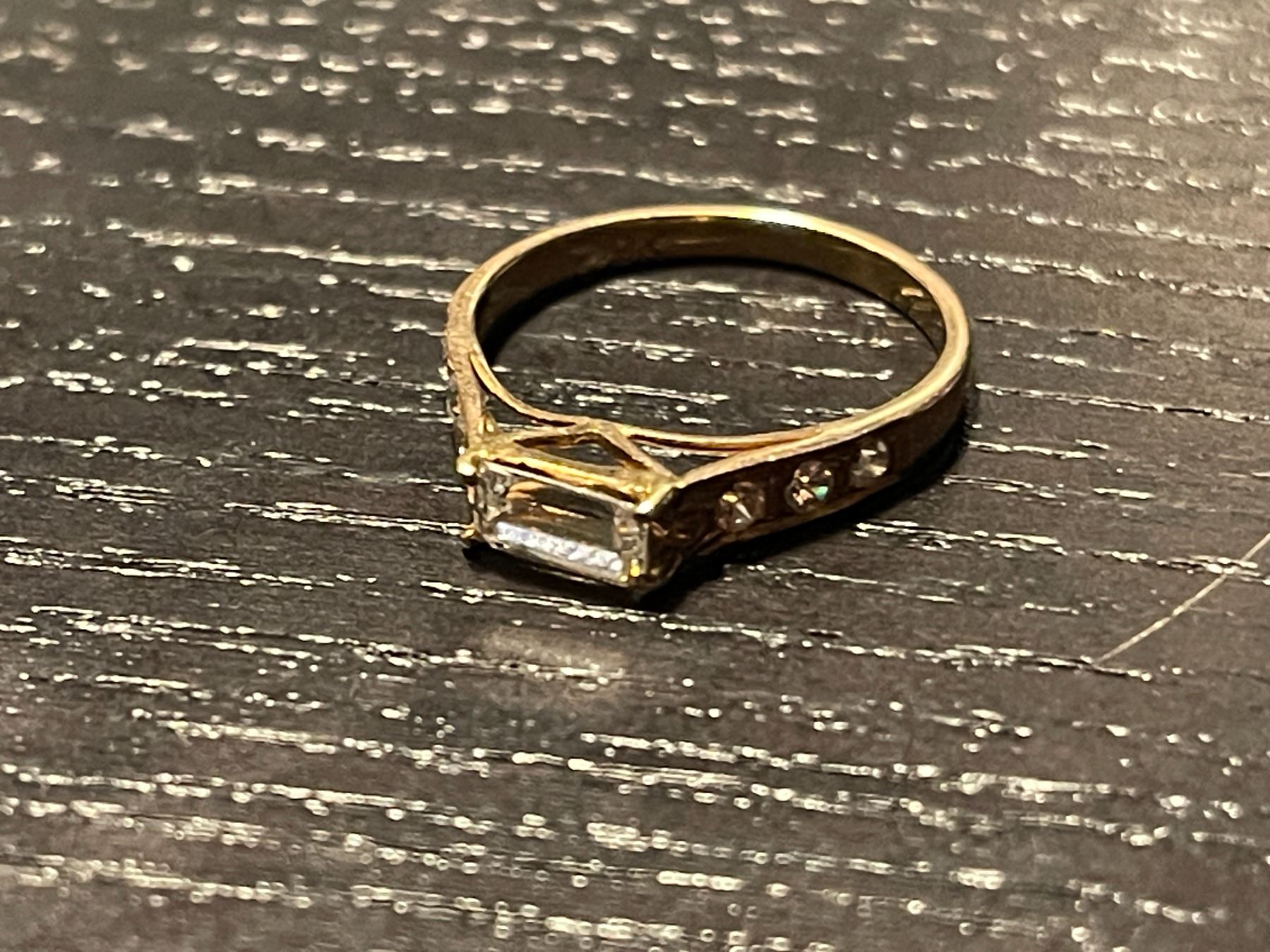 9 KT Gold Ring with Clear Gemstones - Size 5 - Total weight including gems: 1.4 grams