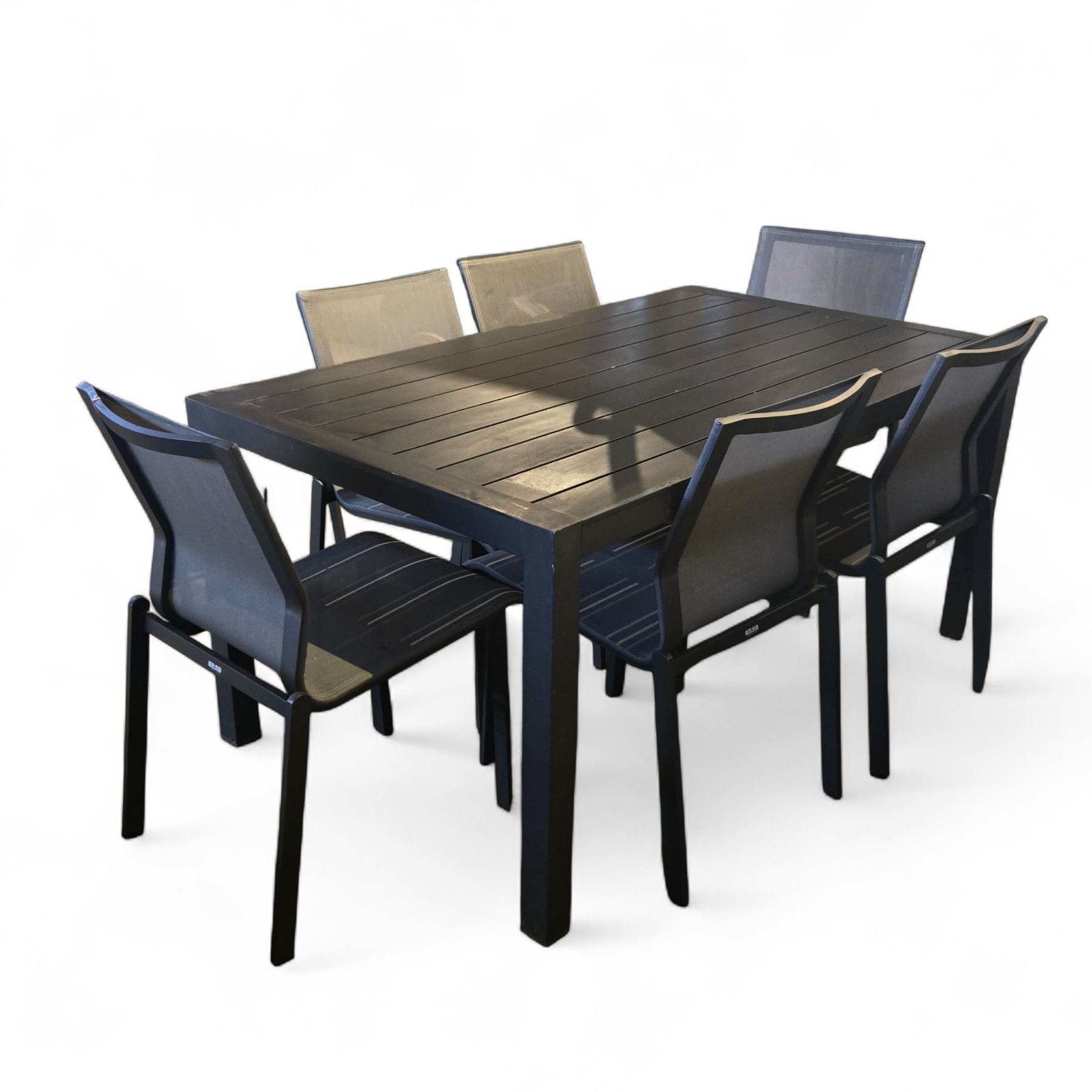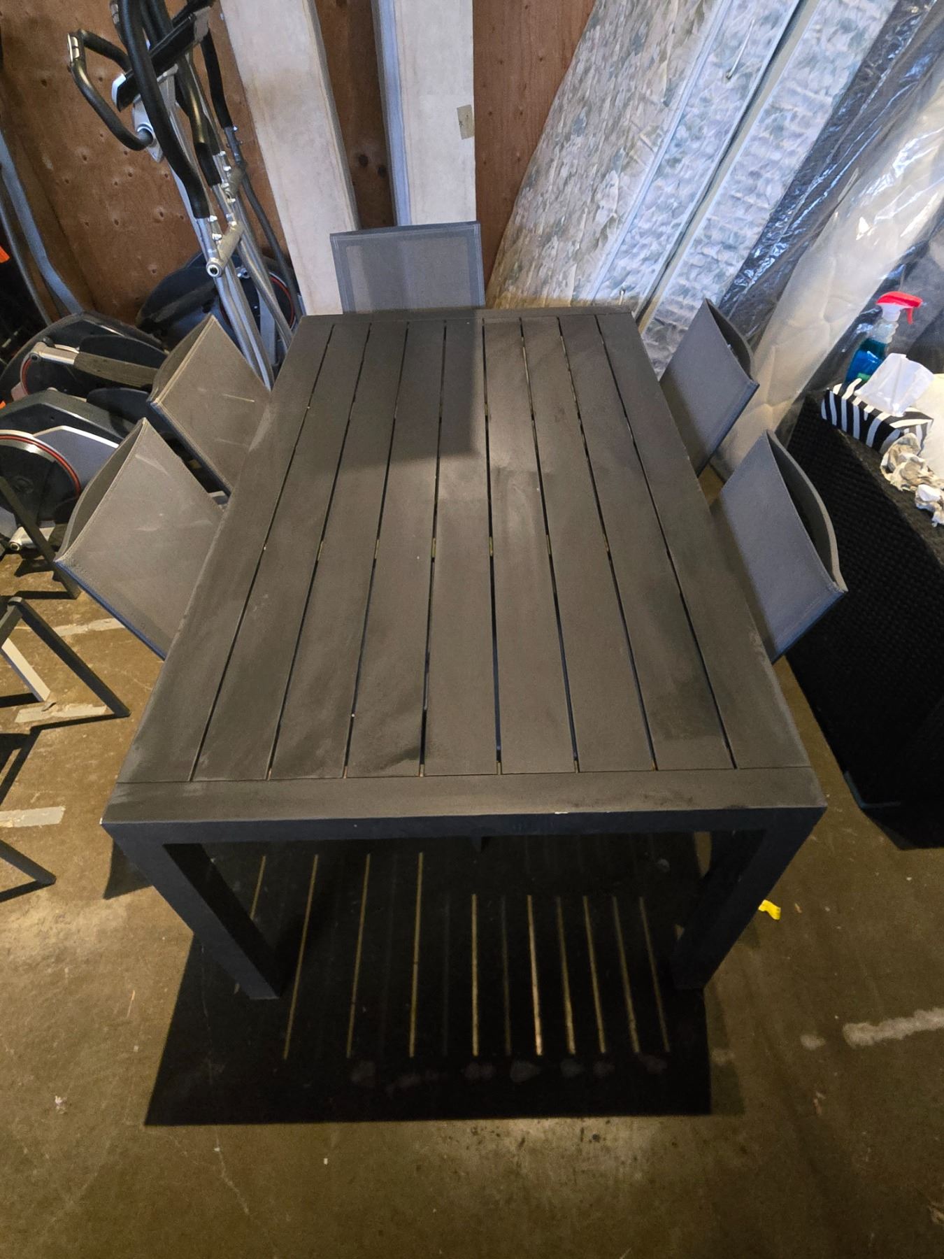 9 pc - Outdoor Patio Dining Table, Chairs & Candle Lanterns - Table: 63x37x29.5"