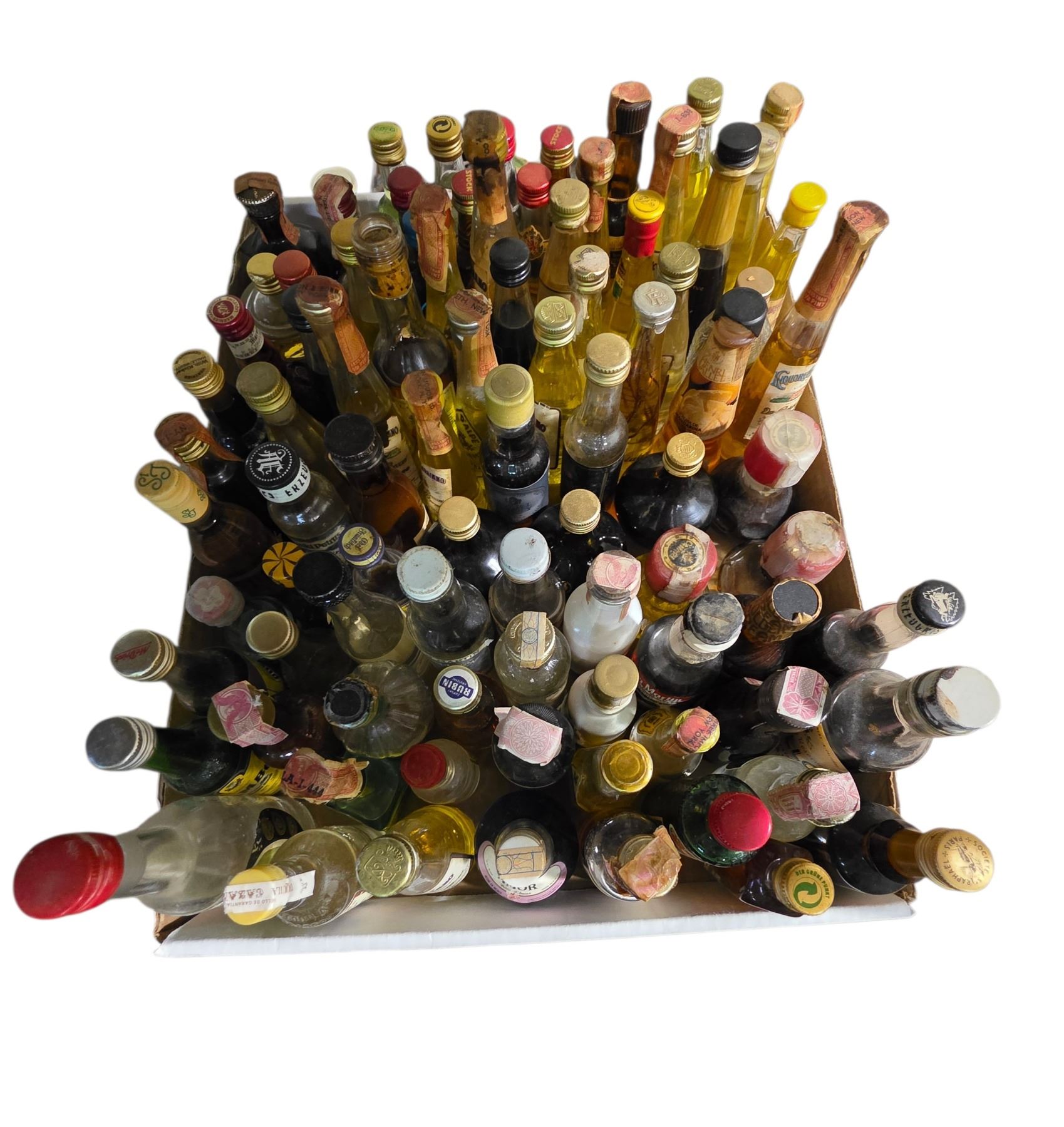 90+ Vintage Glass Mini Liquor Bottles - Approx. 50% Retain Partial Contents