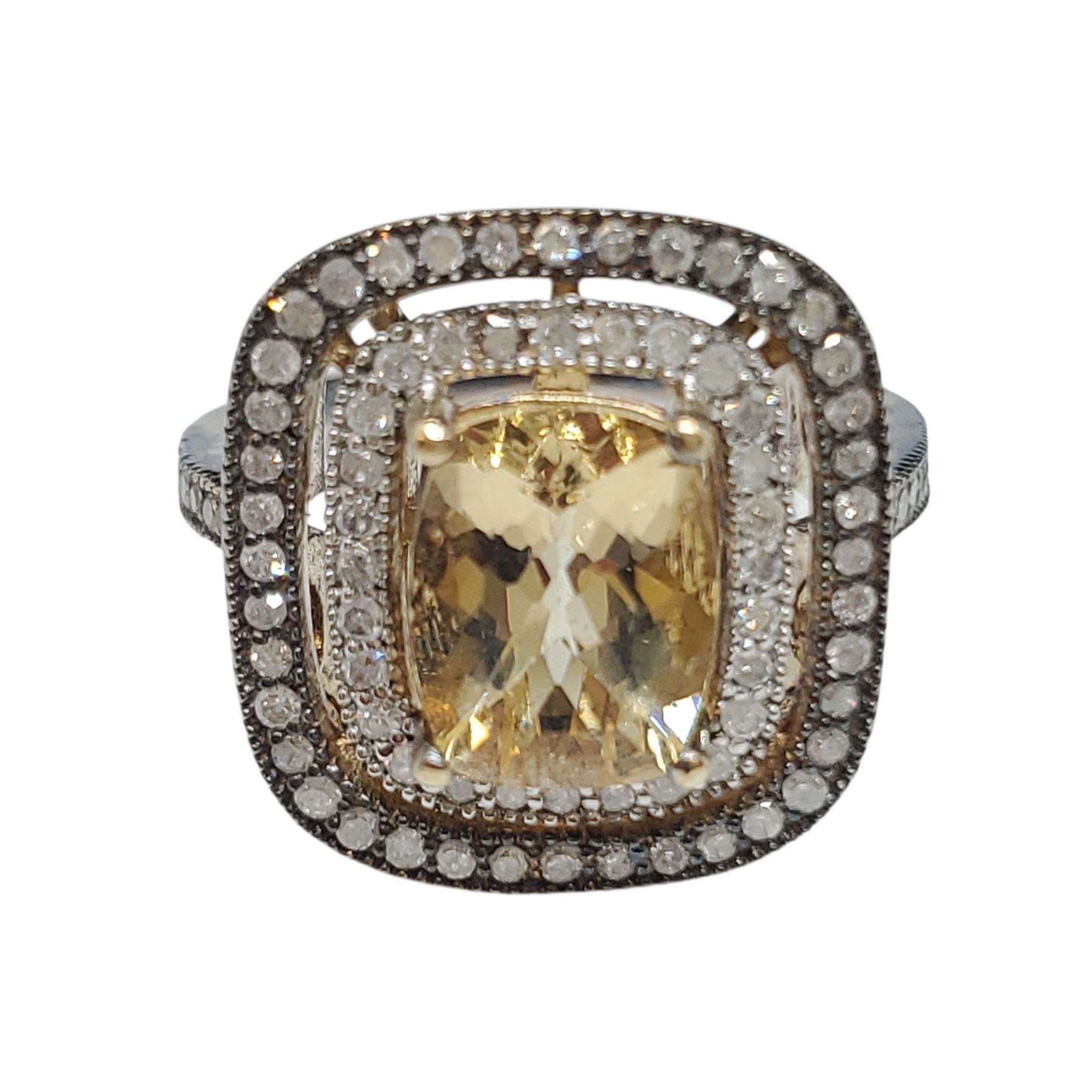 .925 Silver Citrine and Crystal Ring - 16.7 mm wide - Size 6 - Weight 3.2 grams