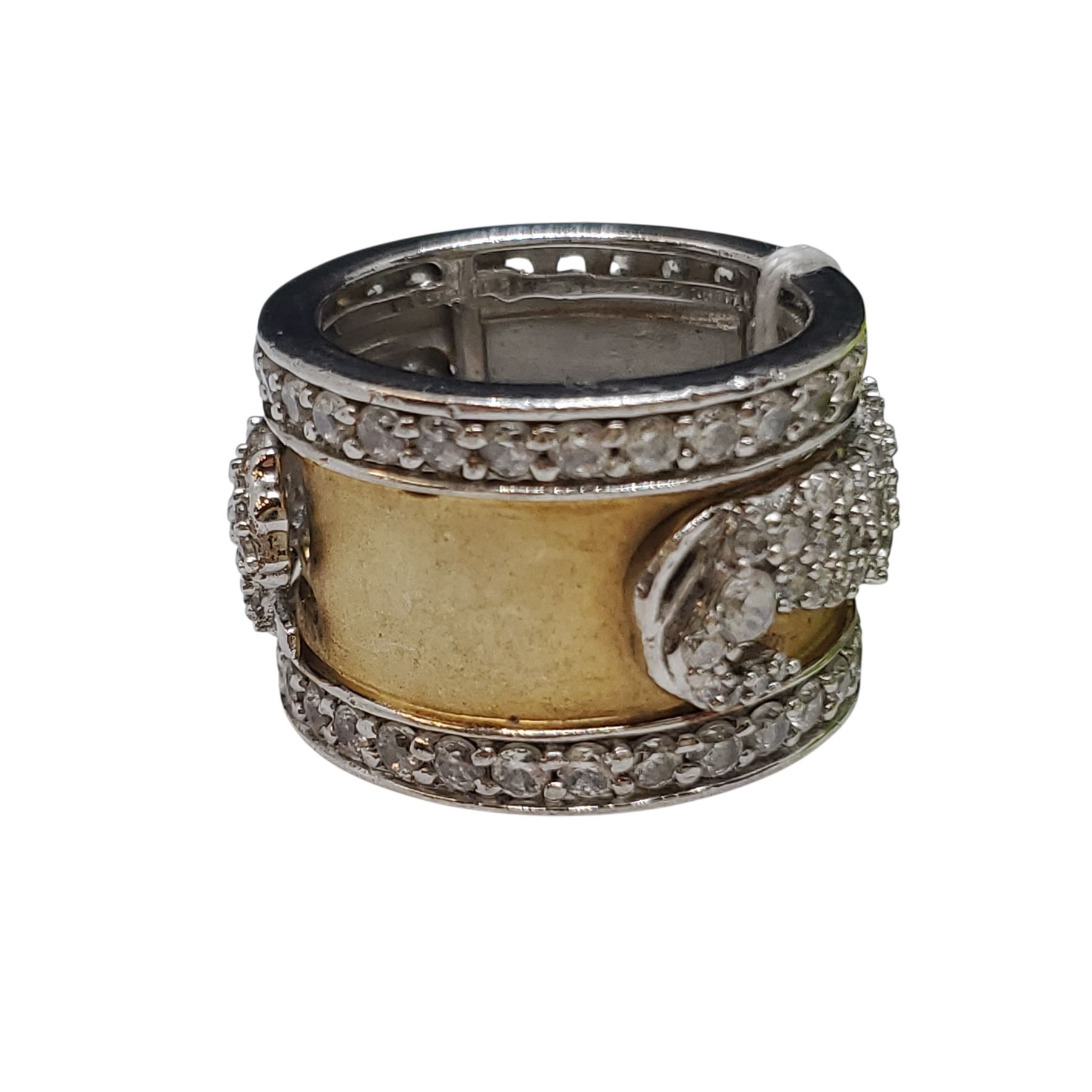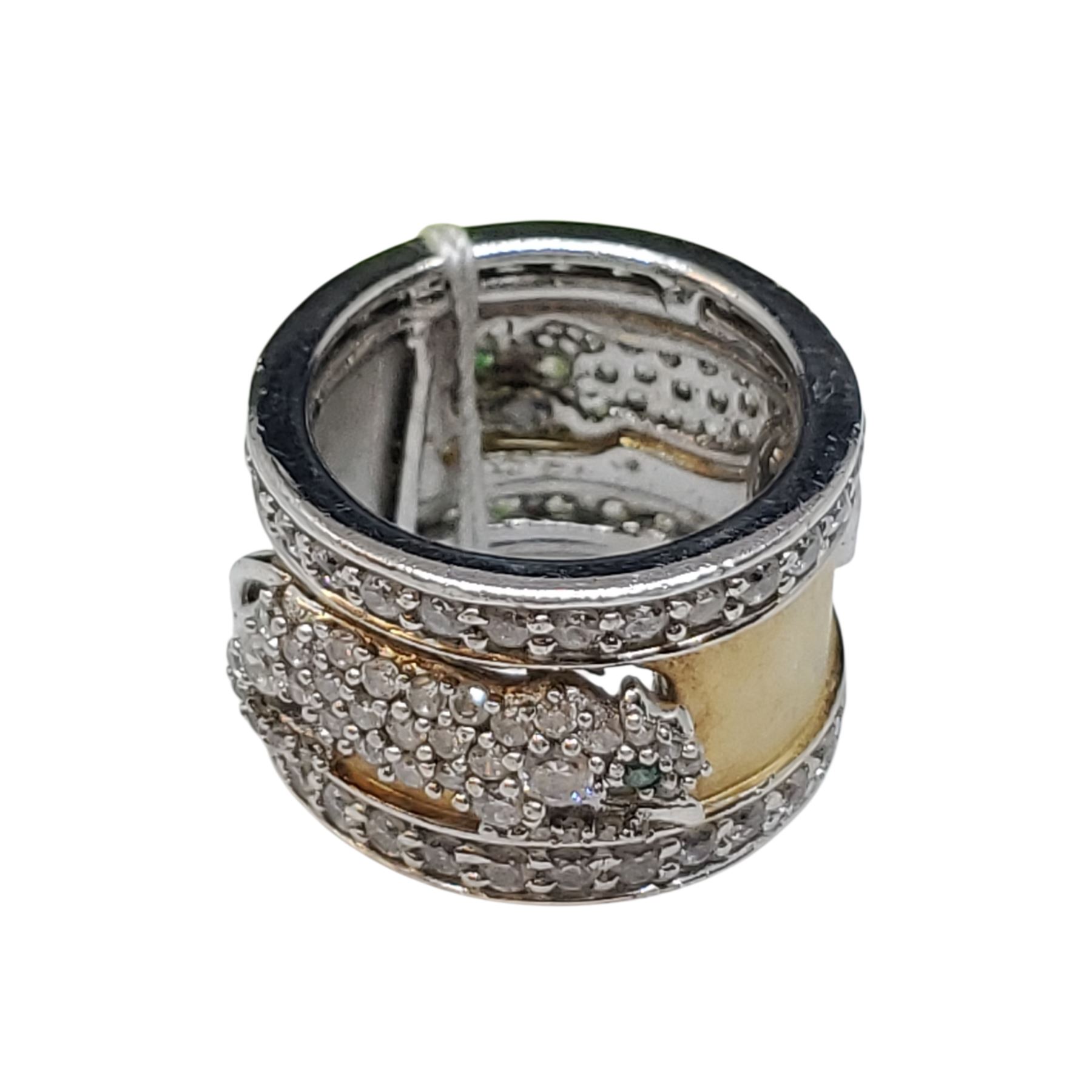 .925 Silver Diamonelle Running Panther Band Ring with Gold Overlay - Size 6 - 14.7 mm wide - Weight: 11 grams