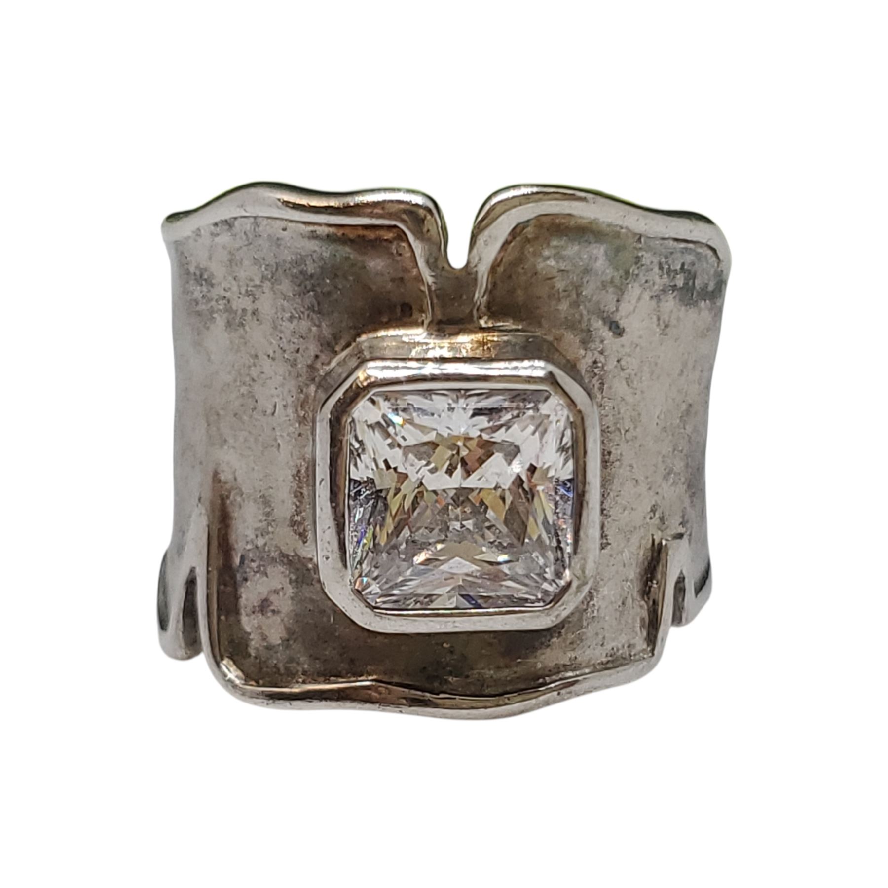 .925 Silver Marilena Italy Modernist Crystal Ring - Size 6 ring is 17 mm wide and weights 7 grams