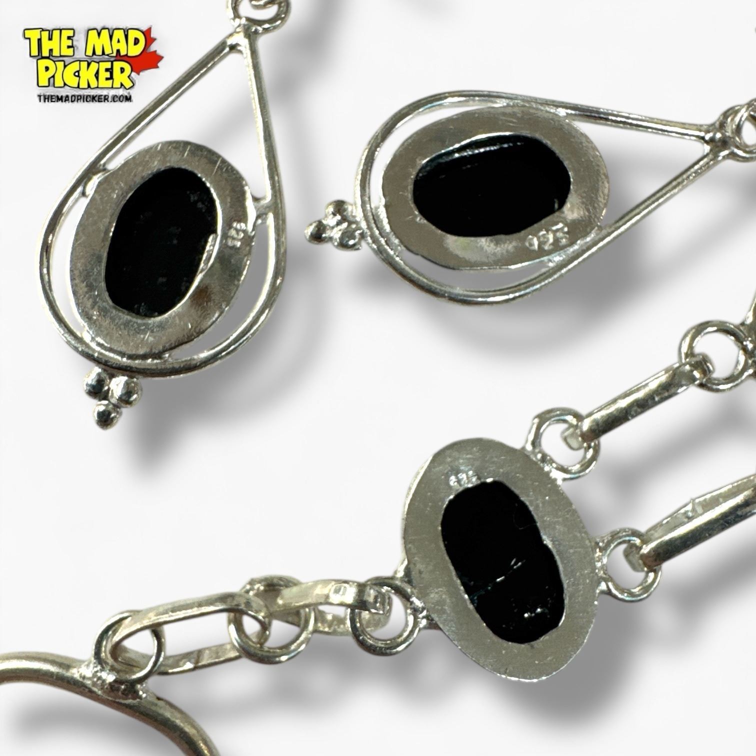 .925 Silver Opal Triplet Toggle Bracelet & Earrings Set - Bracelet Is 15 mm wide - Total weight 25.2 grams