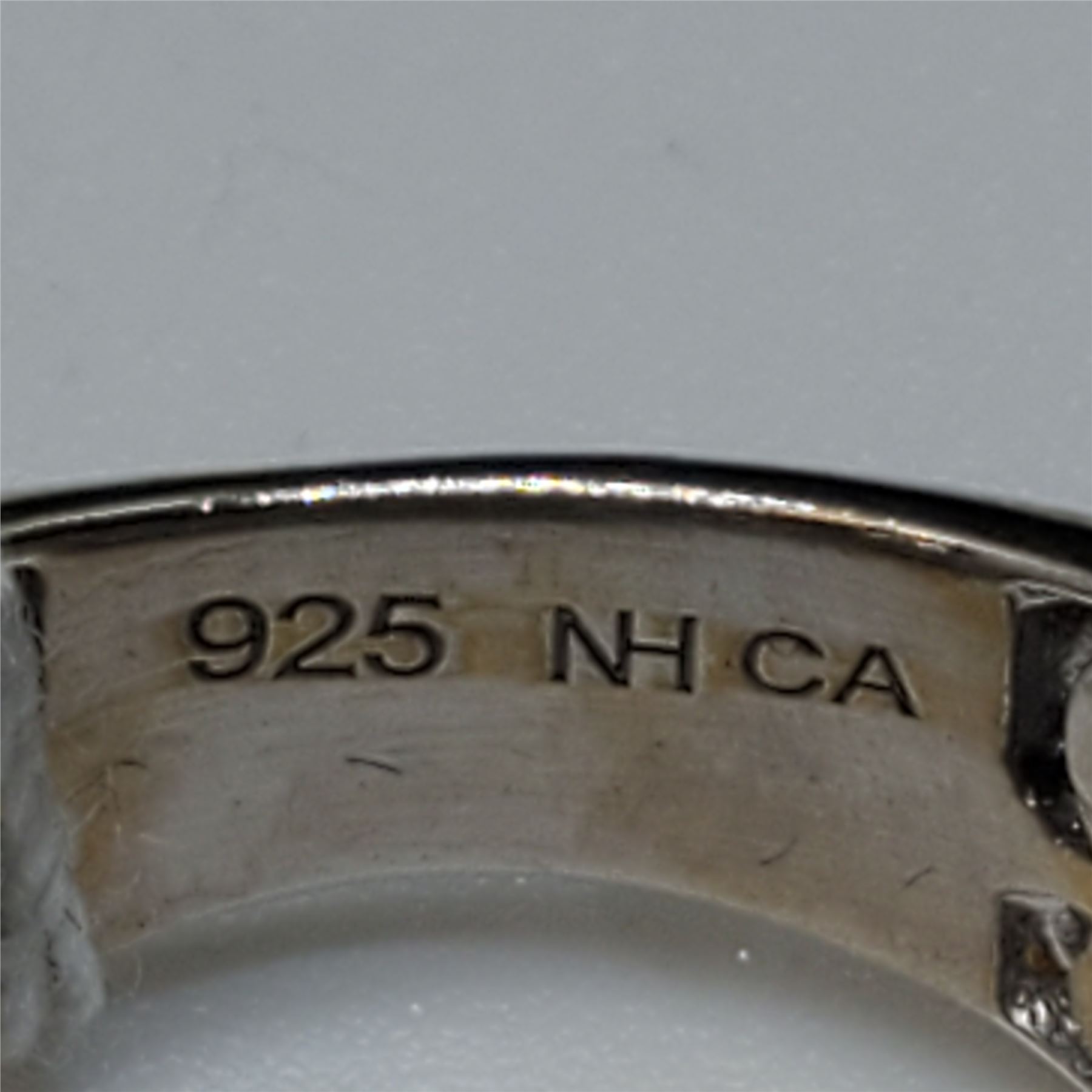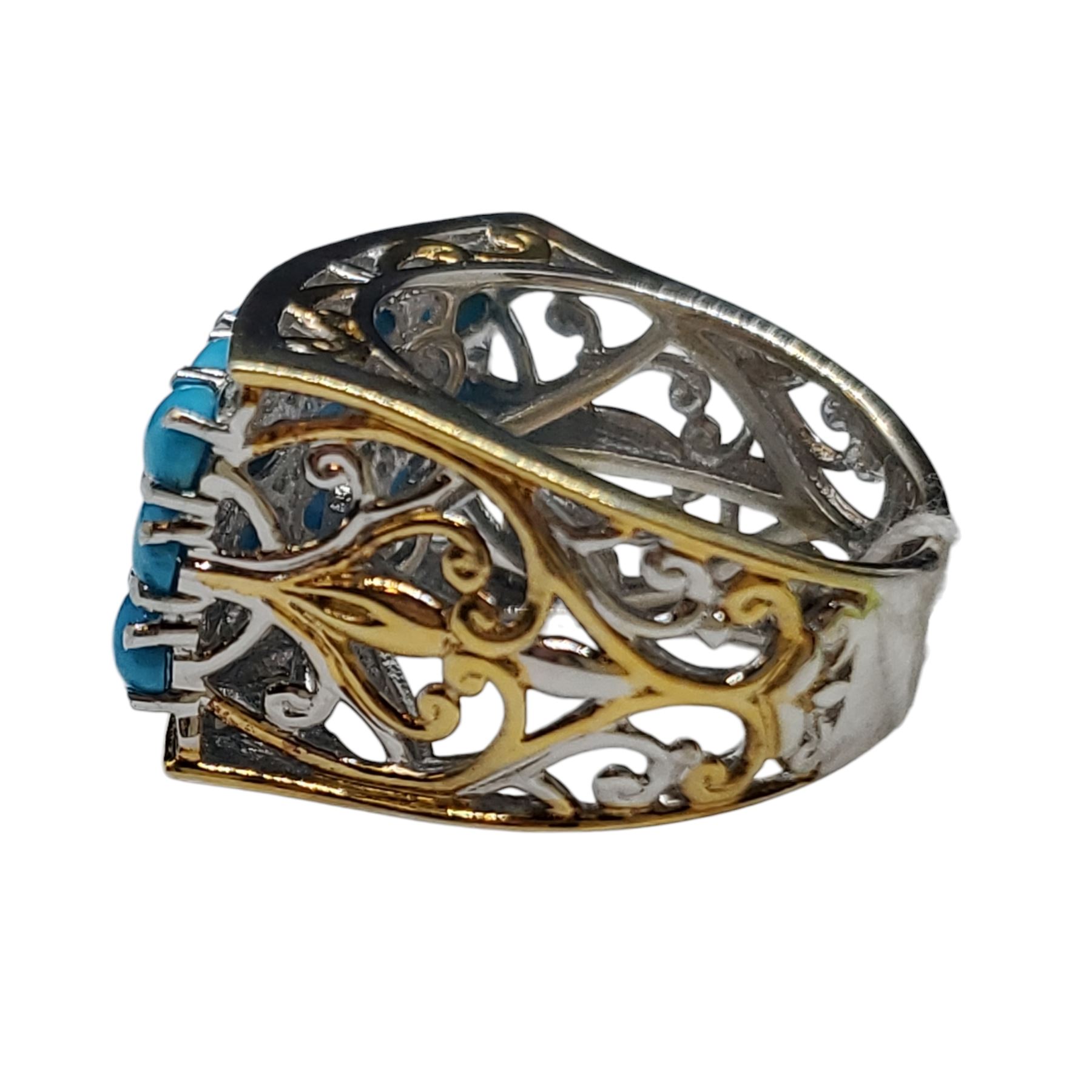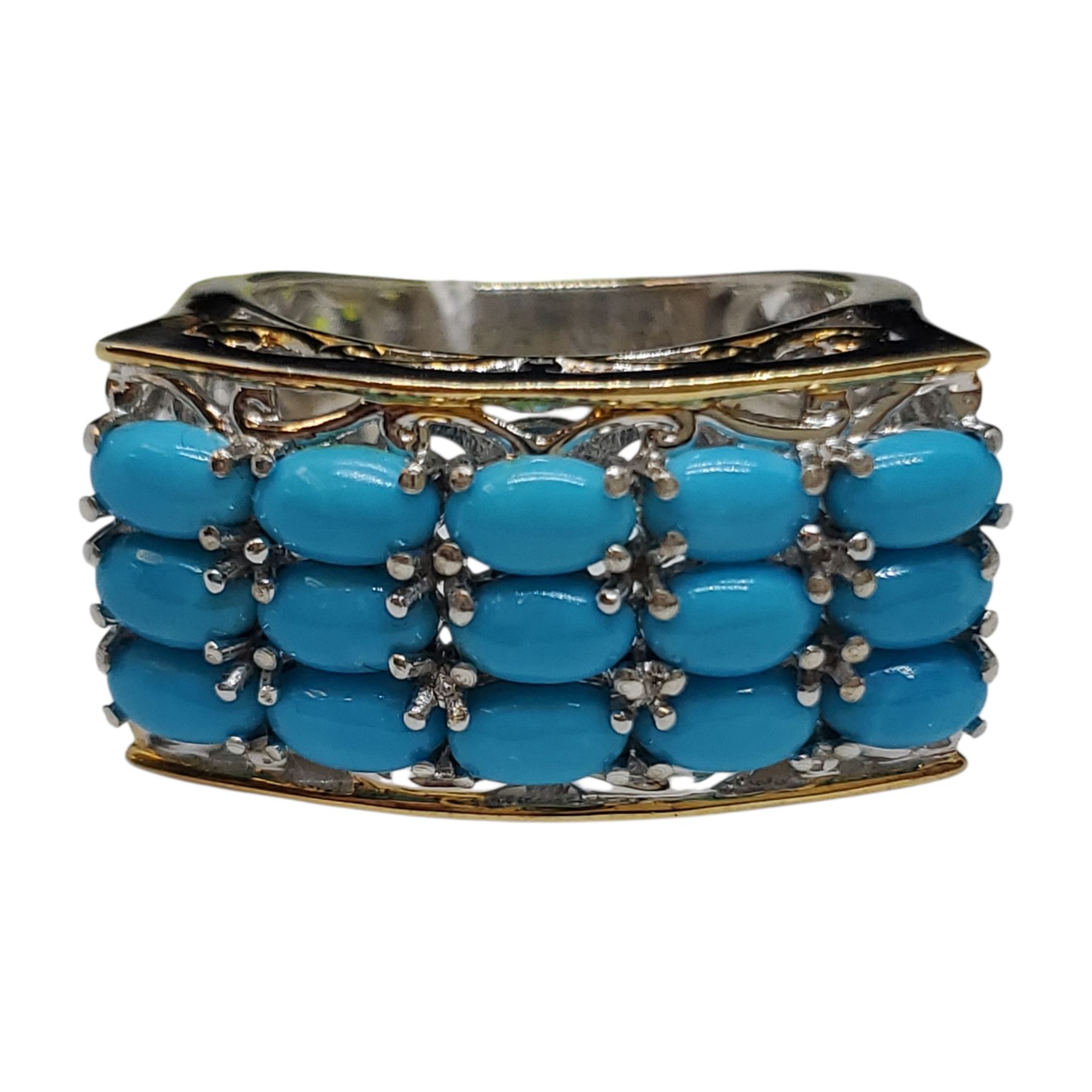 .925 Silver Turquoise Pave Ring with Gold Accents - 13 mm wide - Size 7 - Weight: 7.4 grams