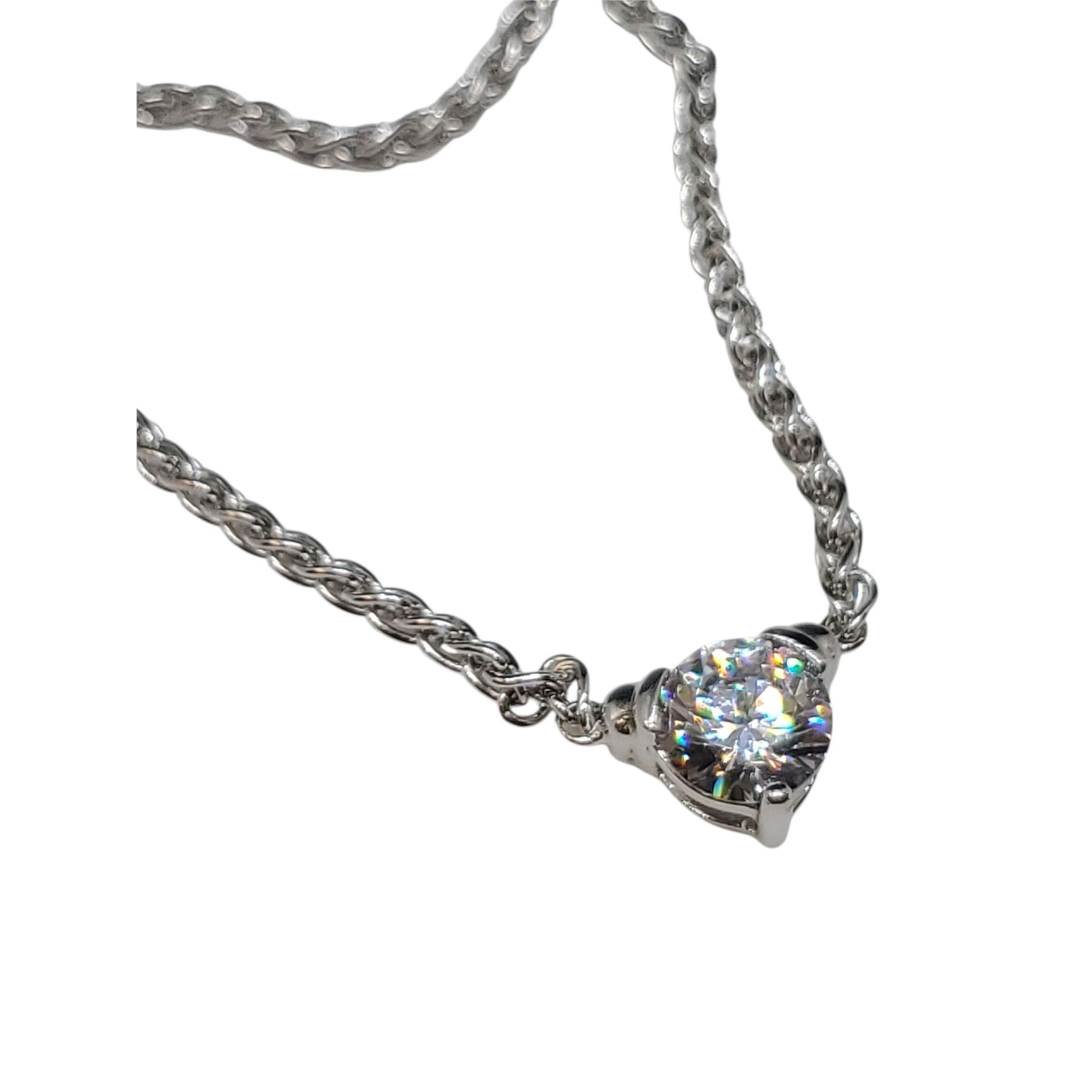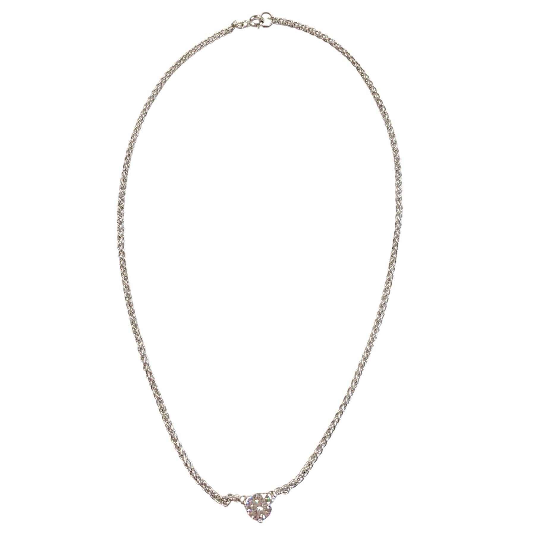 .925 Sterling Silver 1.5 Carat Solitaire CZ Necklace 16" Long - Total weight: 10 grams