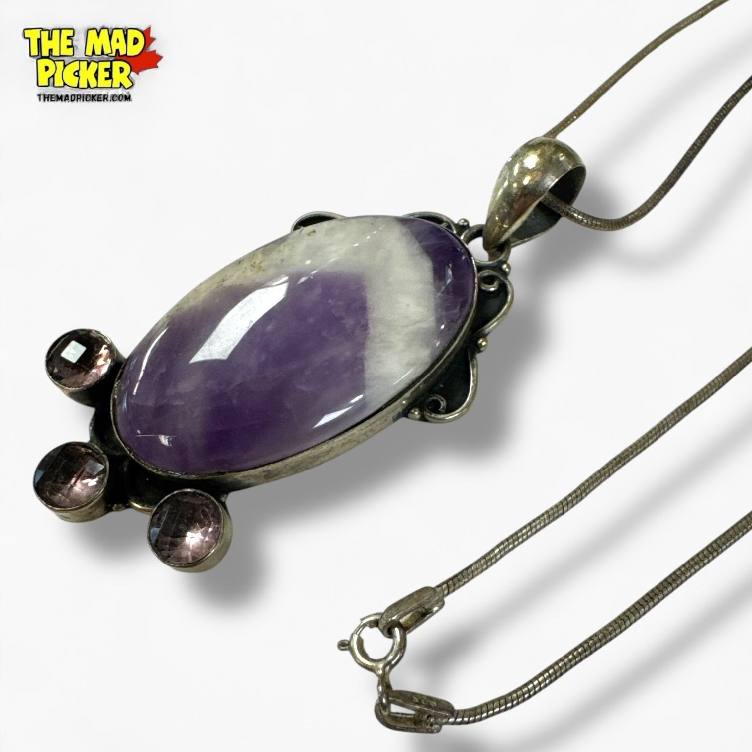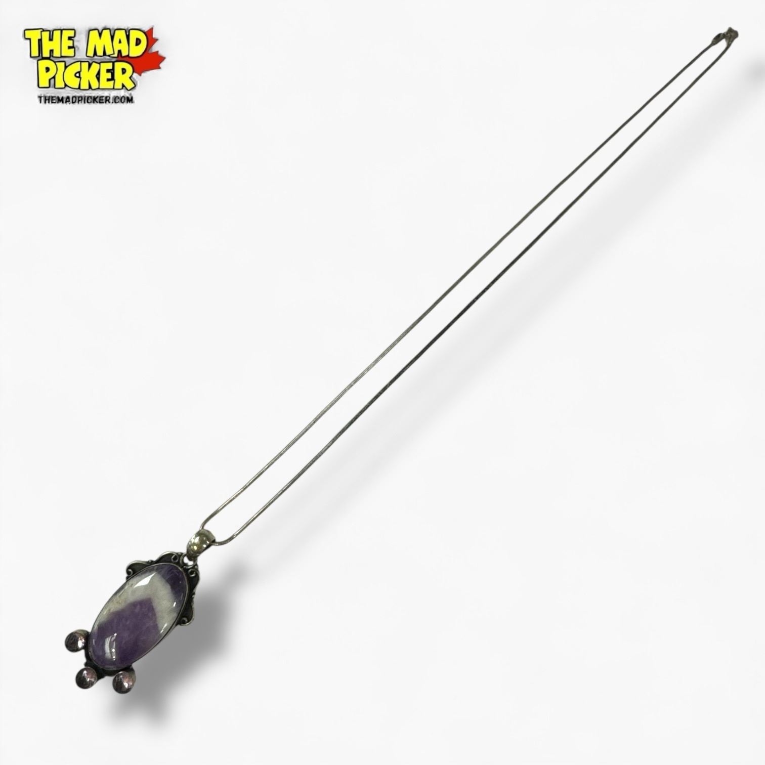 .925 Sterling Silver Chevron & Faceted Amethyst Necklace - 28 x 53 mm pendant on 21" Sterling Chain - Total weight: 20.9 grams