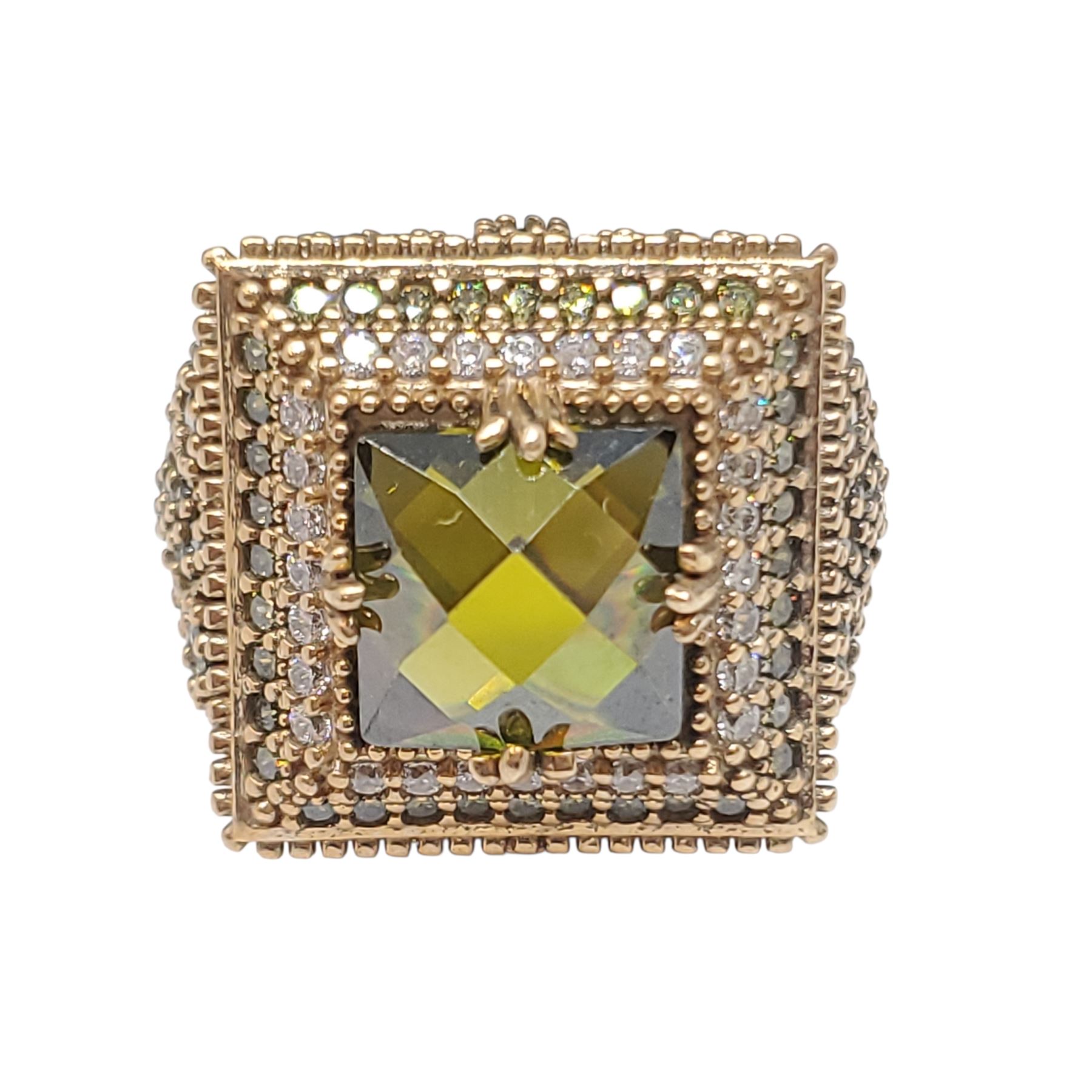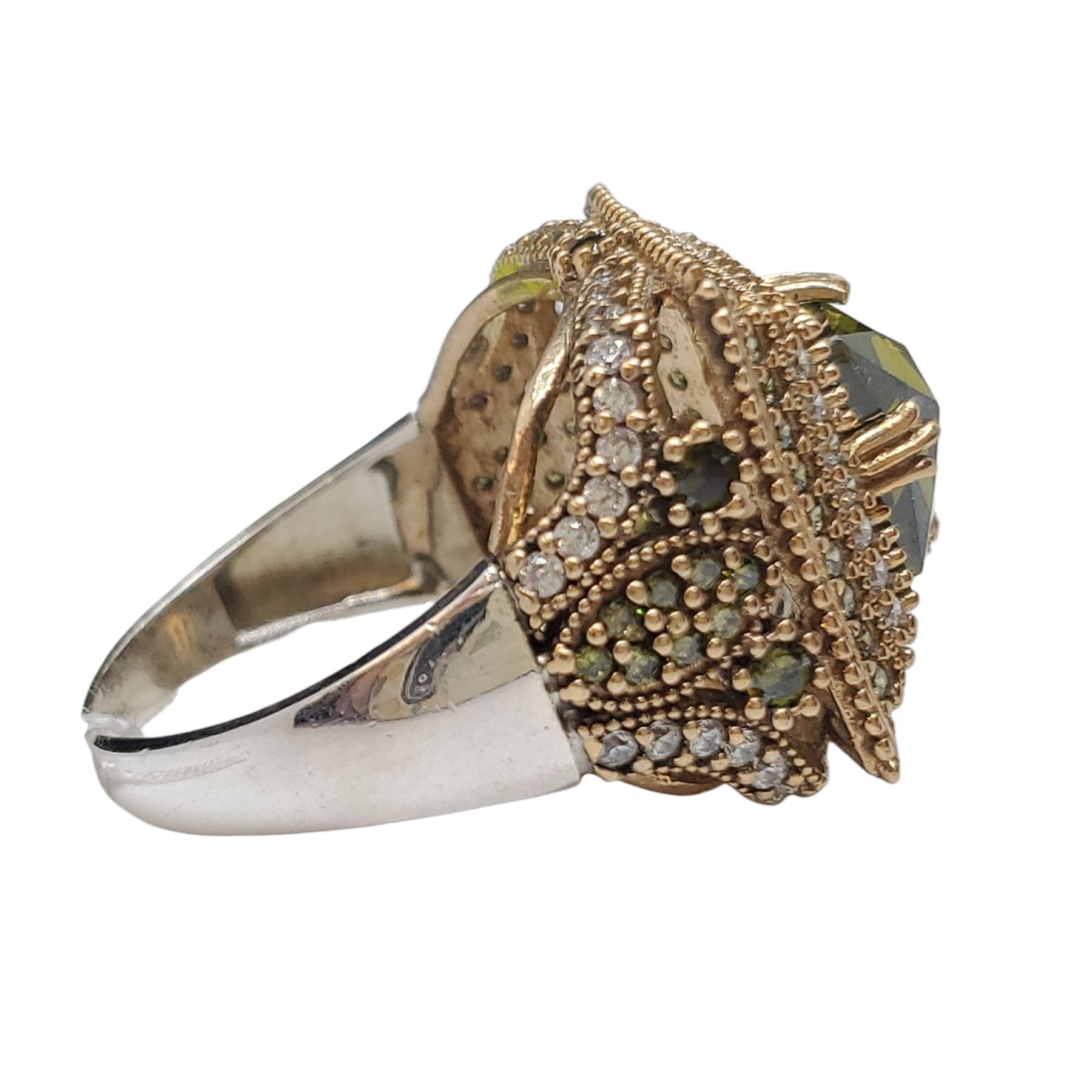 .925 Sterling Silver Citrine & Crystal Ring with Gold Plating - Size 10.5 Ring is 20.5 mm wide and weighs12 grams