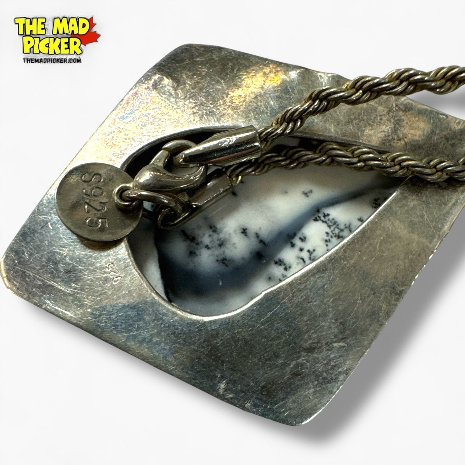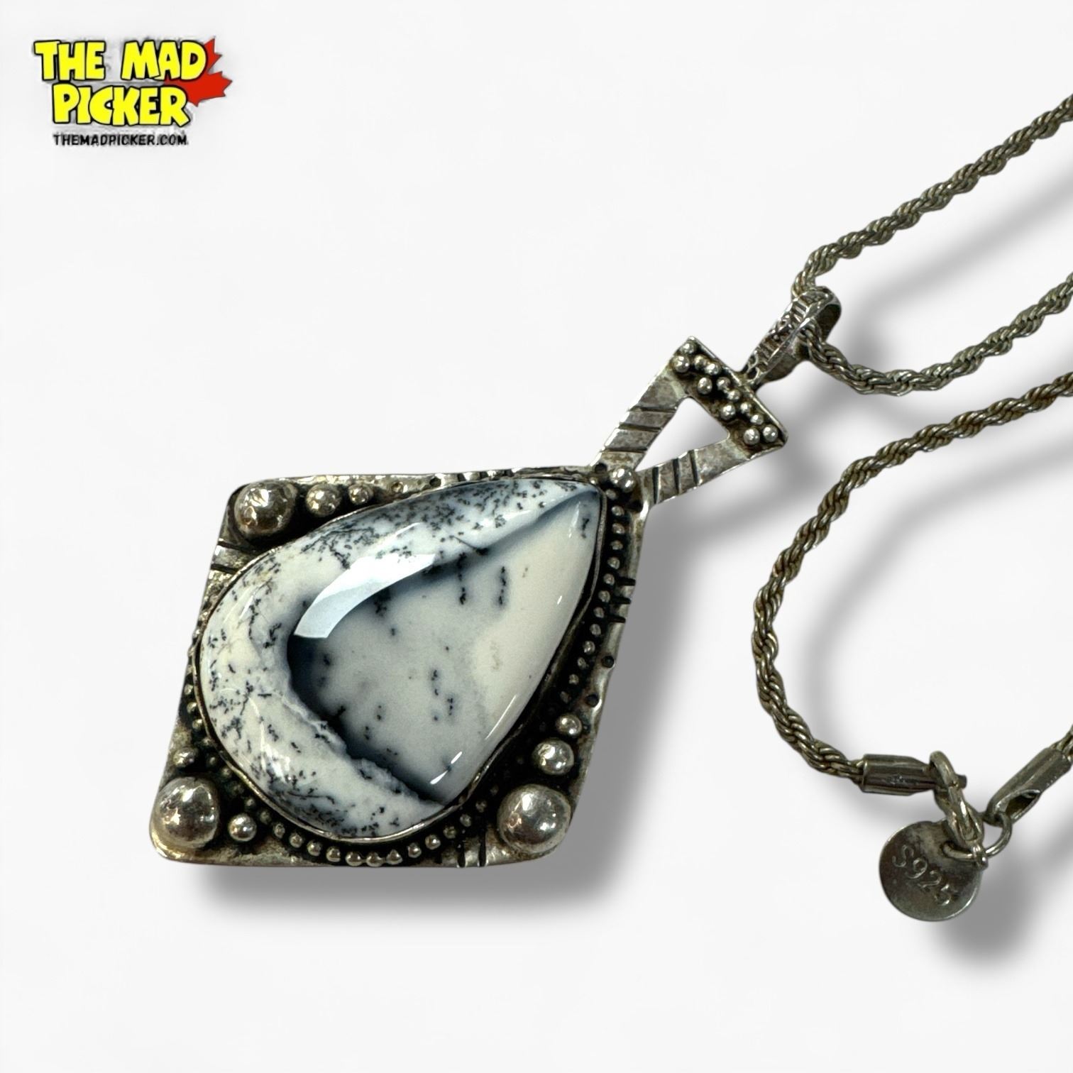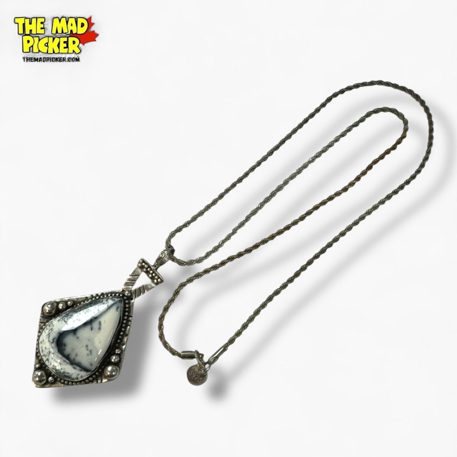 .925 Sterling Silver Dendritic Opal Necklace - 42 x 60 mm pendant on 21" Sterling Chain - Total weight: 25.8 grams