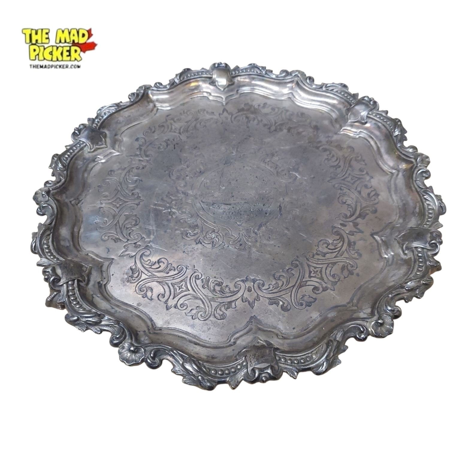 .925 Sterling Silver Footed Presentation Tray Dated 1872 - 11" diameter - Weight: 662 grams - Personal engraving