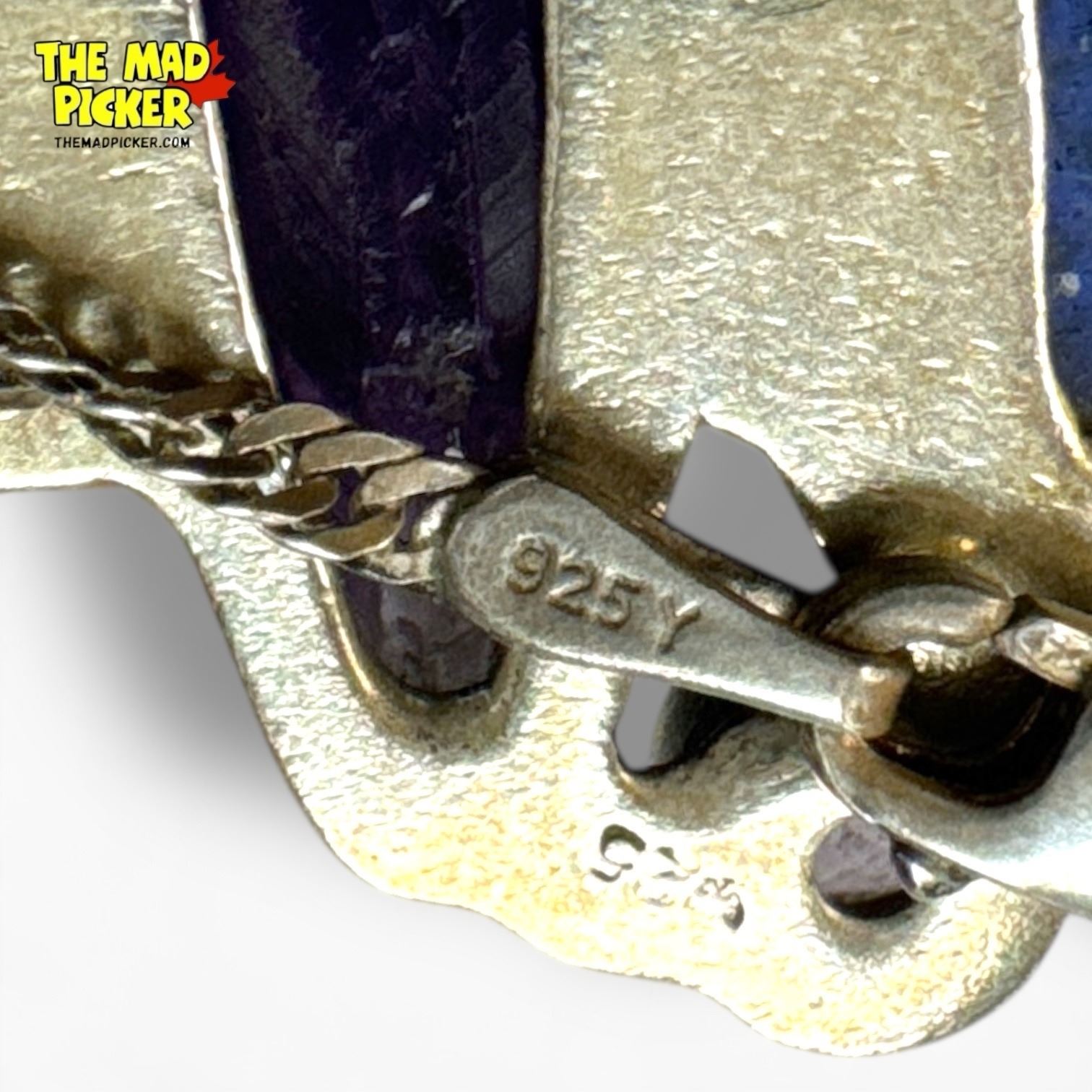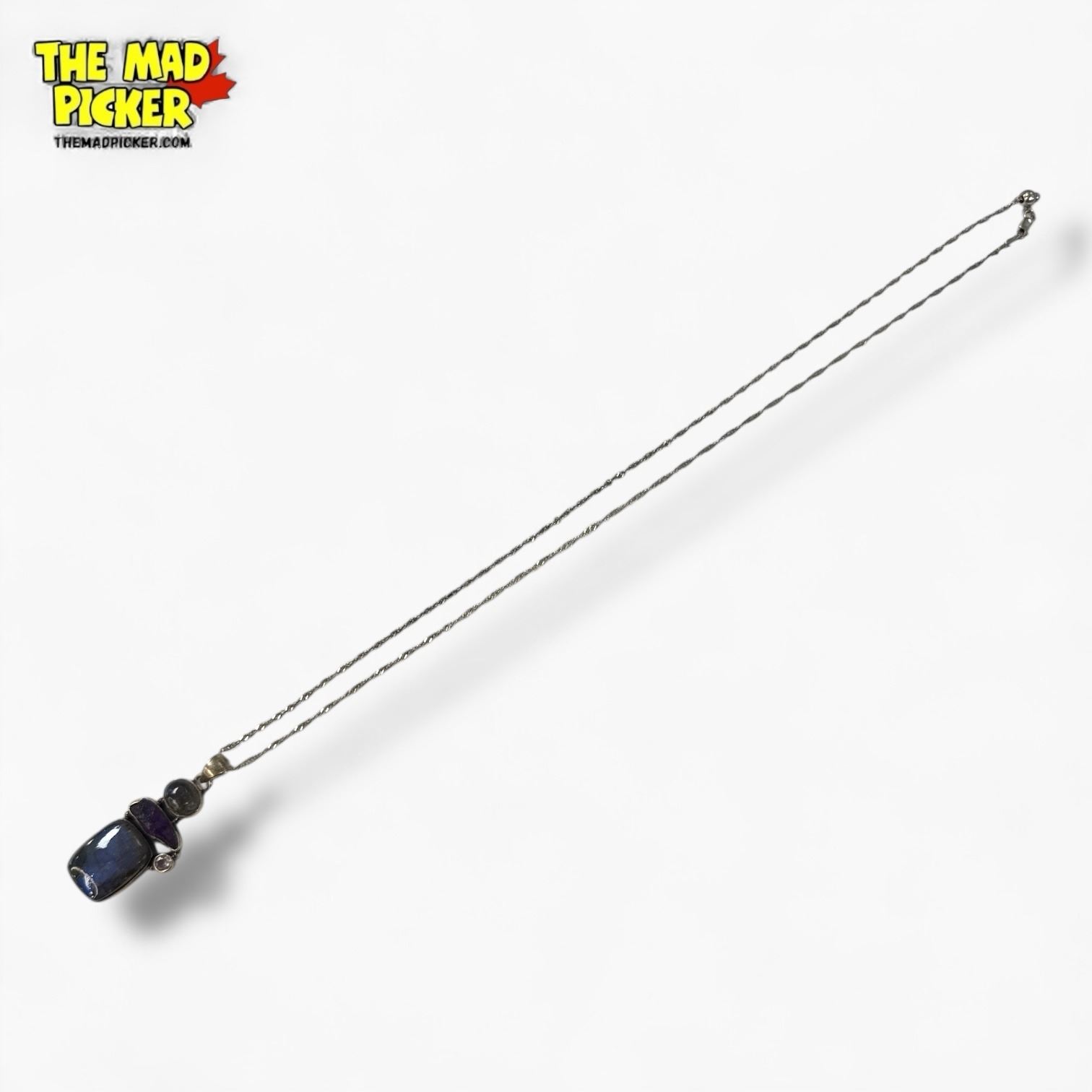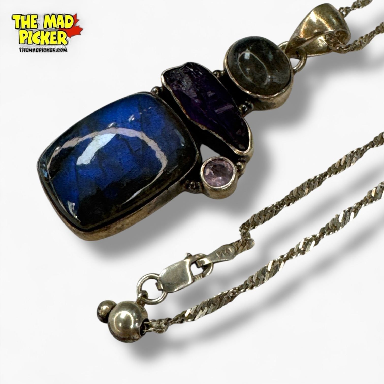 .925 Sterling Silver Labradorite & Amethyst Necklace - 21 x 40 mm pendant on 23" Sterling Chain - Total weight: 14.2 grams